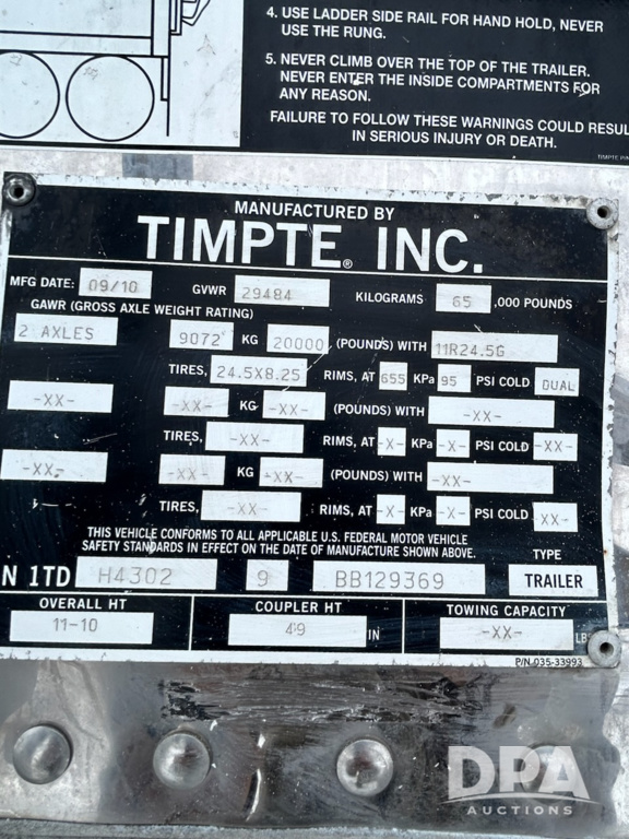 2011 Timpte Grain Trailer (NJP474), 43ft, 72" sides, tandem axle, manual tarp, new tarp.