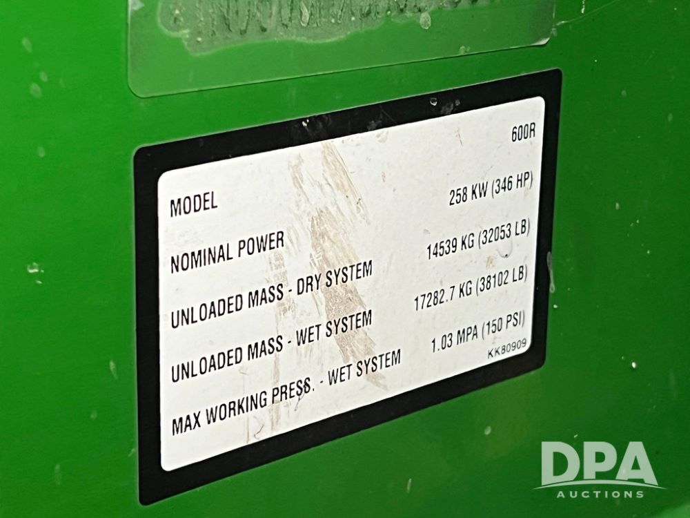 2024 John Deere 600R Dry Floater (JN0937), PowerTech 9.0L diesel engine, IVT transmission, air conditioning/heat, AM/FM radio, signature edition cabin, ultimate comfort package, buddy seat, air flow machine, Salford AB200 dry air flow box, 80 foot stainless steel boom, activations, section control, in field data sharing, stainless steel side boards, data sync, auto trac, electric roll tarp, all hydraulic, Gen 4 4600 CommandCenter display, Integrated 7000 globe, 750/60R46 tires, comes with row crop tires also, shows 1,073 hours.