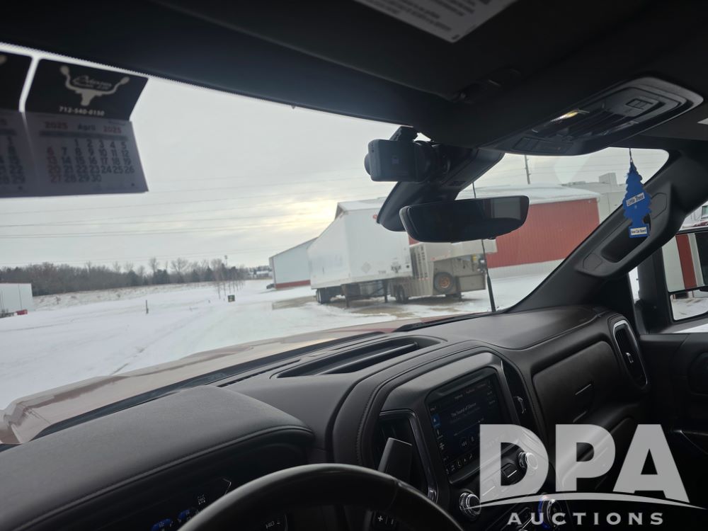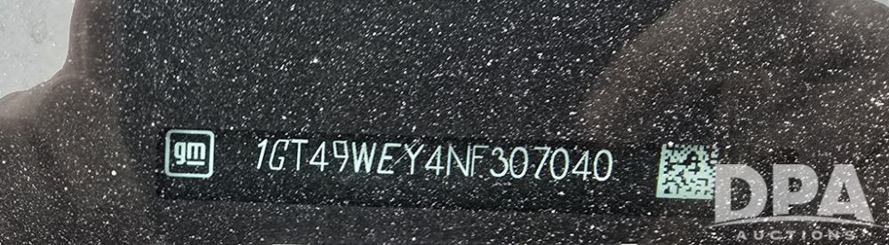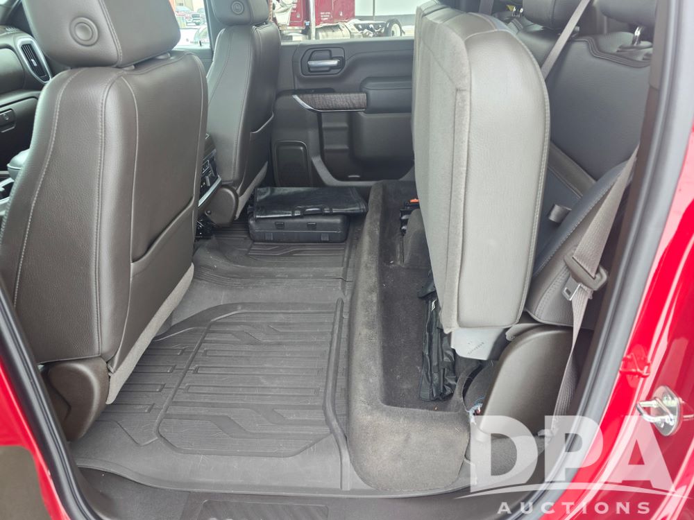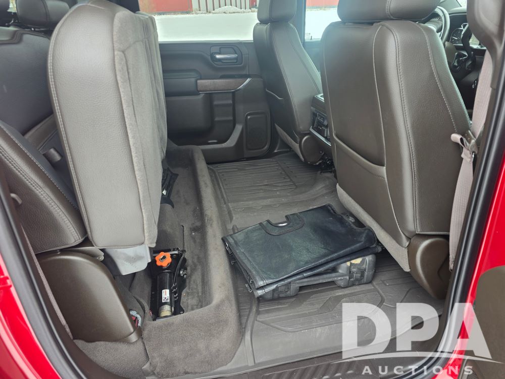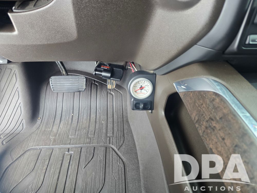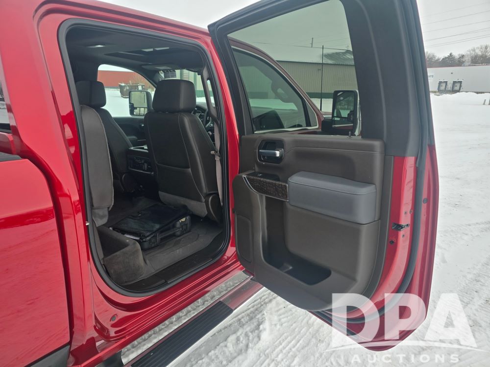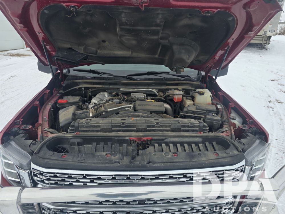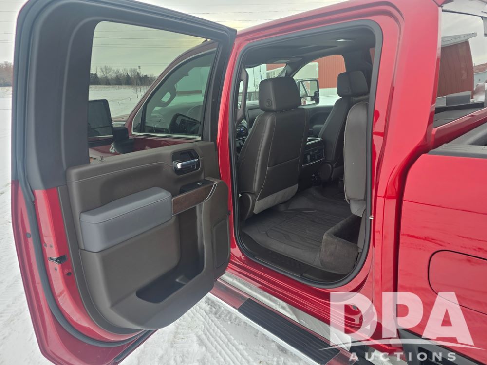 2022 GMC Sierra Denali HD 3500 Truck (JM723), Duramax turbo diesel V8 engine, 445 HP, Allison 10-speed fully automatic transmission, Transfer Flow Trax auxiliary fuel tank, SIT (self inflating tire) technology, wireless charging station, multi-pro tailgate with 6 functions, LED headlamps, fog lights, LED box lighting, spray-in bed liner, power plugin, corner step bumper, 5-passenger capacity in the crew cab, heated leather seats, remote start, keyless entry, power windows and locks, sun roof, GM all weather liners, air conditioning, heat, Infotainment system, tires- 235/80R17, shows 53,745 miles.