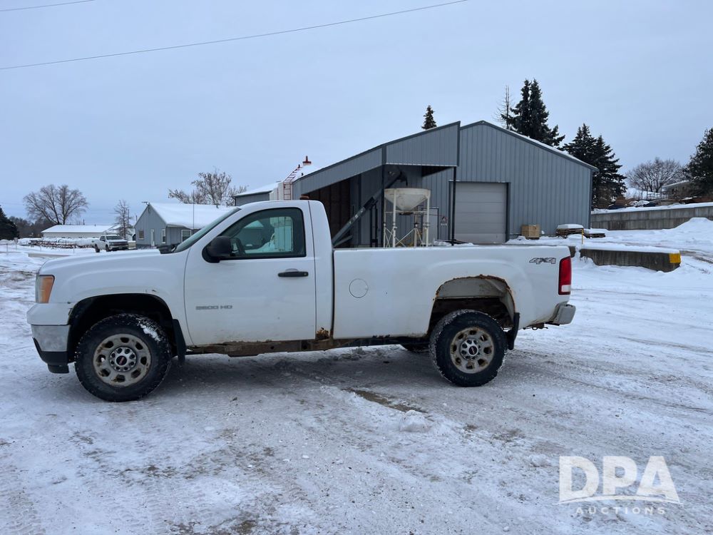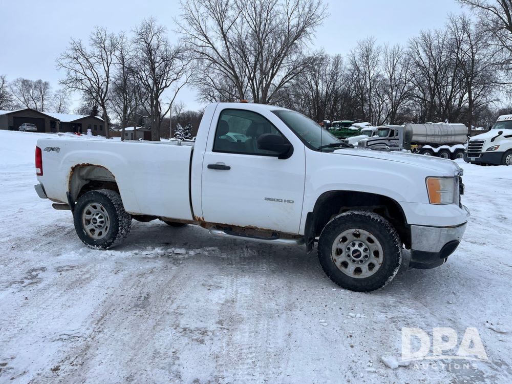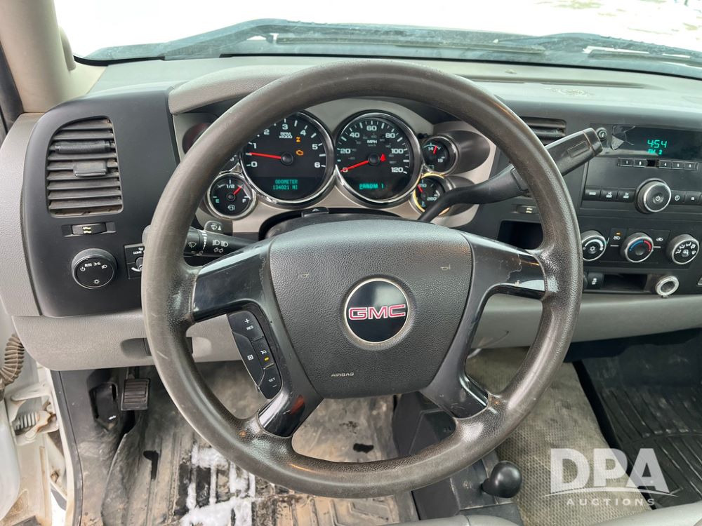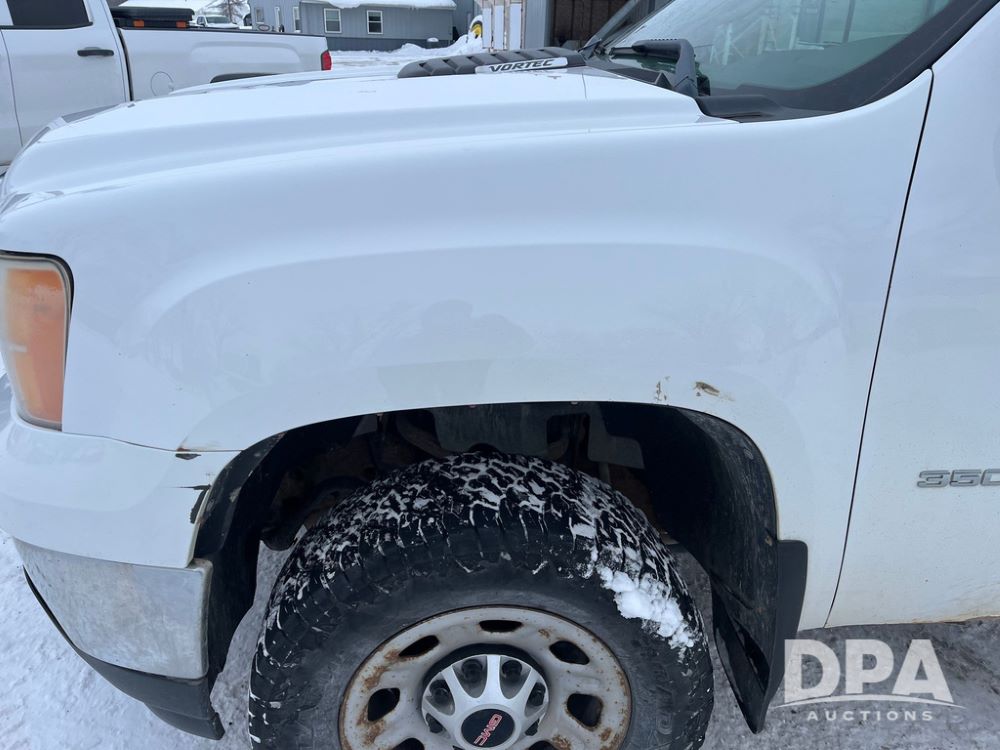2012 GMC 3500HD Pickup (JN3582, Unit 91), 4x4, Vortec gas engine, automatic transmission, air conditioning, heat, Am/Fm radio, cruise control, power windows & locks, rear hitch, LT275/65R18 tires, shows 134,021 miles.