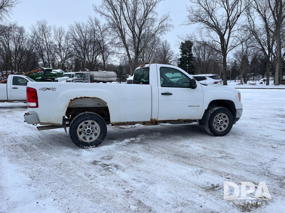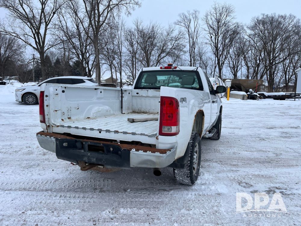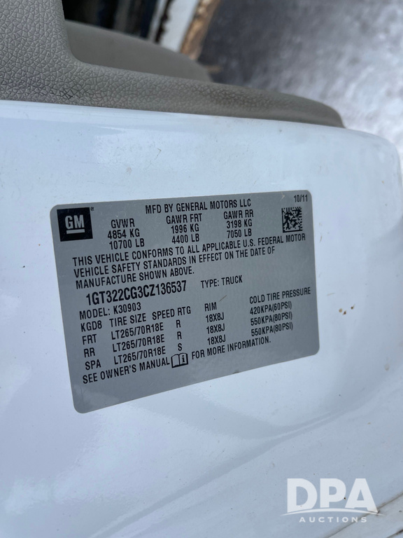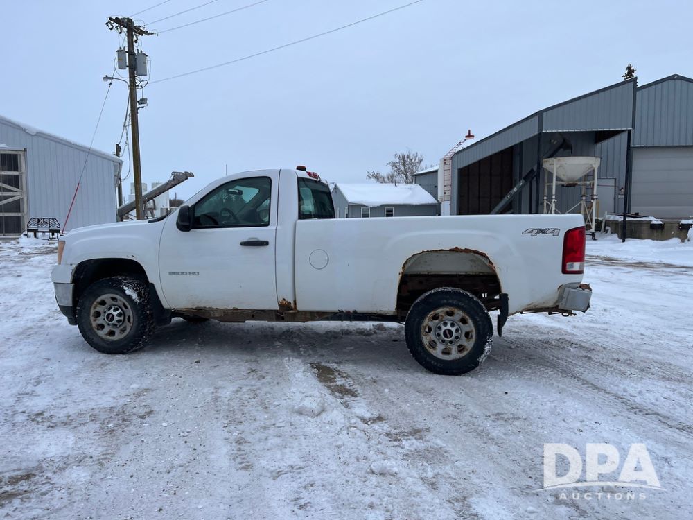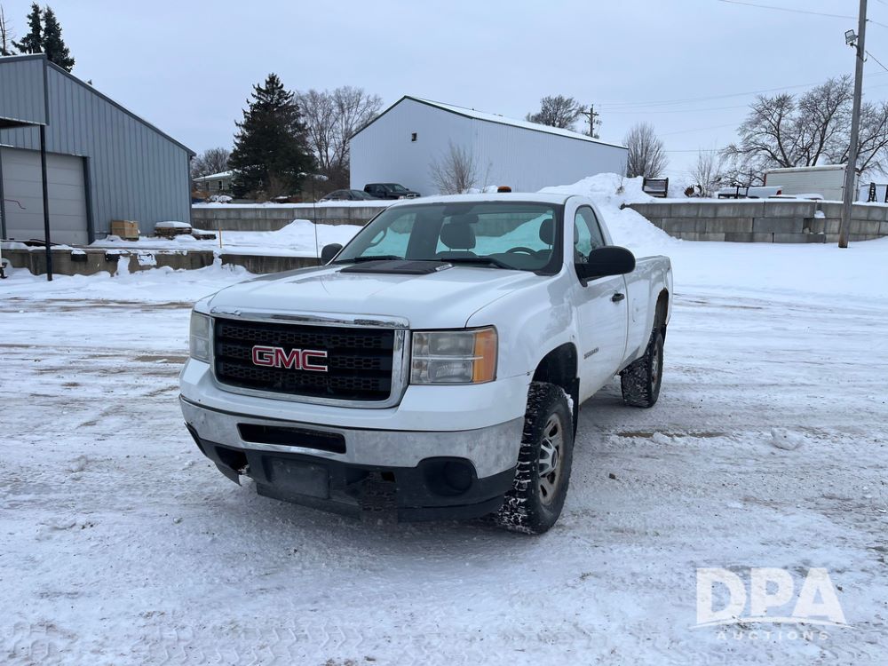2012 GMC 3500HD Pickup (JN3582, Unit 91), 4x4, Vortec gas engine, automatic transmission, air conditioning, heat, Am/Fm radio, cruise control, power windows & locks, rear hitch, LT275/65R18 tires, shows 134,021 miles.