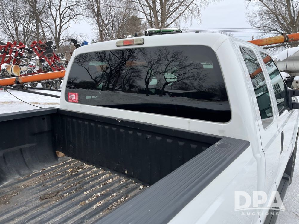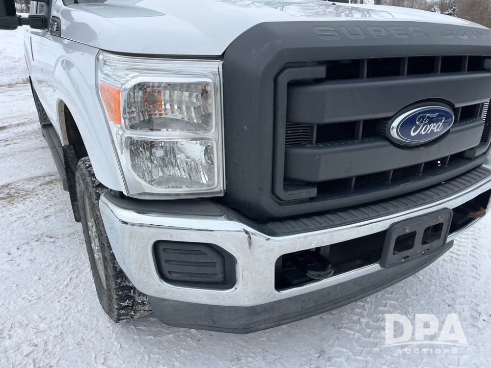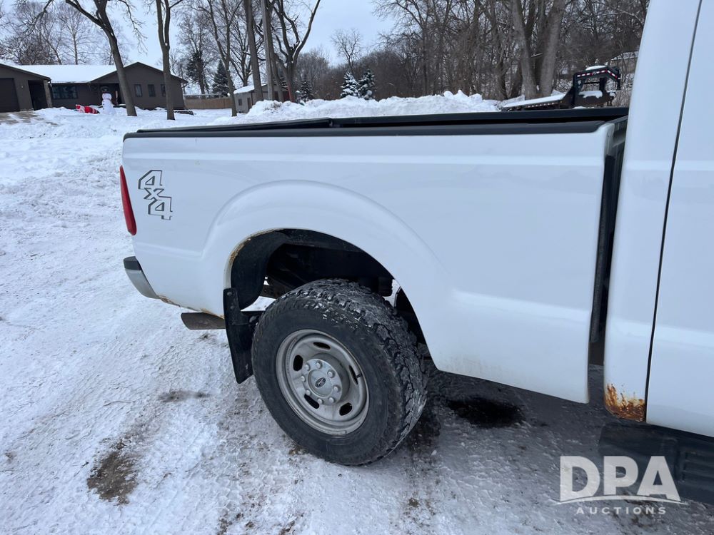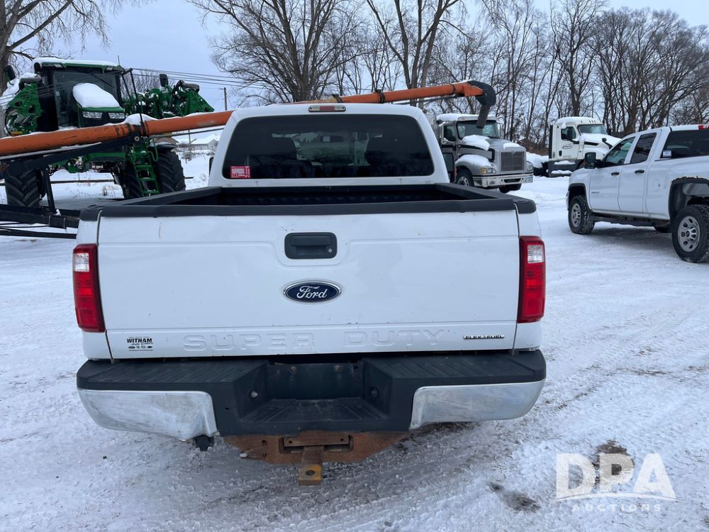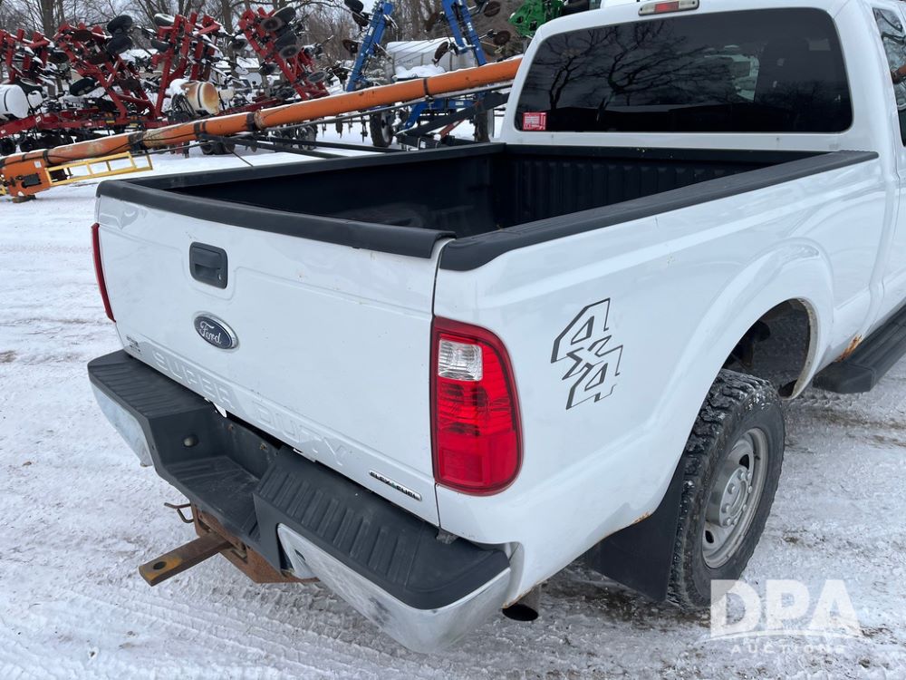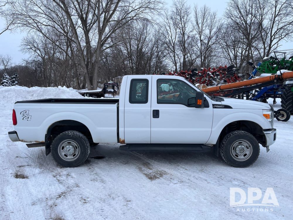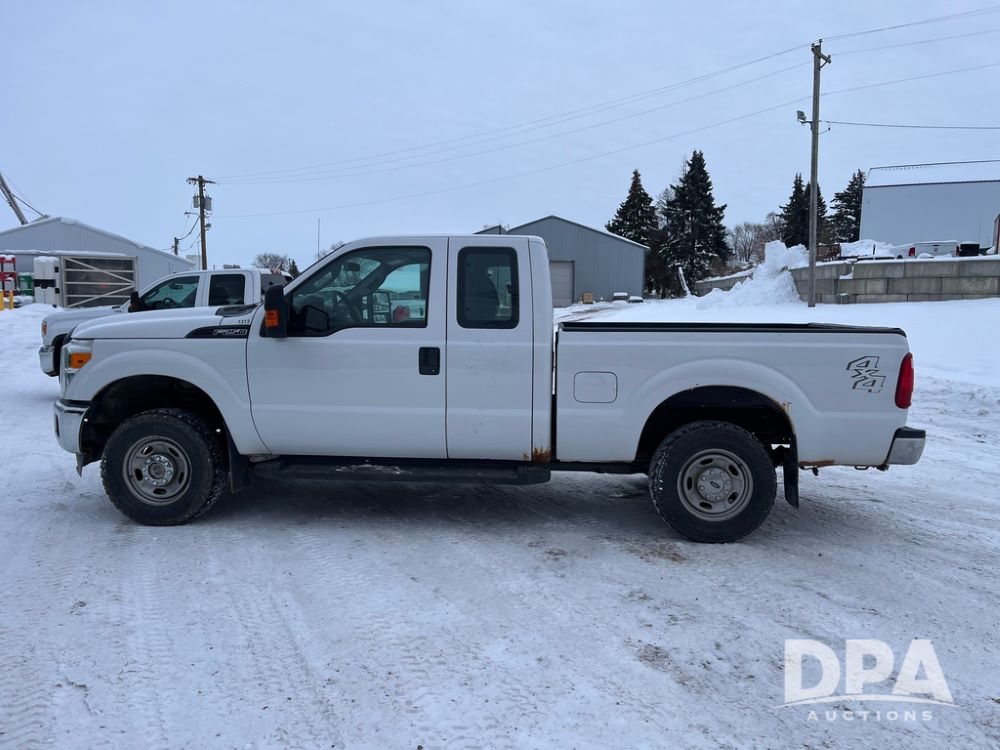 2014 Ford F250 Super Duty Extended Cab Pickup (JN3586, Unit 1313), 4x4, 6.2L gas engine, automatic transmission, air conditioning, heat, Am/Fm CD radio, cruise control, power windows & locks, running boards, rear hitch, LT245/75R17 tires, shows 180,651 miles.