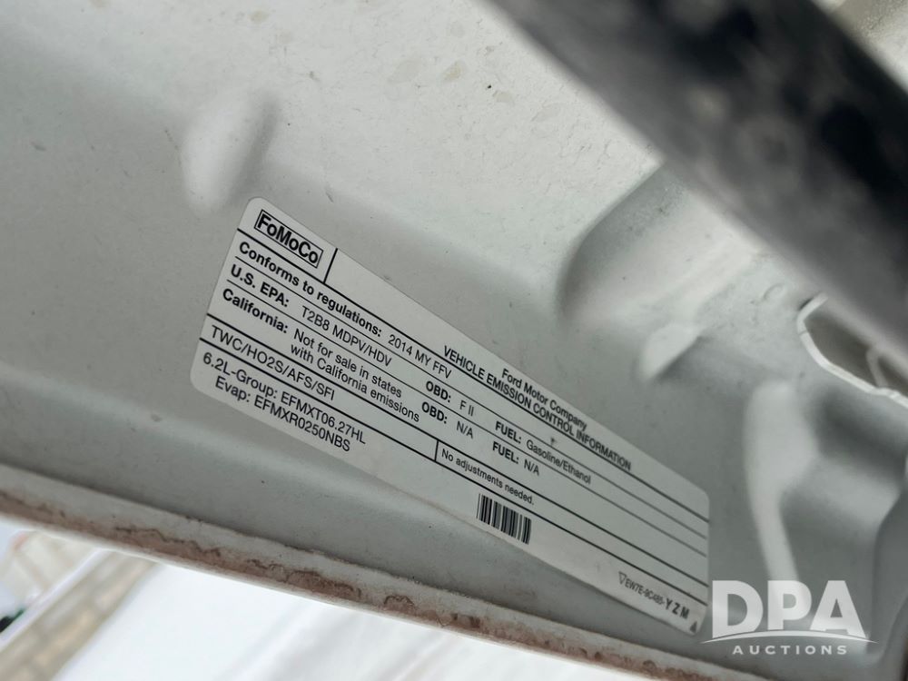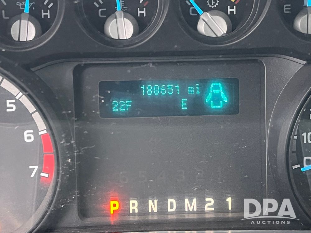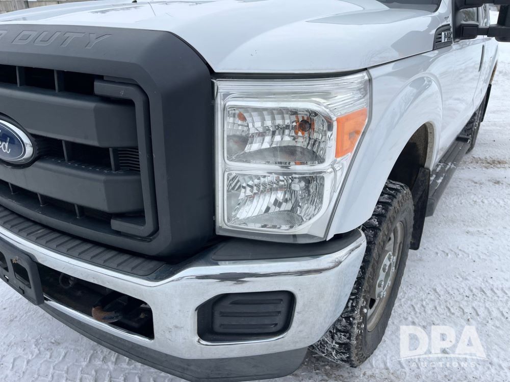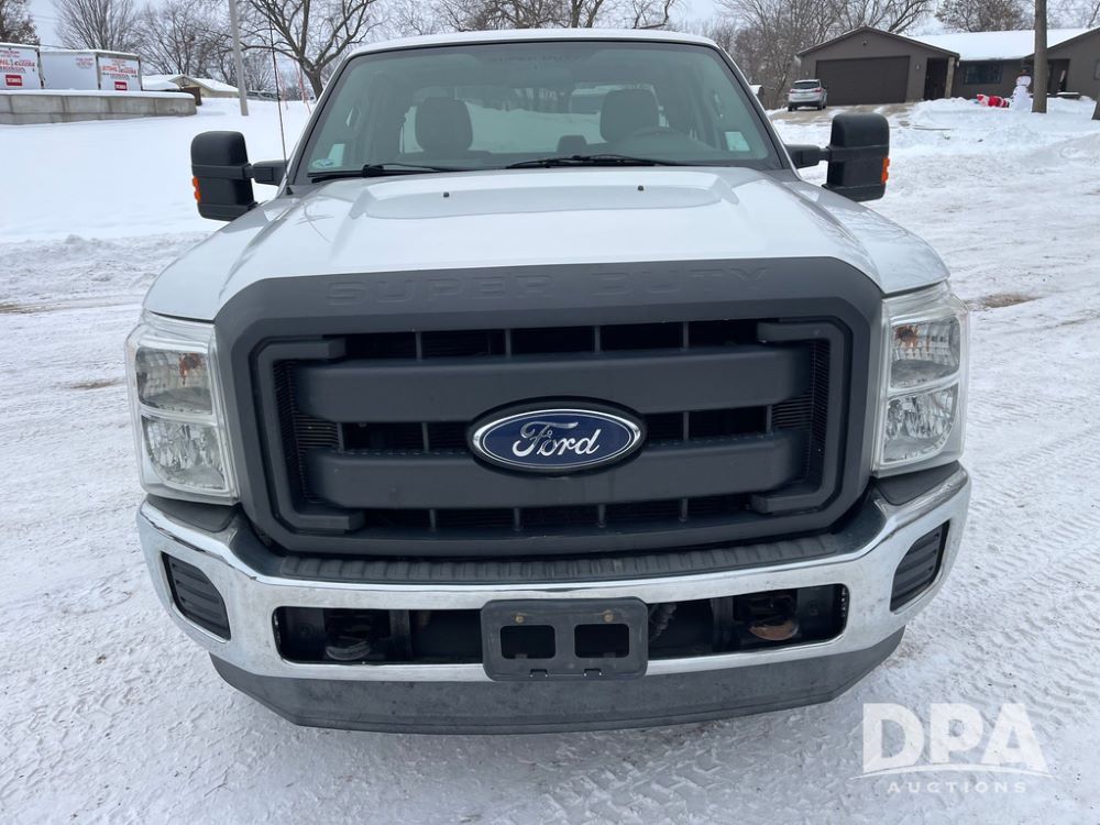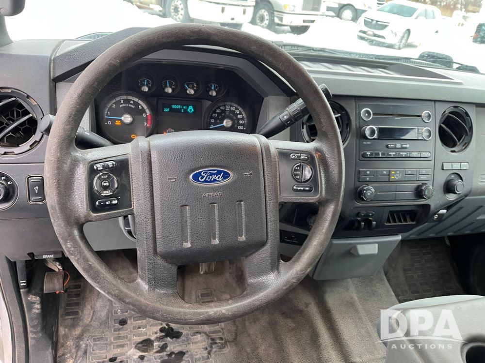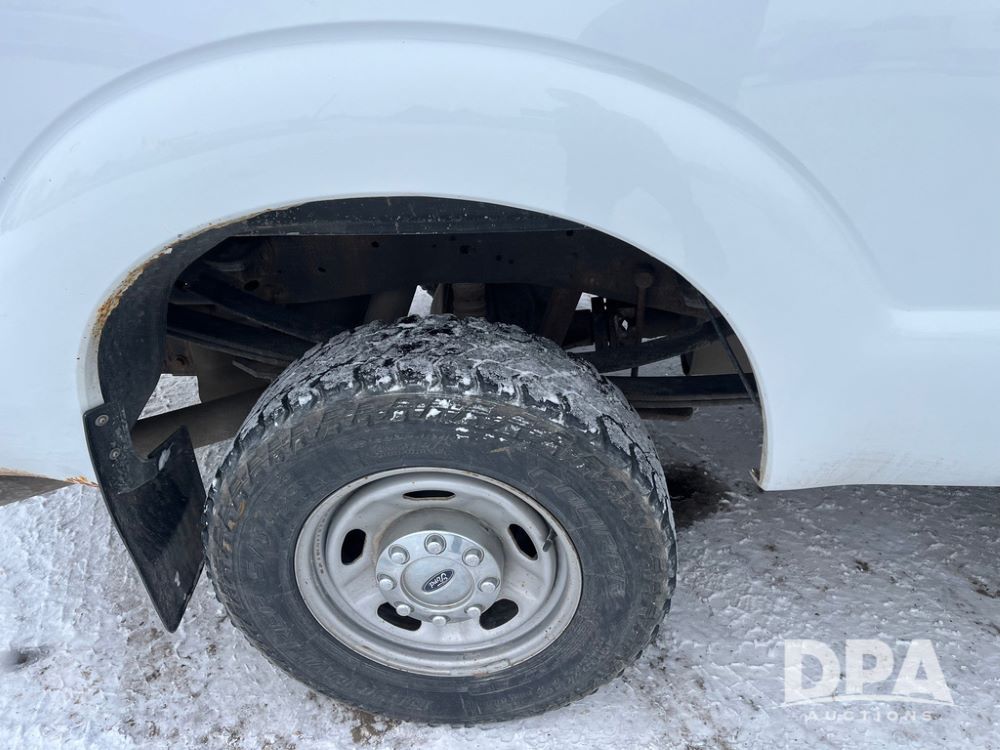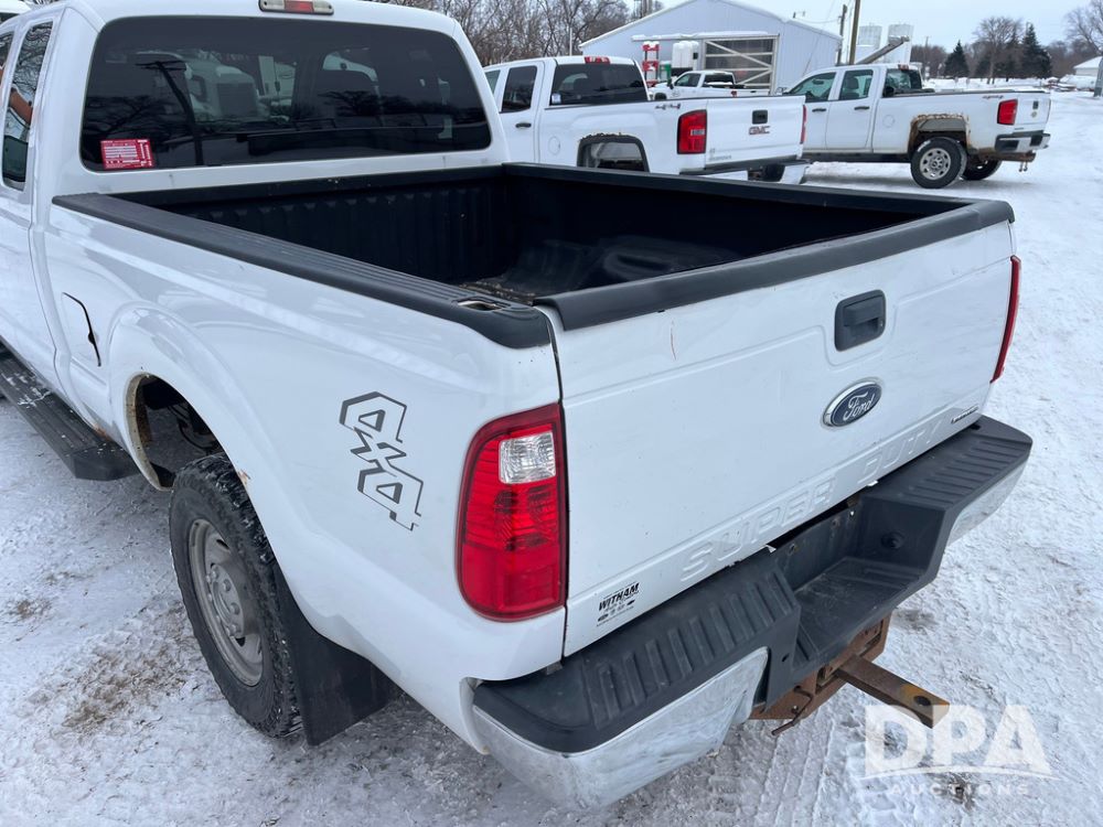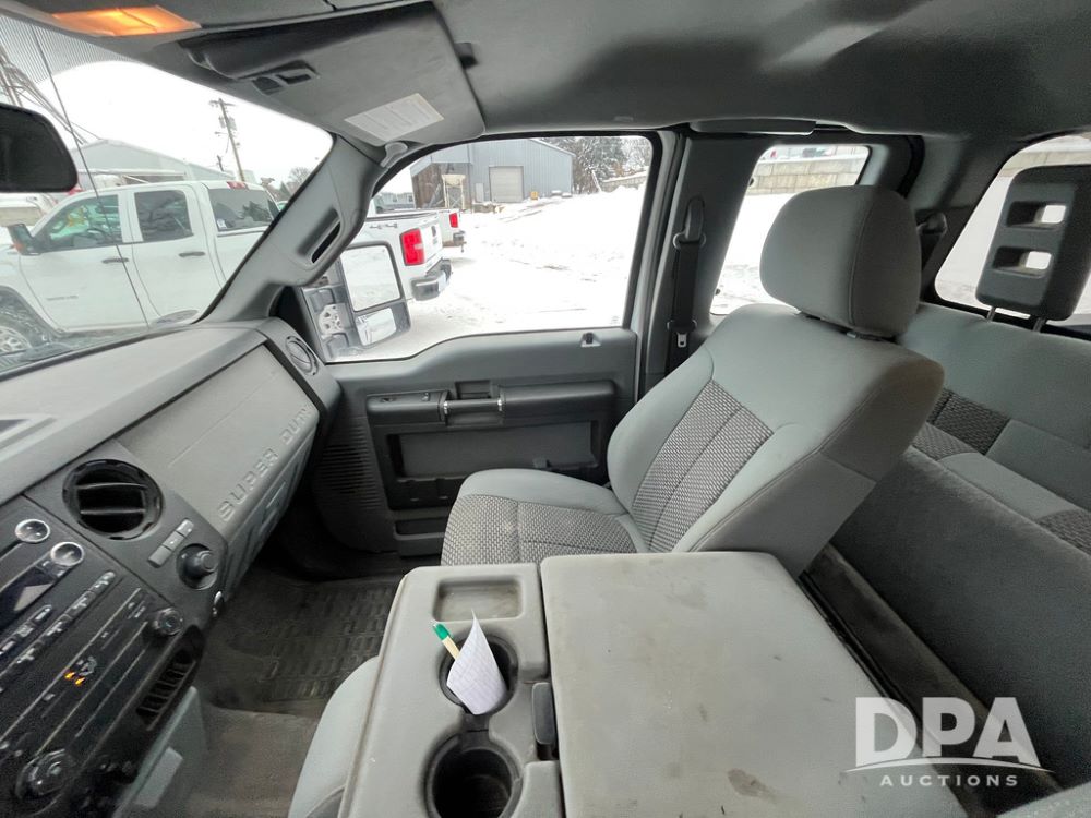 2014 Ford F250 Super Duty Extended Cab Pickup (JN3586, Unit 1313), 4x4, 6.2L gas engine, automatic transmission, air conditioning, heat, Am/Fm CD radio, cruise control, power windows & locks, running boards, rear hitch, LT245/75R17 tires, shows 180,651 miles.