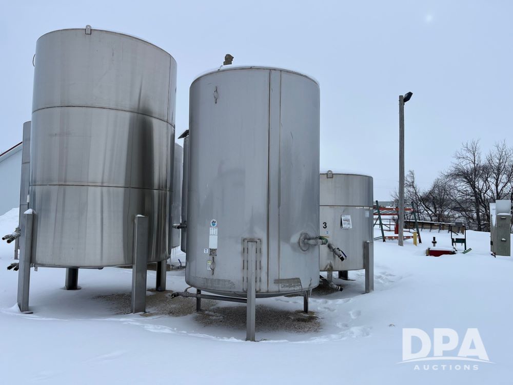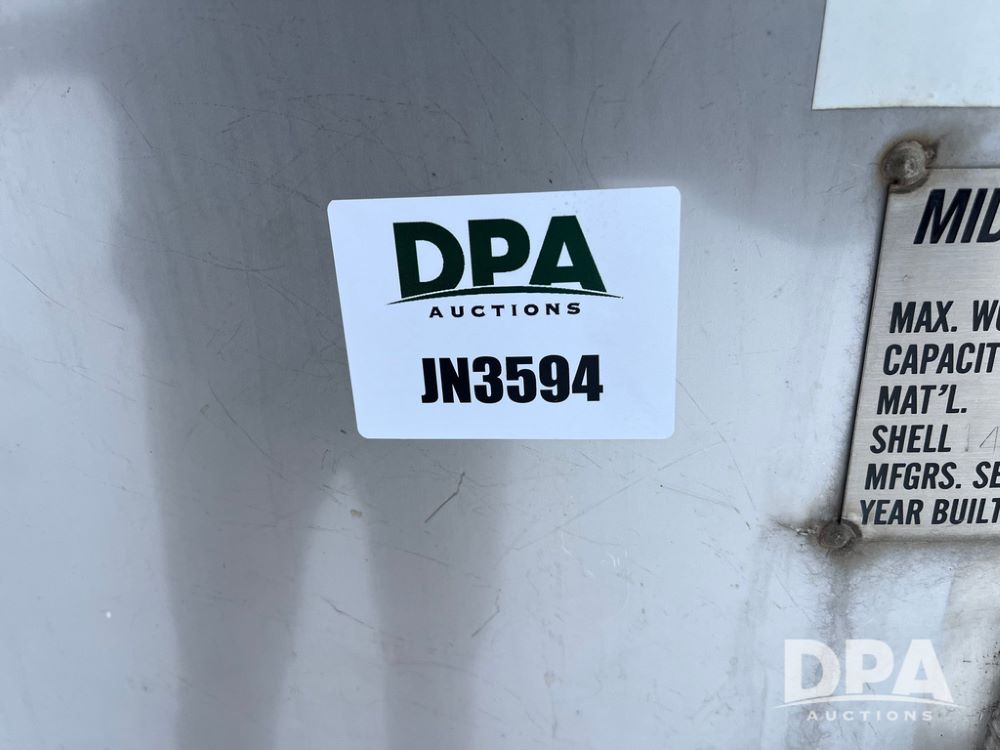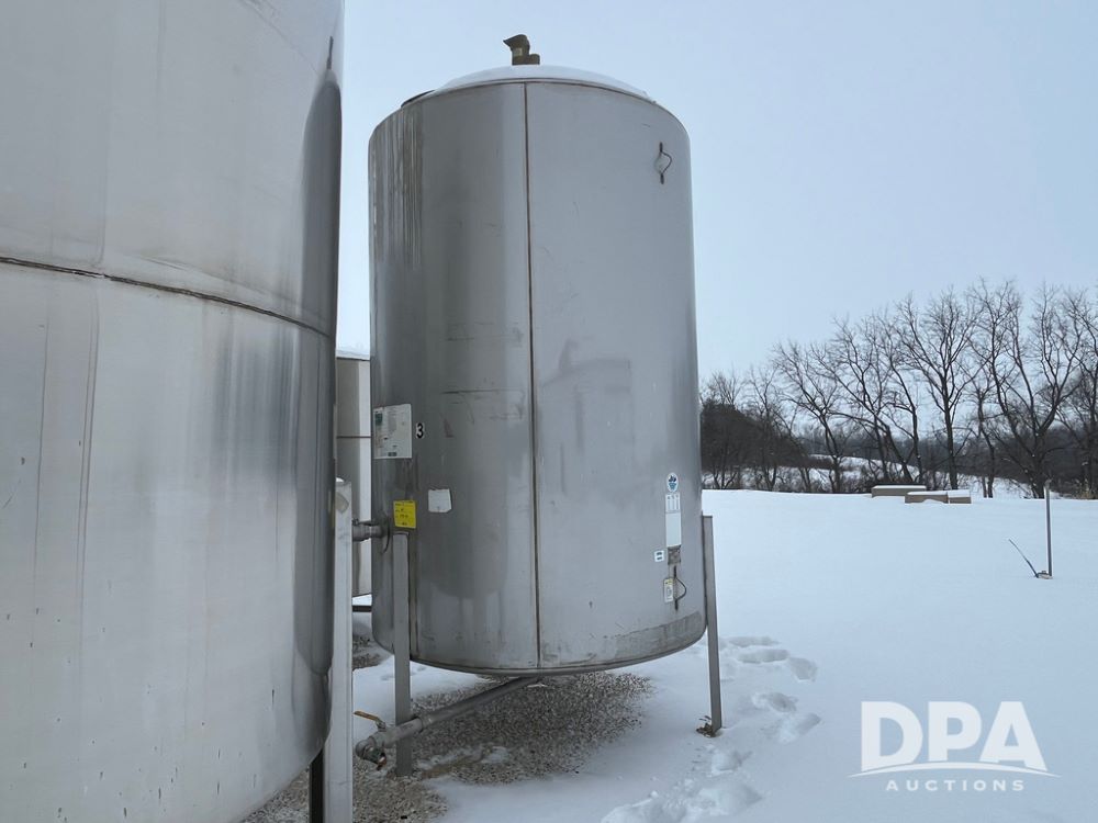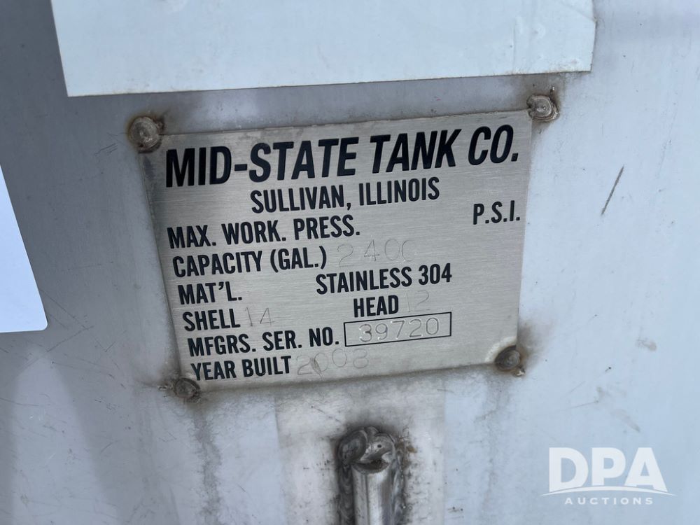 2008 Mid-State Stainless Steel Tank (JN3594, Unit 3), 2008 Mid-State 2,400 gallon vertical stainless steel liquid tank, stainless steel stands, valve.