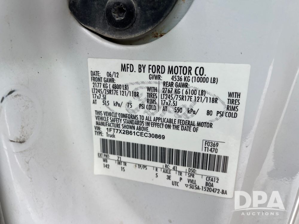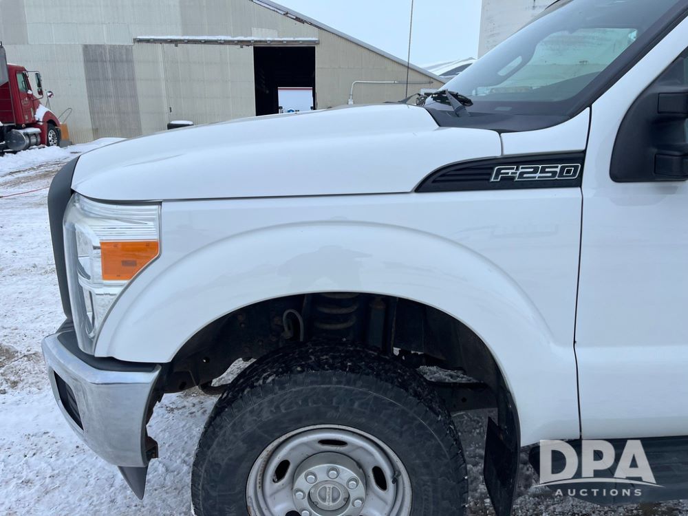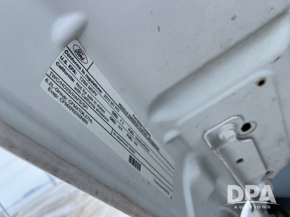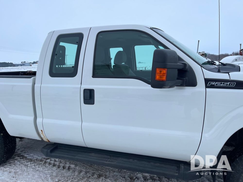 2012 Ford F250 Super Duty Extended Cab Pickup (JN3618, Unit 1219), 4x4, 6.2L gas engine, automatic transmission, air conditioning, heat, Am/Fm CD radio, cruise control, power windows & locks, running boards, rear hitch, LT265/70R17 tires, shows 95,637 miles.