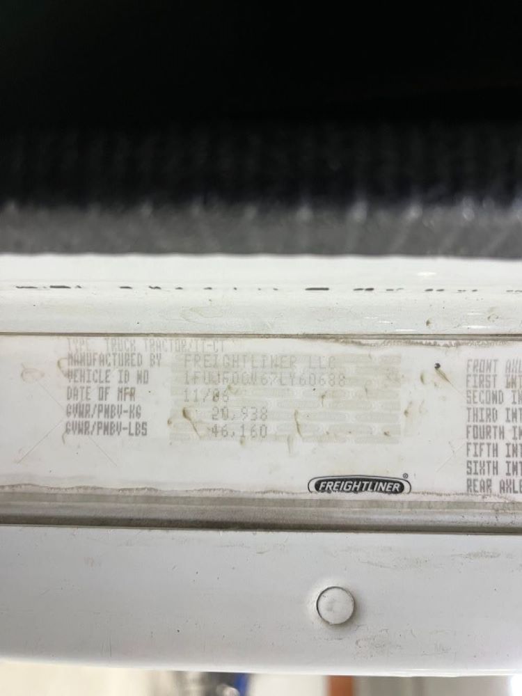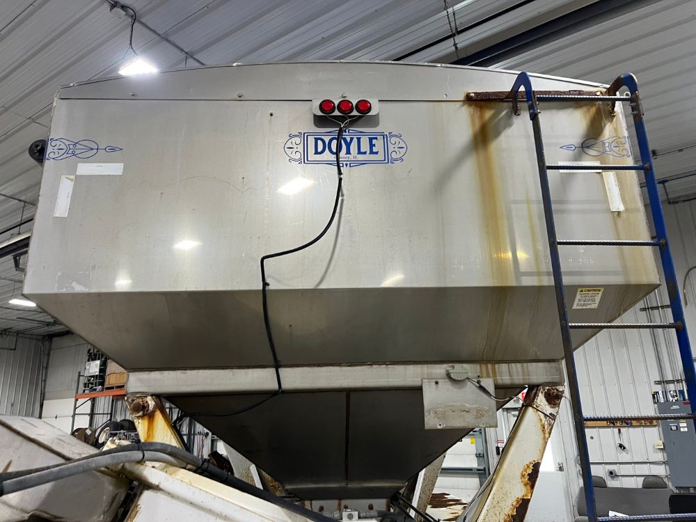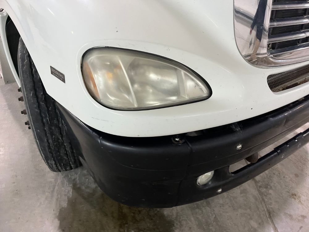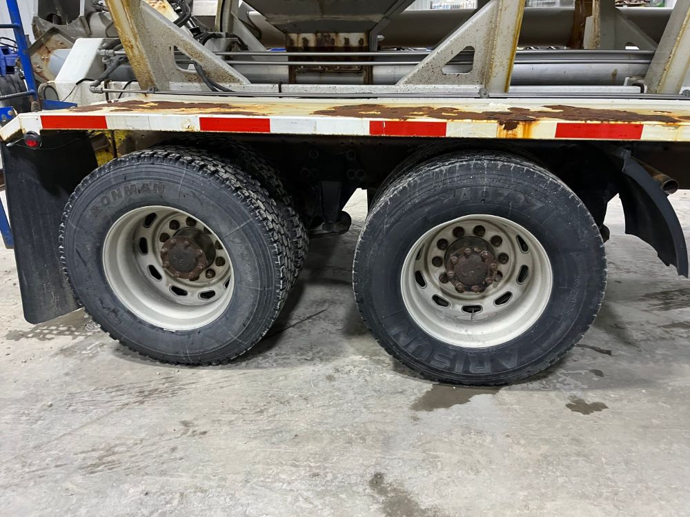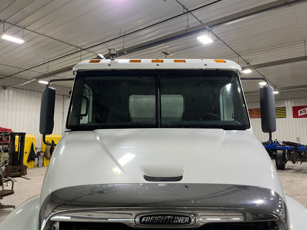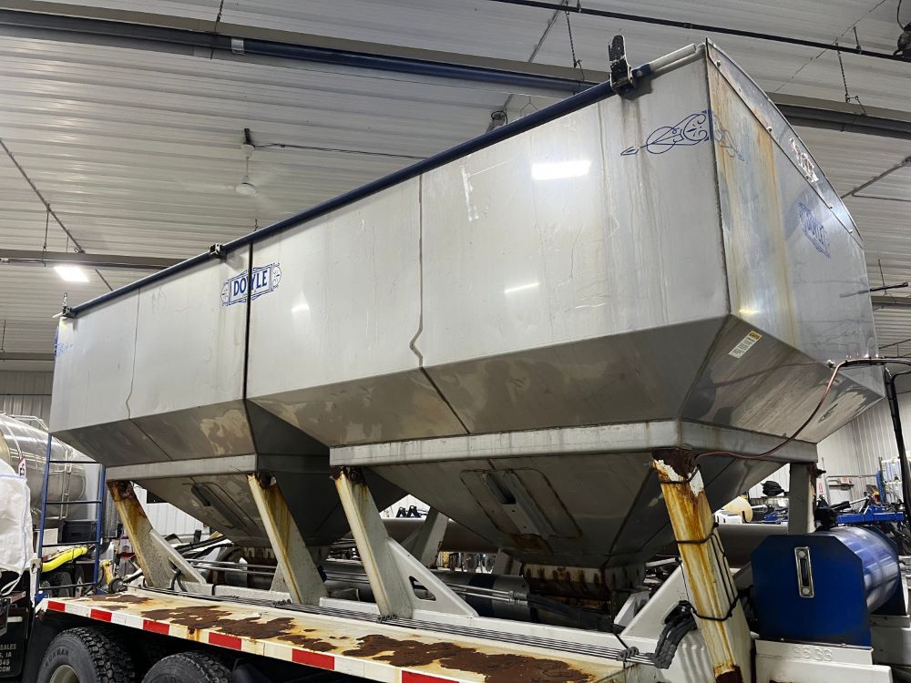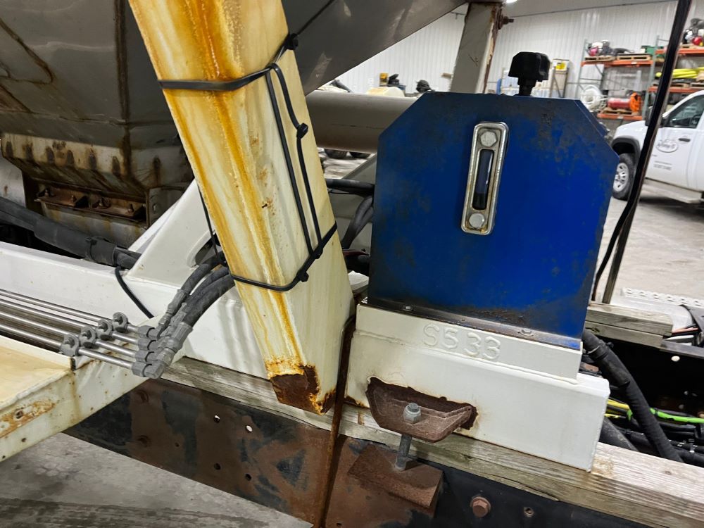 2007 Freightliner Columbia Dry Tender Truck (JN3619, Unit 1453), Mercedes-Benz diesel engine, Eaton Fuller 10 speed transmission, air conditioning, heat, Am/Fm CD radio, cruise control, engine brake, tandem axle, full screw, air ride suspension, Doyle 16 ton stainless steel dry tender box (S/N S533), side discharge auger, all hydraulic, roll over tarp, 295/75R22.5 tires, aluminum rims, shows 451,134 miles.