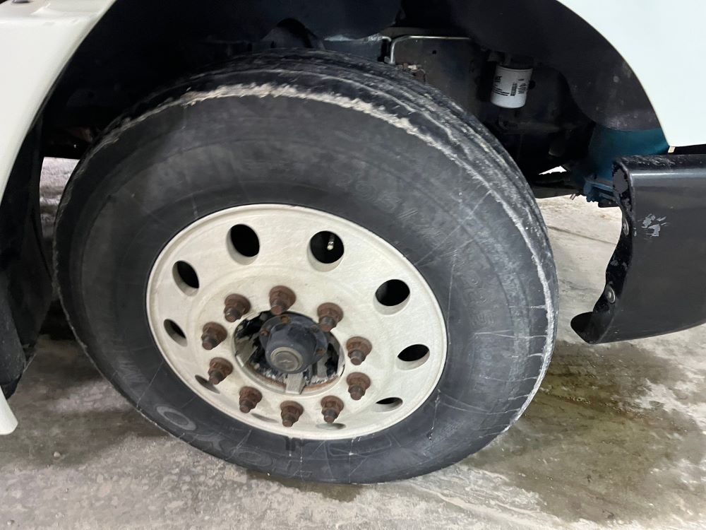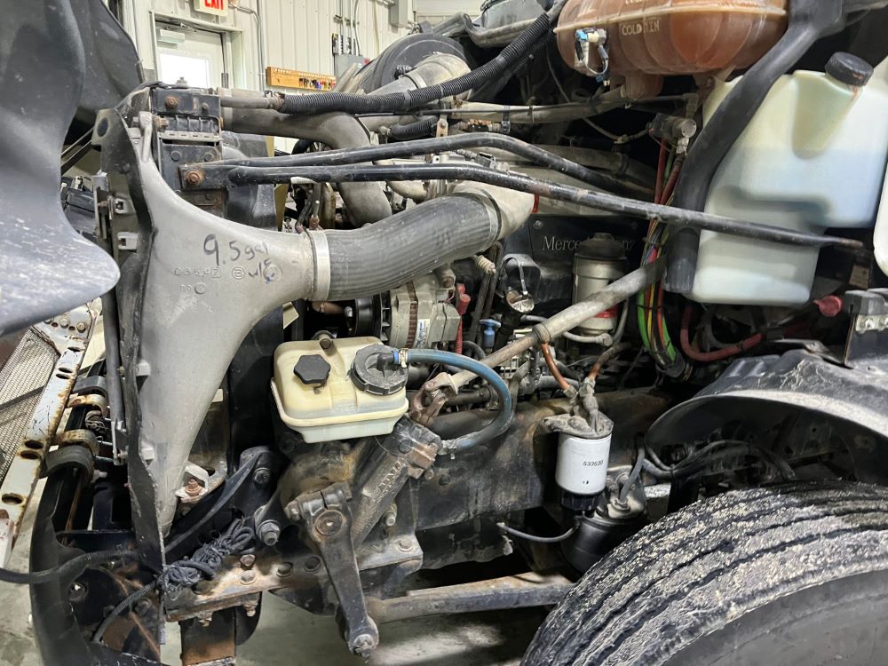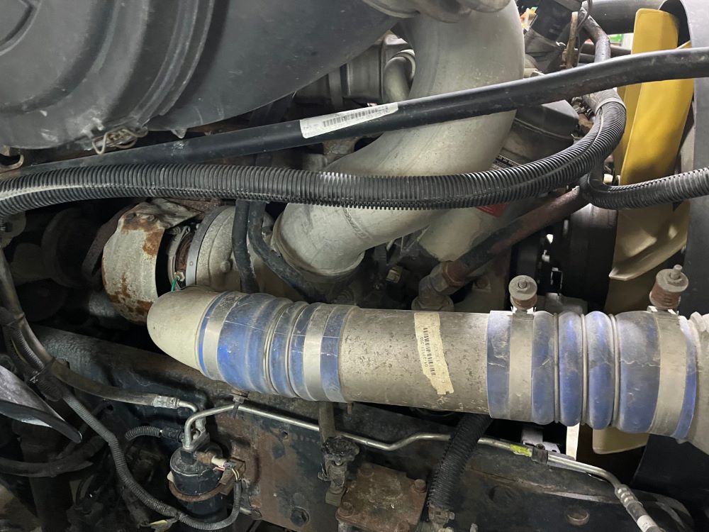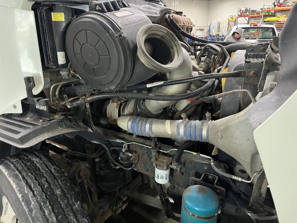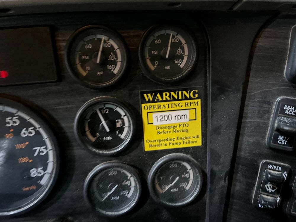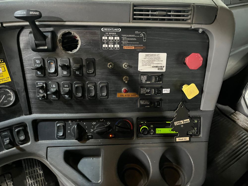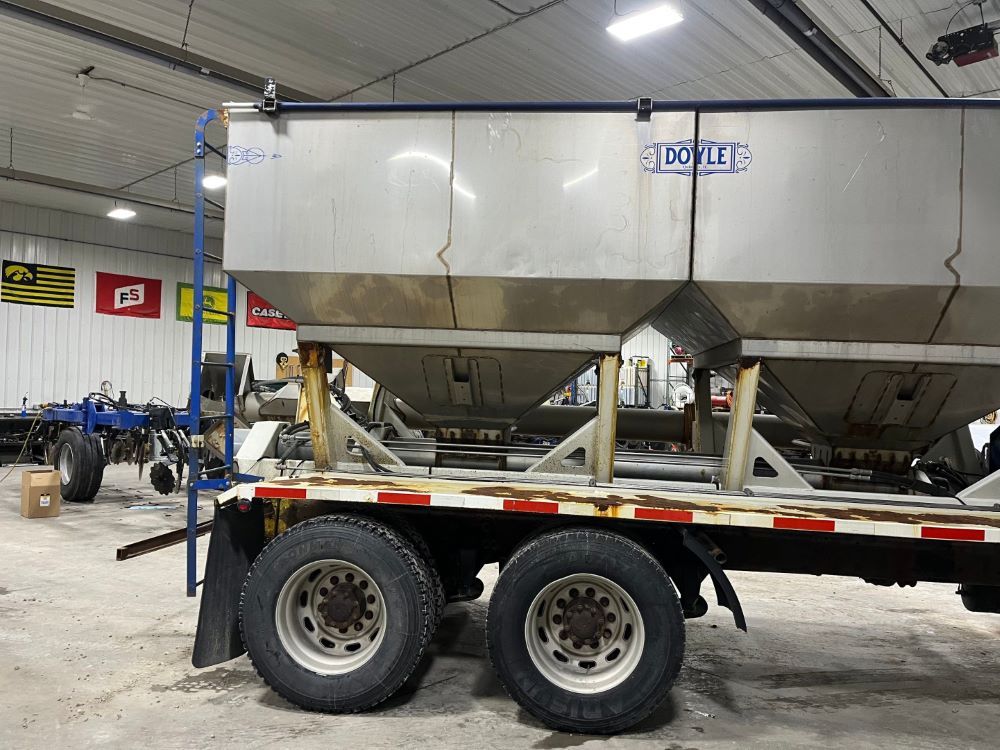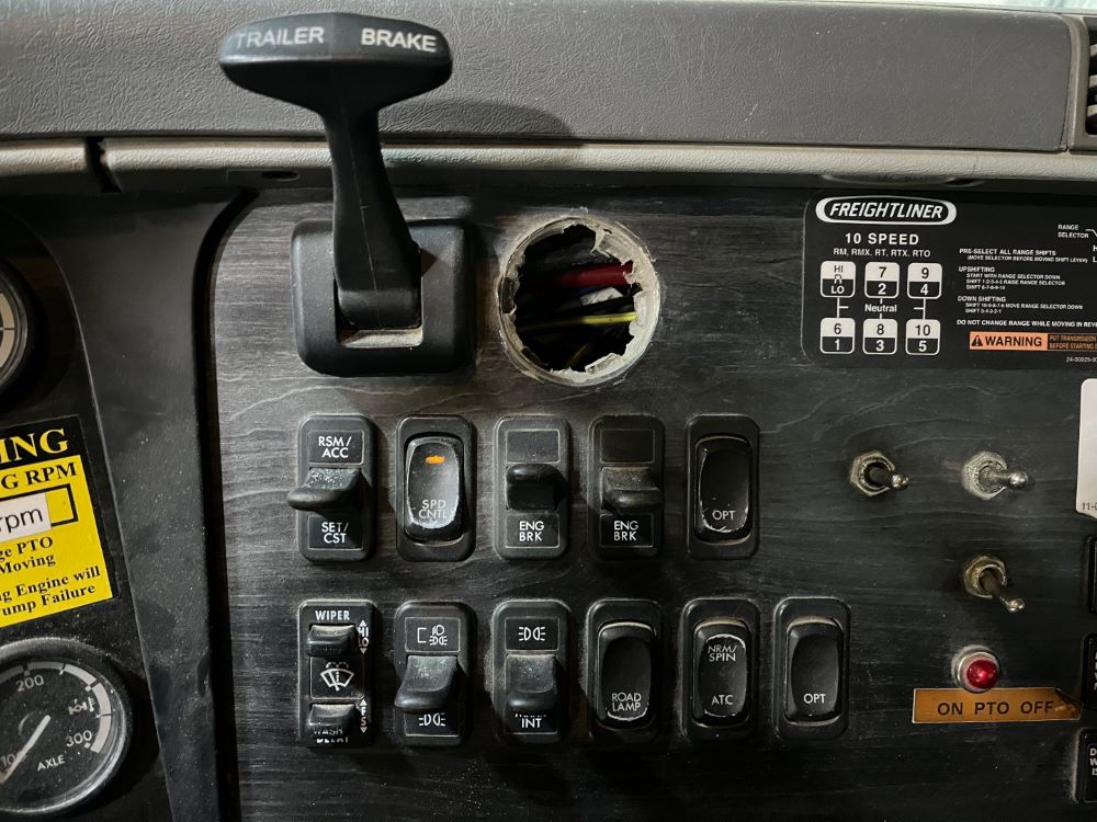 2007 Freightliner Columbia Dry Tender Truck (JN3619, Unit 1453), Mercedes-Benz diesel engine, Eaton Fuller 10 speed transmission, air conditioning, heat, Am/Fm CD radio, cruise control, engine brake, tandem axle, full screw, air ride suspension, Doyle 16 ton stainless steel dry tender box (S/N S533), side discharge auger, all hydraulic, roll over tarp, 295/75R22.5 tires, aluminum rims, shows 451,134 miles.