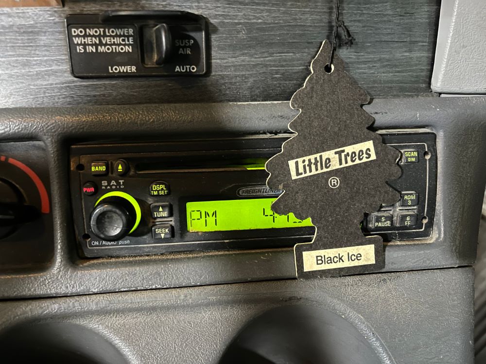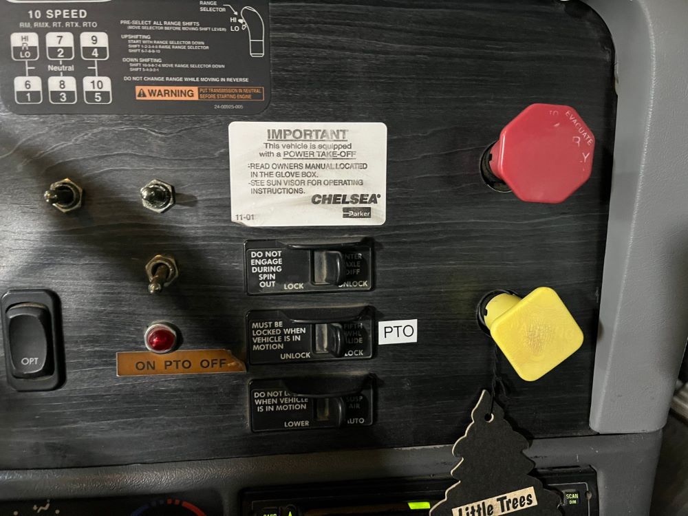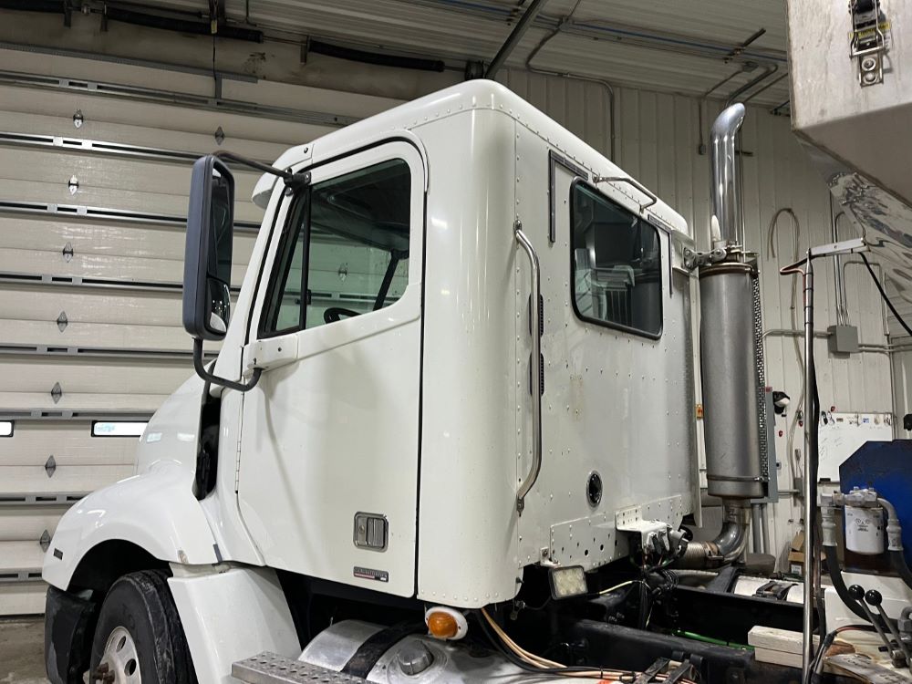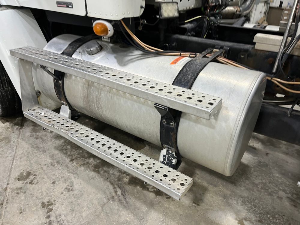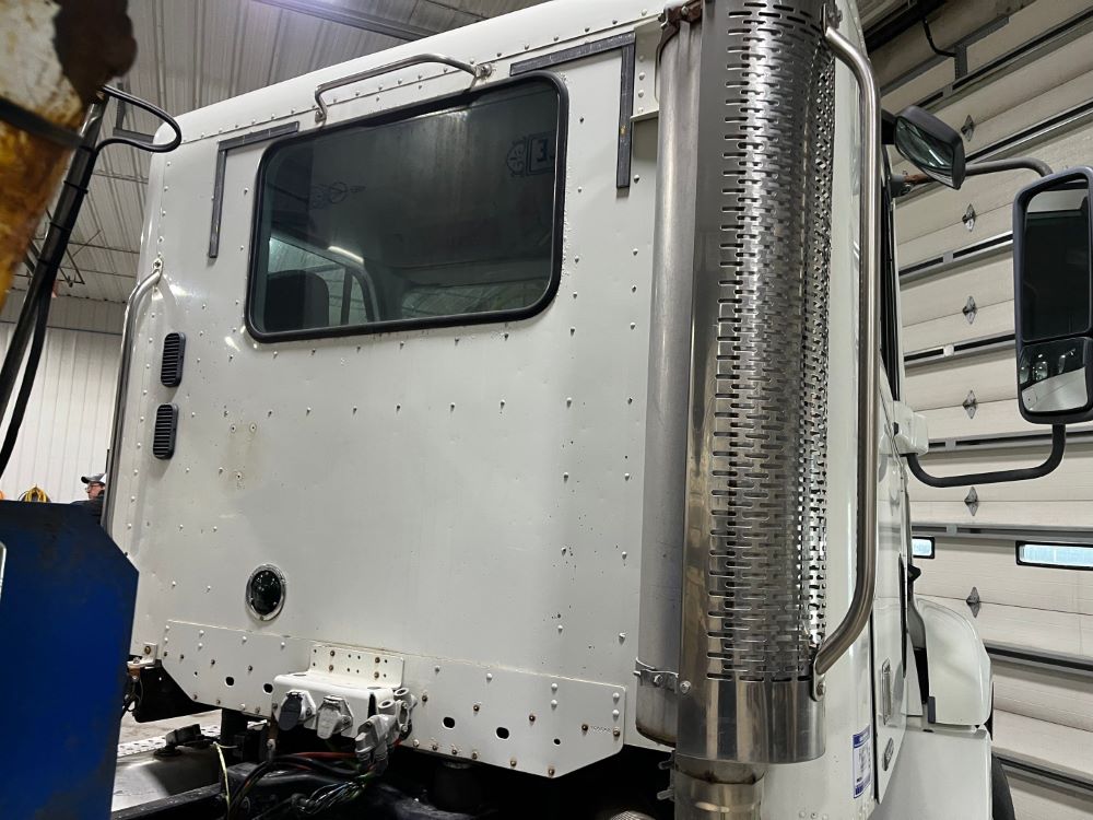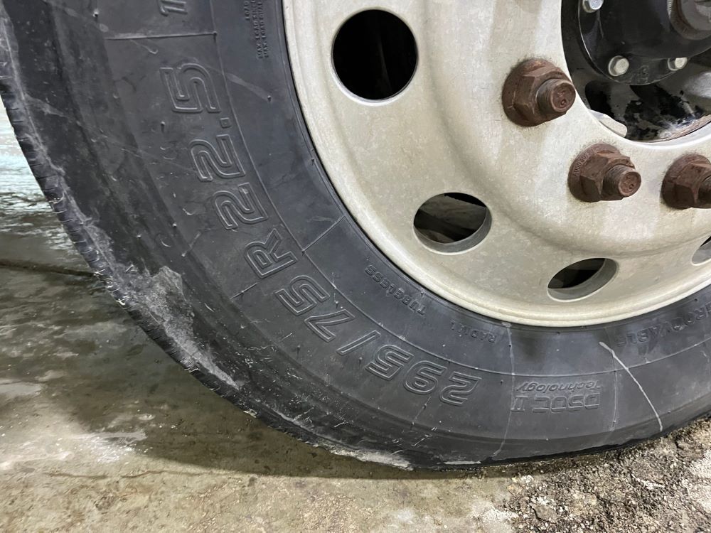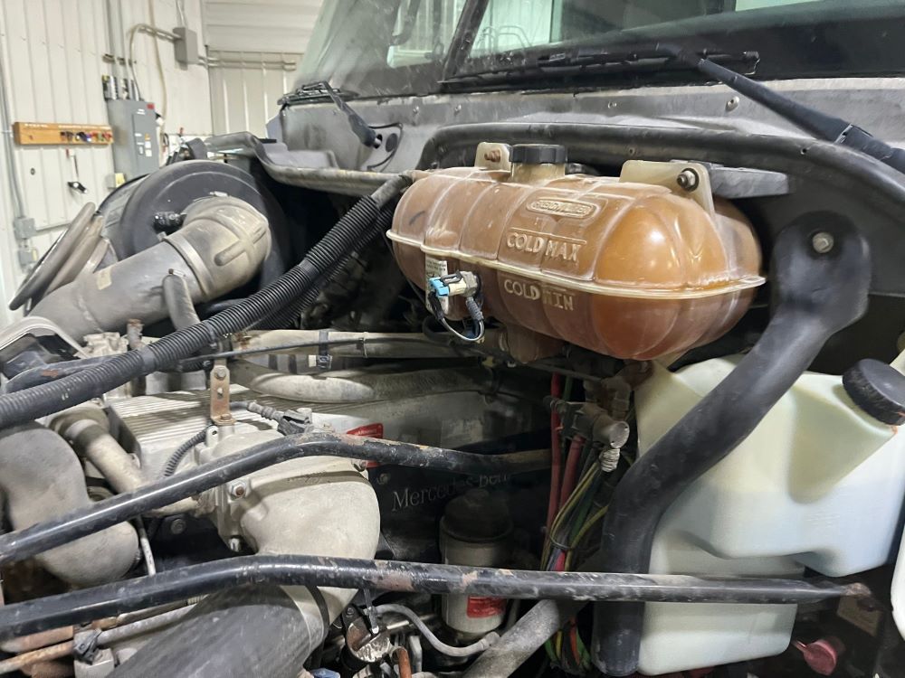 2007 Freightliner Columbia Dry Tender Truck (JN3619, Unit 1453), Mercedes-Benz diesel engine, Eaton Fuller 10 speed transmission, air conditioning, heat, Am/Fm CD radio, cruise control, engine brake, tandem axle, full screw, air ride suspension, Doyle 16 ton stainless steel dry tender box (S/N S533), side discharge auger, all hydraulic, roll over tarp, 295/75R22.5 tires, aluminum rims, shows 451,134 miles.