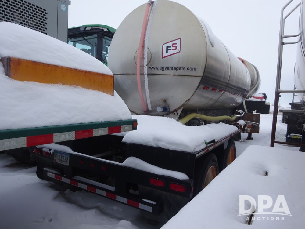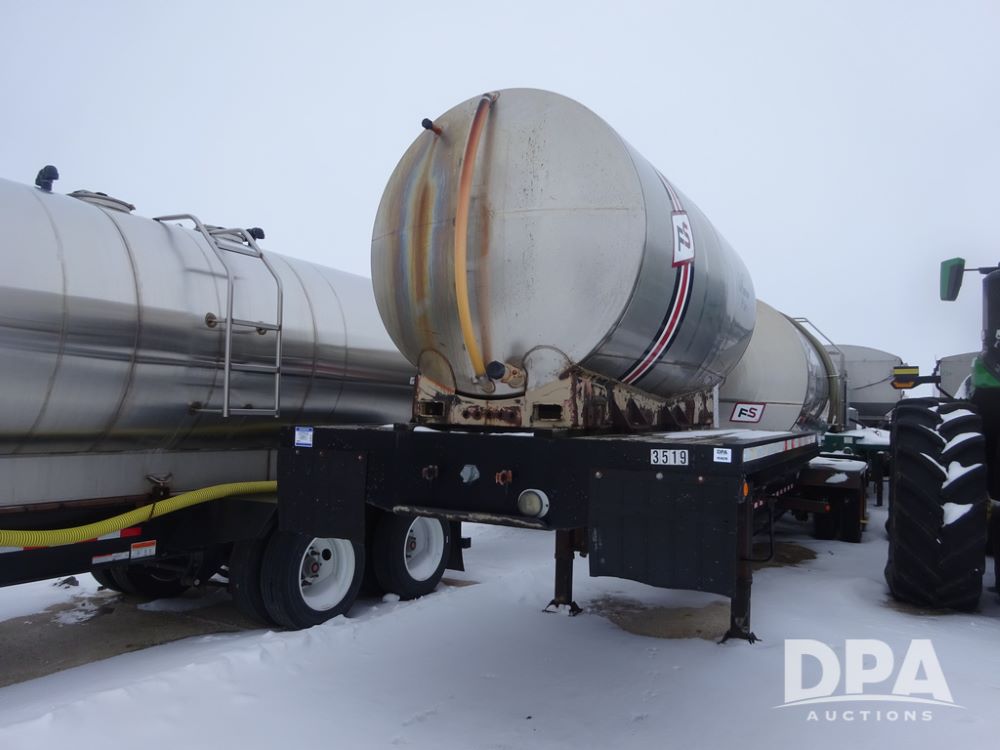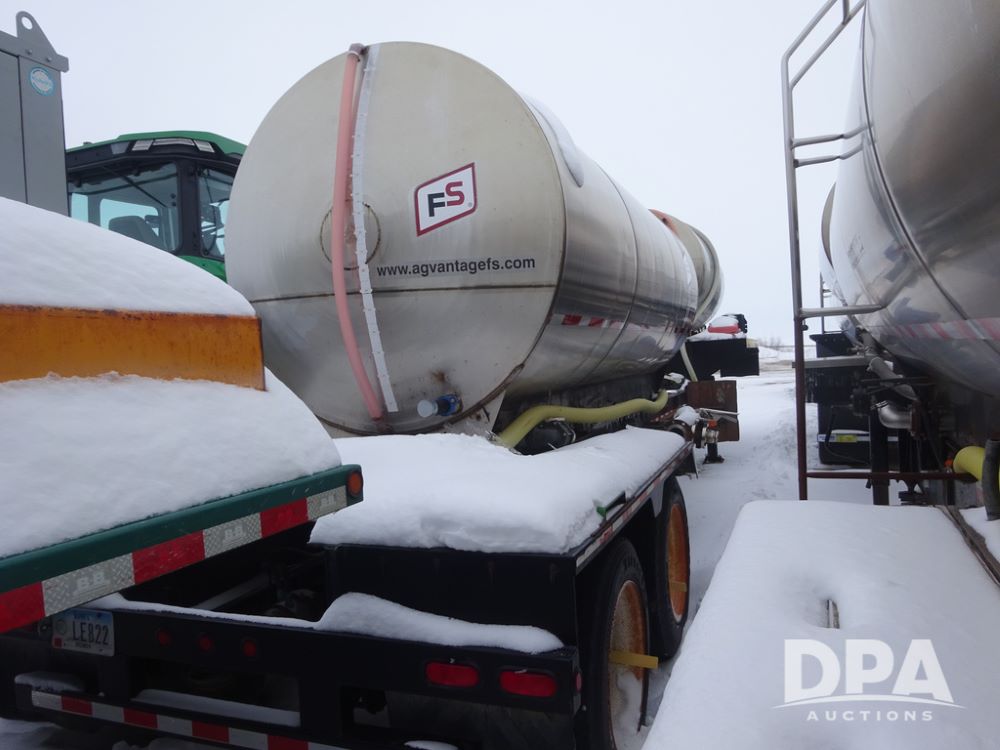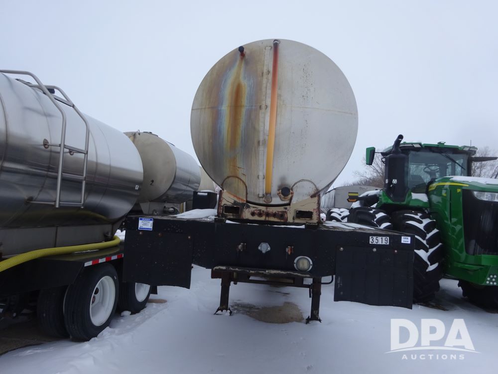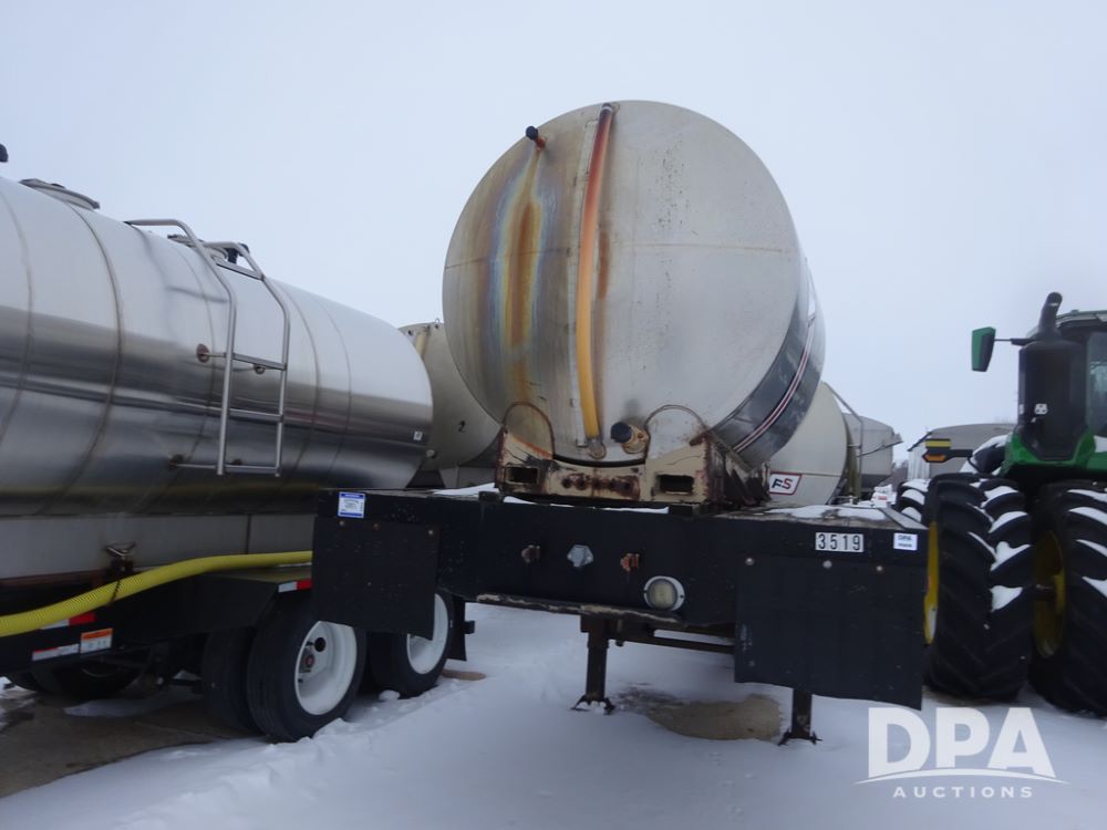 2004 B-B Liquid Nurse Trailer (PZ14270, Unit 3519), 2004 B-B liquid nurse trailer, 1600 gallon front stainless steel liquid nurse tank, 3300 gallon rear stainless steel liquid nurse tank, ladder, tandem axle, spring suspension, 255/70R22.5 tires.
