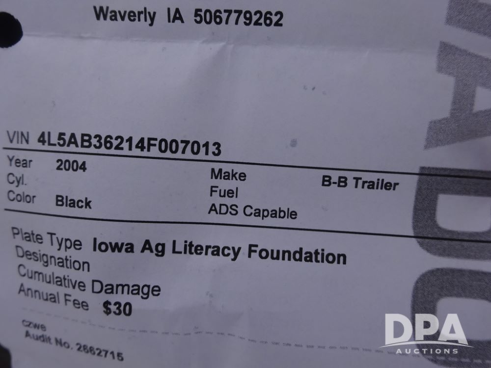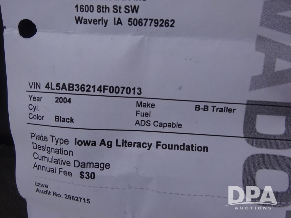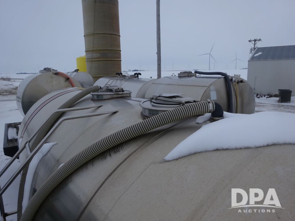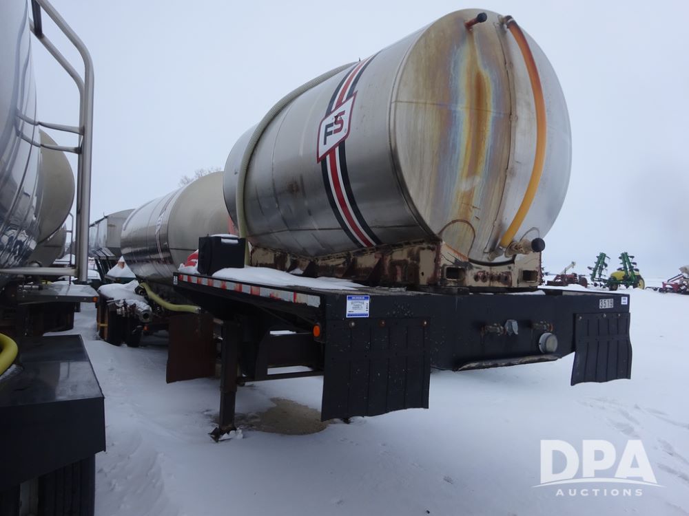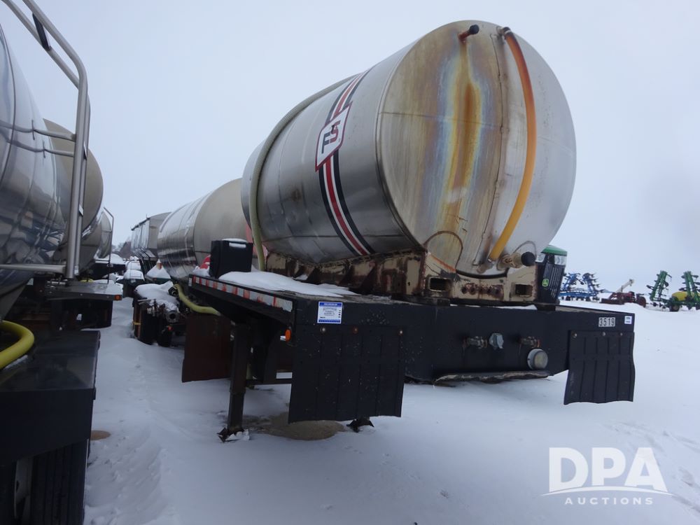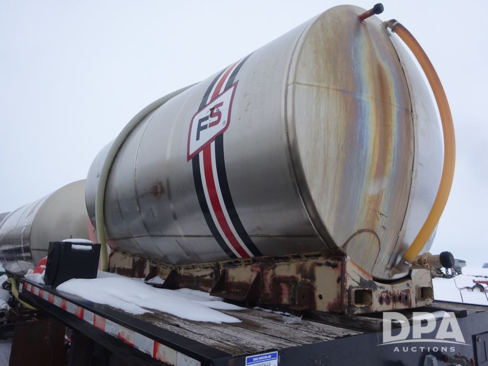 2004 B-B Liquid Nurse Trailer (PZ14270, Unit 3519), 2004 B-B liquid nurse trailer, 1600 gallon front stainless steel liquid nurse tank, 3300 gallon rear stainless steel liquid nurse tank, ladder, tandem axle, spring suspension, 255/70R22.5 tires.