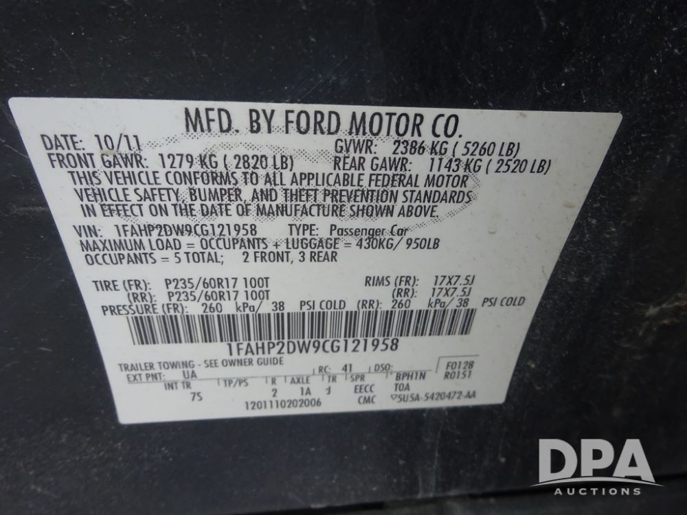 Serial Number: 1FAHP2DW9CG121958