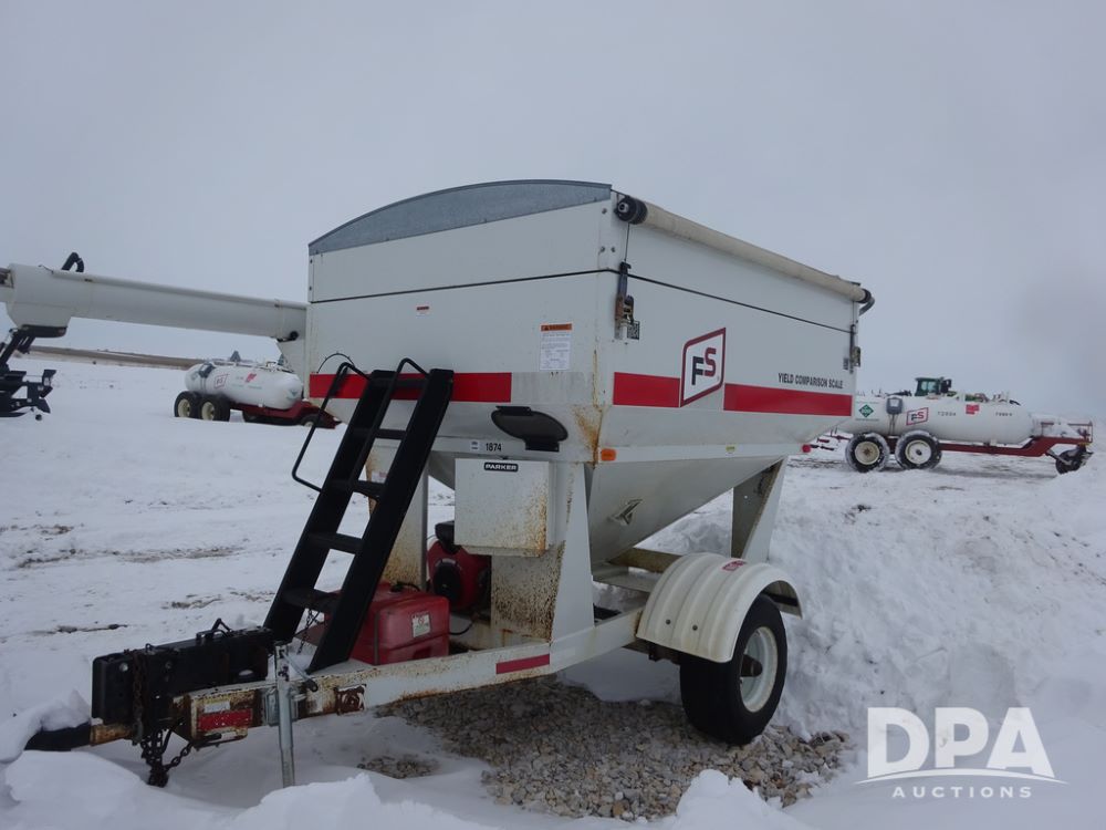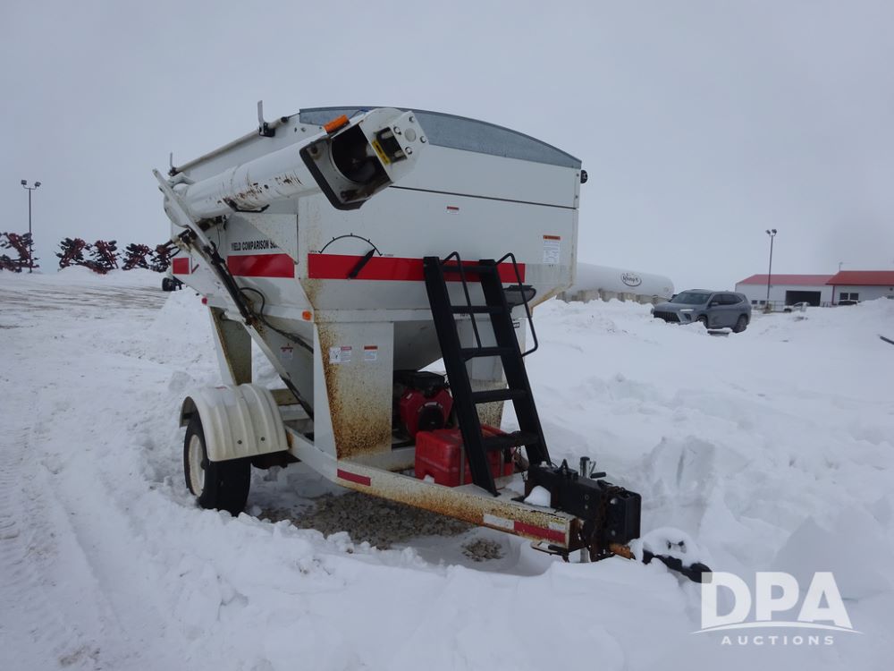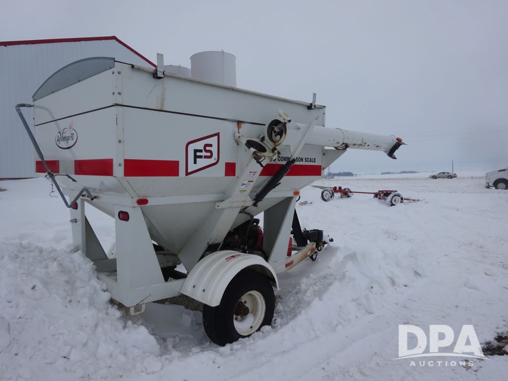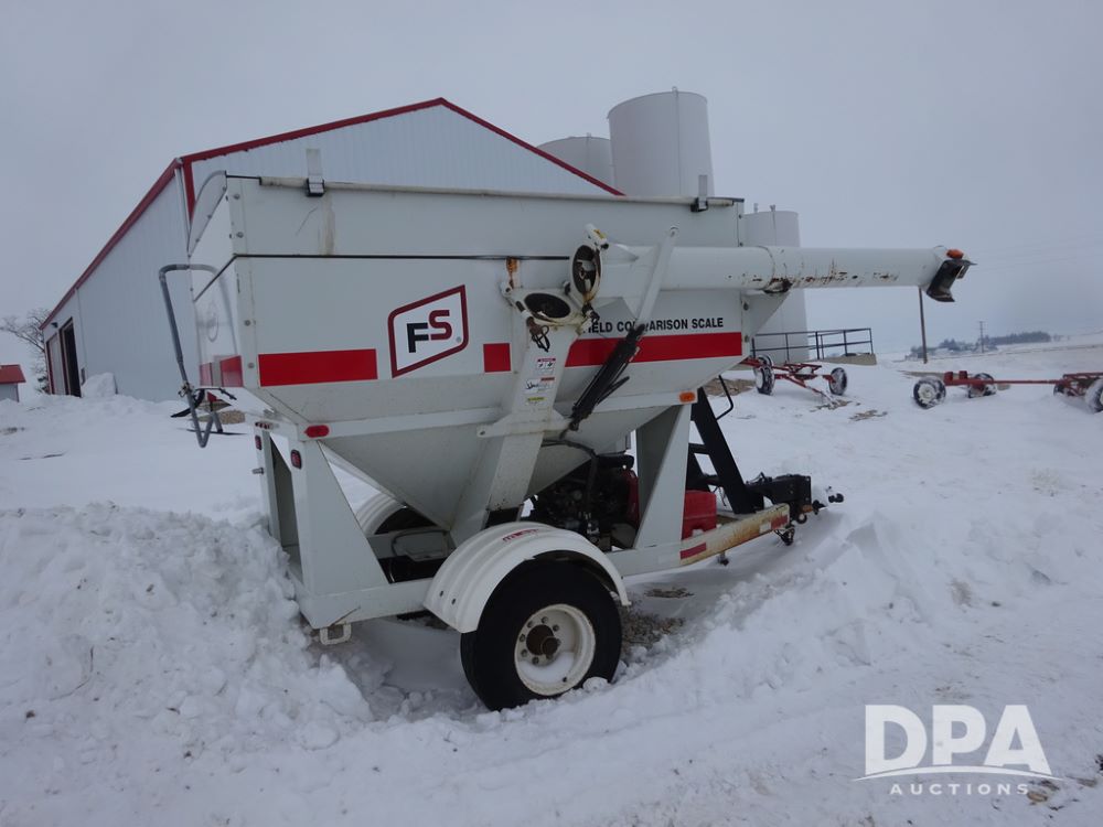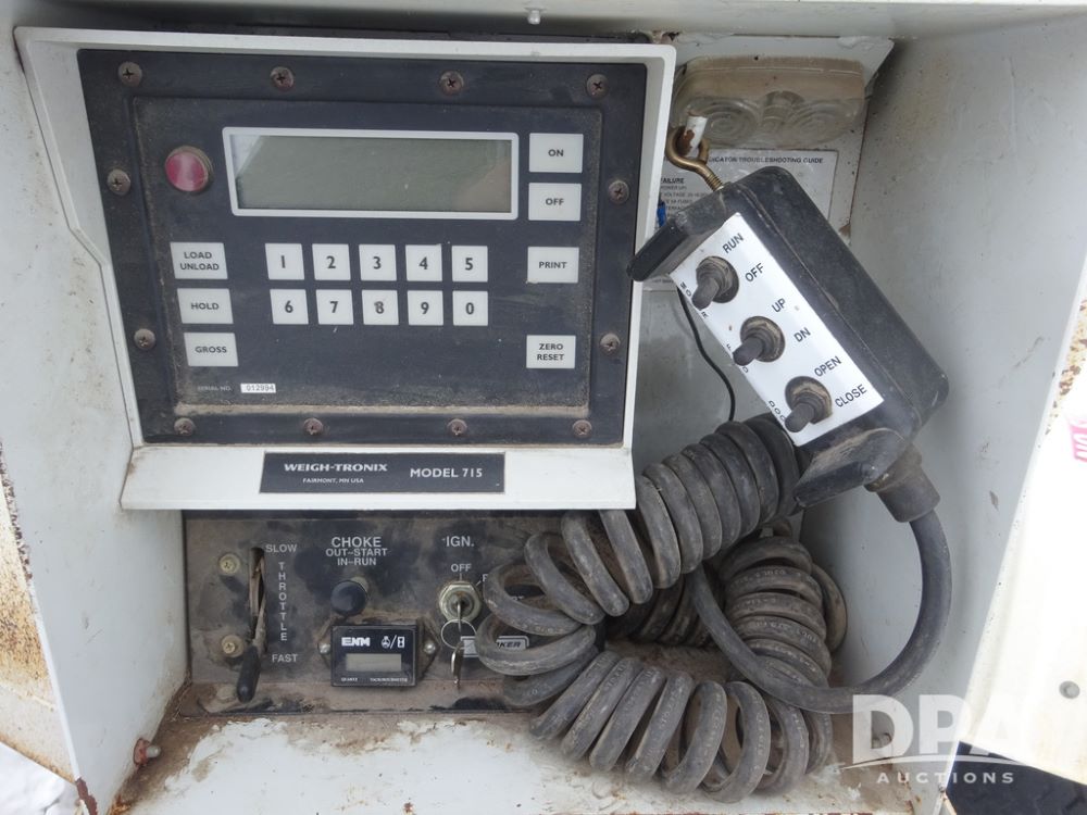 2003 Unverferth Weigh Wagon (PZ14254, Unit 1874), 2003 Unverferth weigh wagon, side discharge auger, Briggs & Stratton Vanguard 18 hp electric start gas engine, hand held control, Weigh-Tronix model 715 digital scale, roll over tarp, single axle, 12-16.5 tires,fenders.