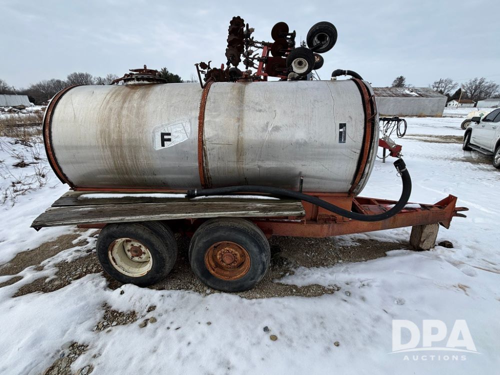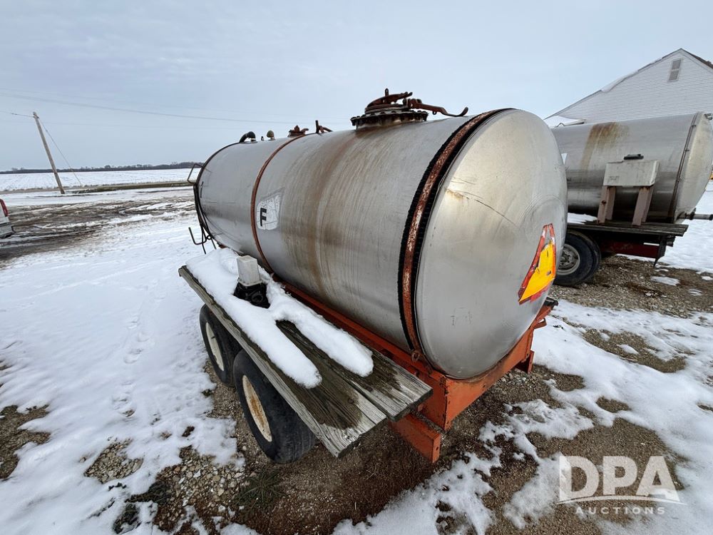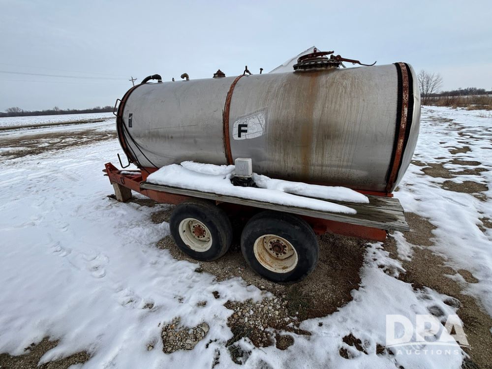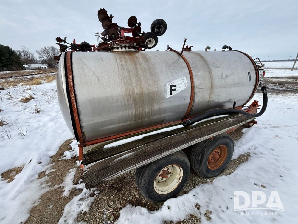 Precision Liquid Nurse Tank (GP12163, Unit 1), 1,100 gallon stainless steel liquid nurse tank, tandem axle gear, 11L-15 flotation tires.