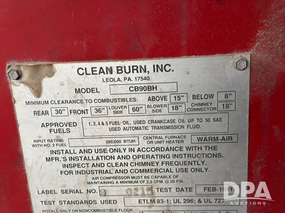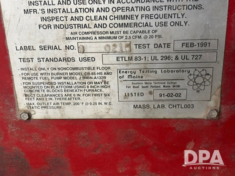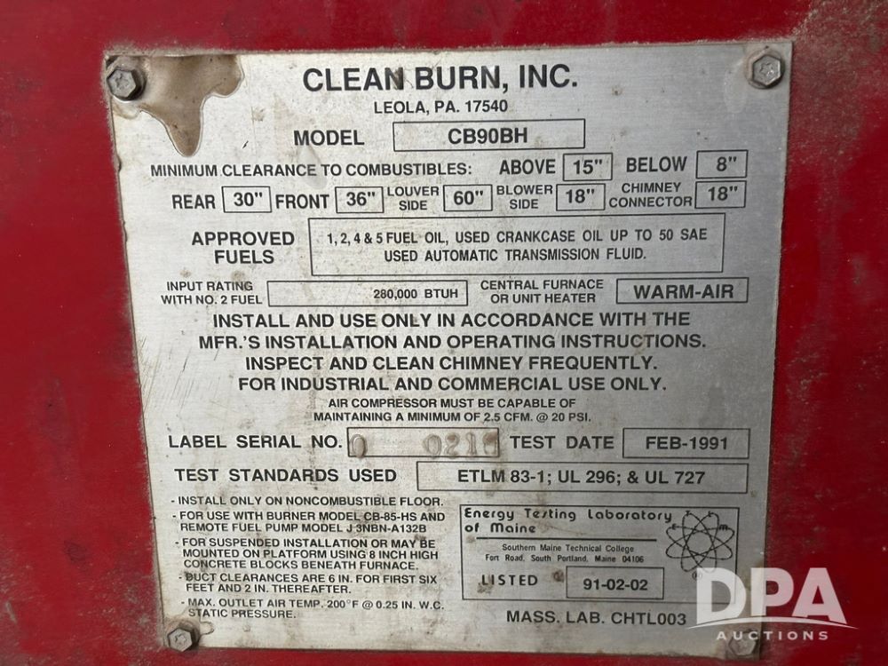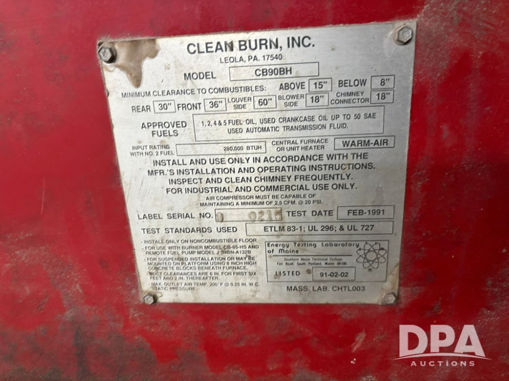 1991 Clean Burn Furnace (GP12169), Clean Burn model CB90BH oil burning furnace, 280,000 BTUH.
