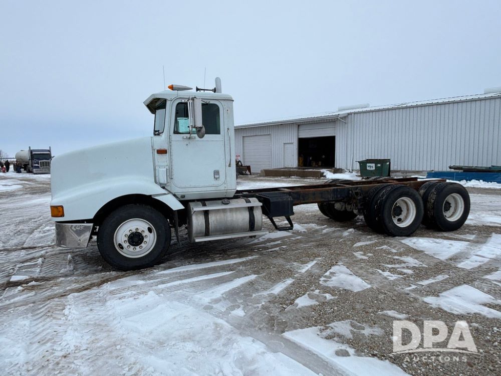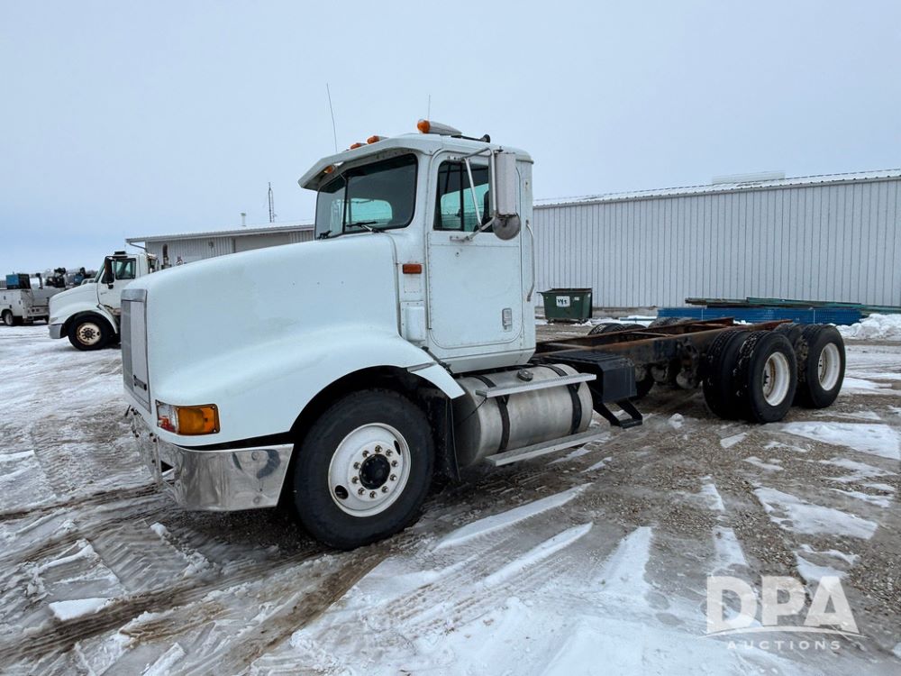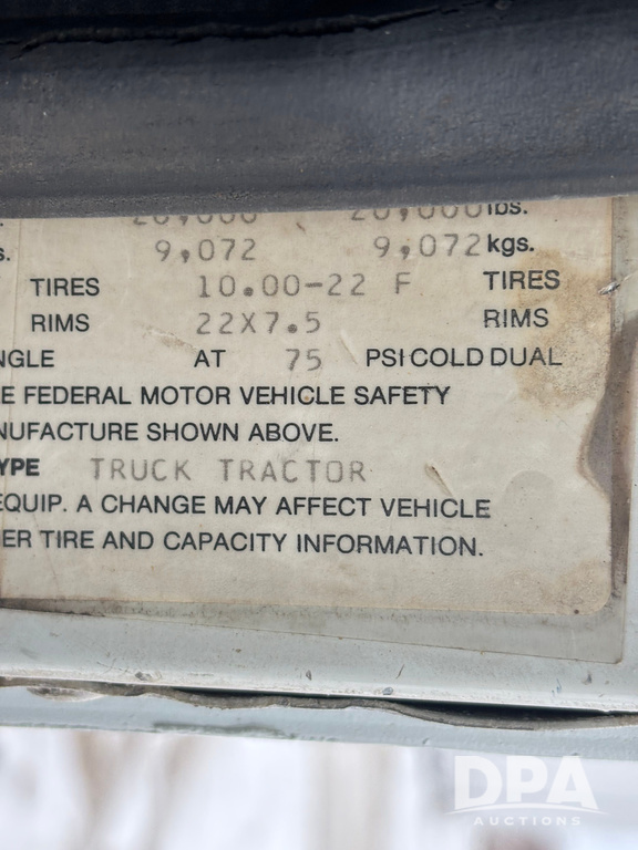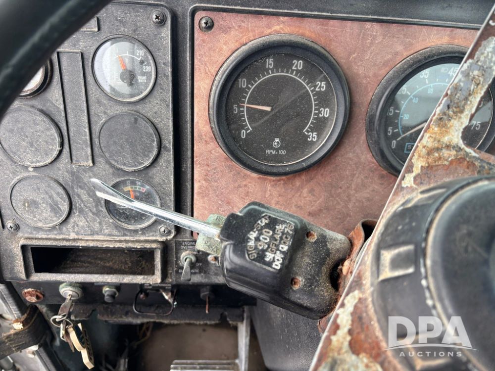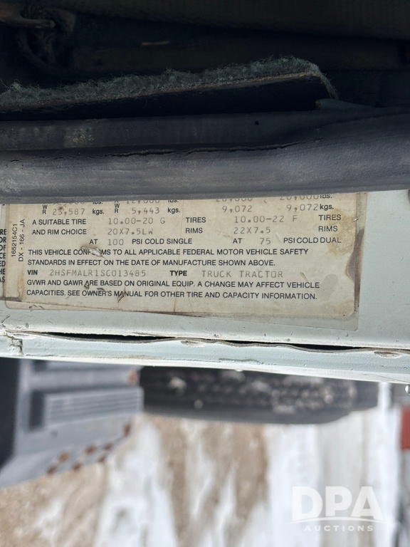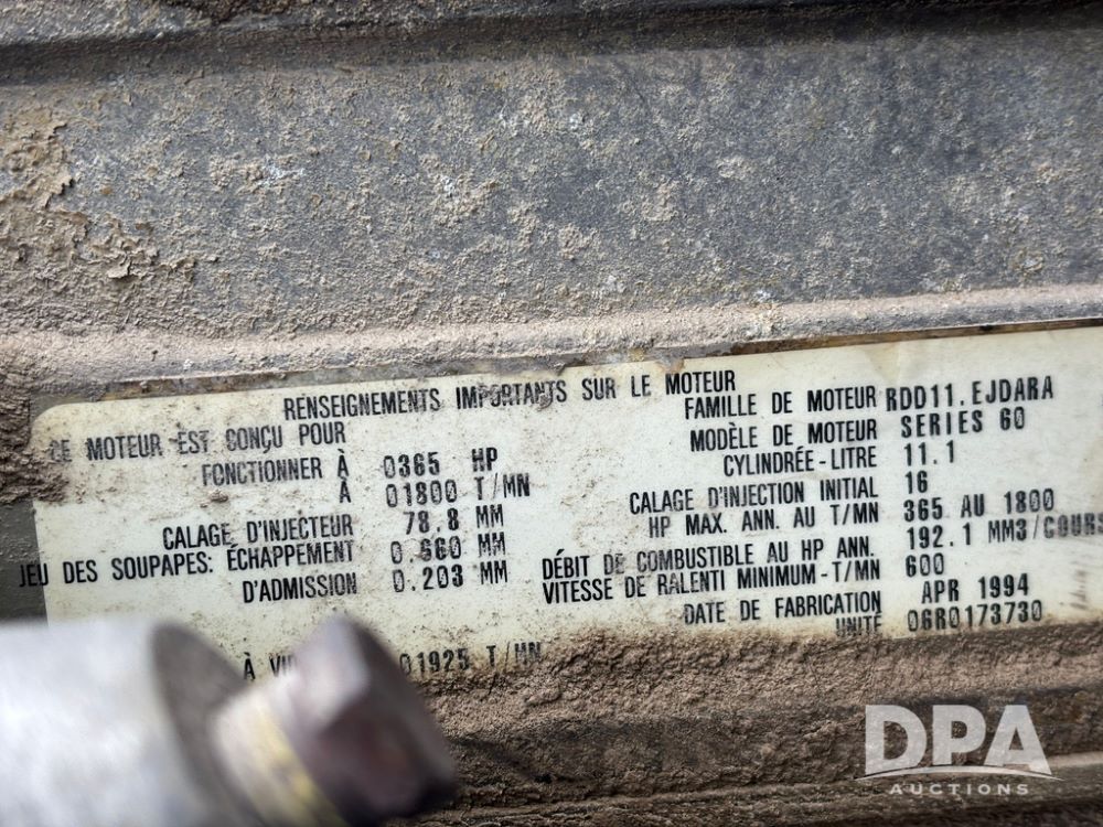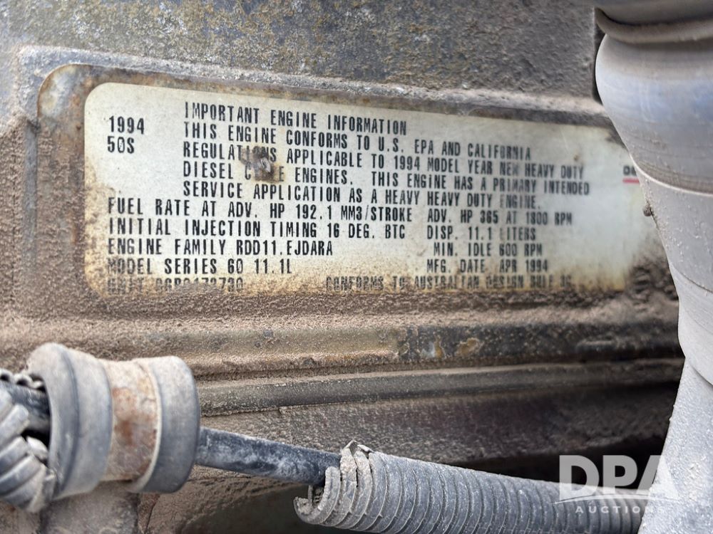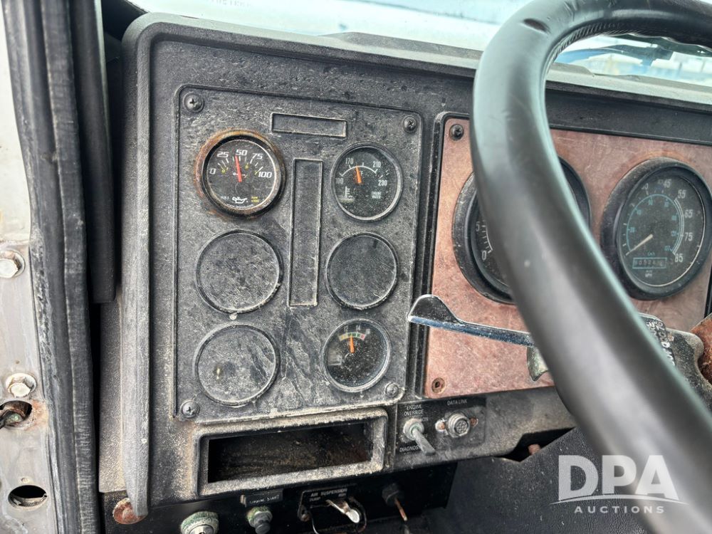 1995 IHC 9200 Truck (GP12243, Unit 183), Detroit Series 60 diesel engine, Spicer SD-PS-9N speed transmission, heat, Am/Fm radio, cruise control, engine brake, tandem axle, full screw, air ride suspension, 11R22.5 tires, shows 505,263 miles.