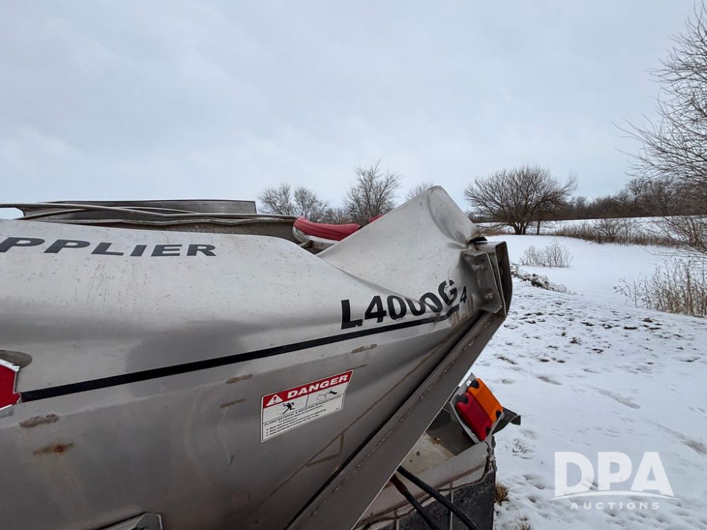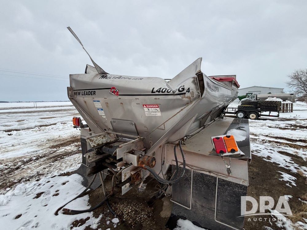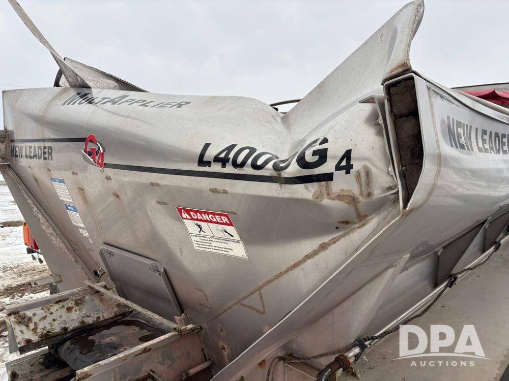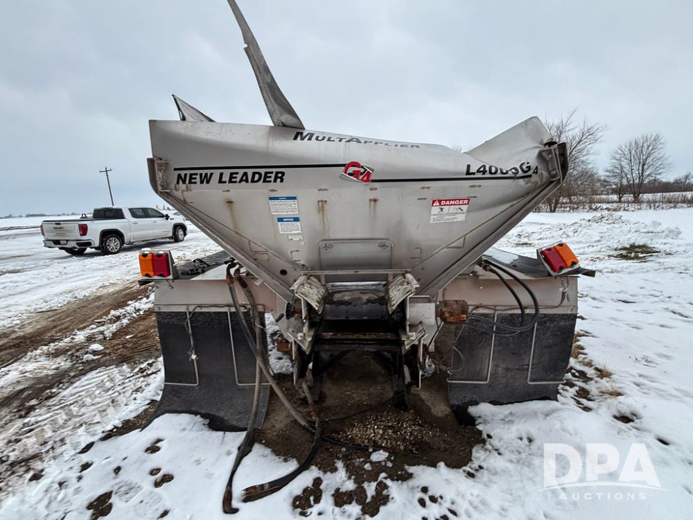 New Leader Dry Spreader Box (GP12235), New Leader L4000 G4 - 14' stainless steel dry spreader box (S/N 131353), New leader stainless steel 7' insert, S/N 131354.