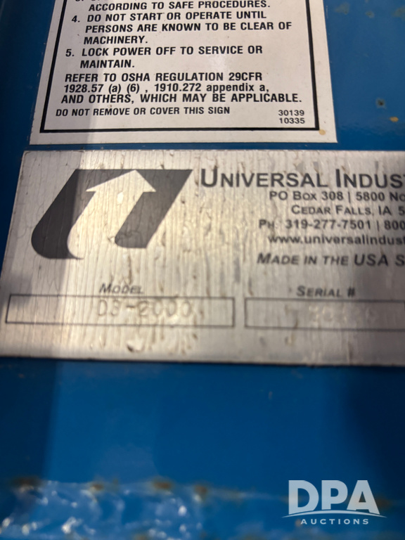 Equipment Sold "AS IS, WHERE IS": All equipment/property is sold "AS IS, WHERE IS" with no warranty or guarantees, expressed or implied, No operational assessments have been made by DPA Auctions on this item, it has been photographed ONLY.
