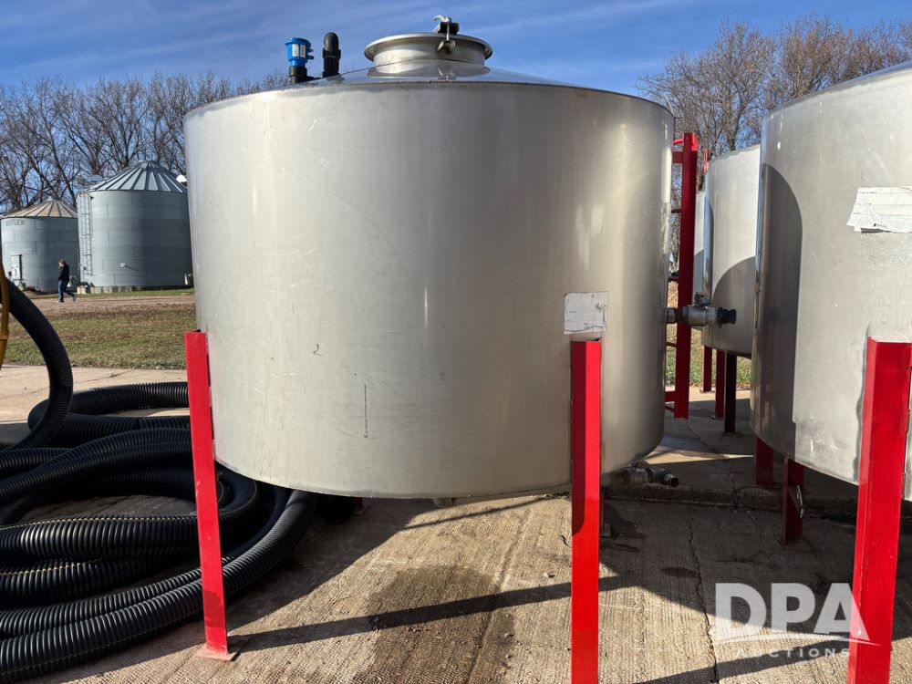 Belgrade Stainless Tank (DR12759 Unit 708), 1,097 gallon stainless steel dish bottom liquid tank, 2'' outlet