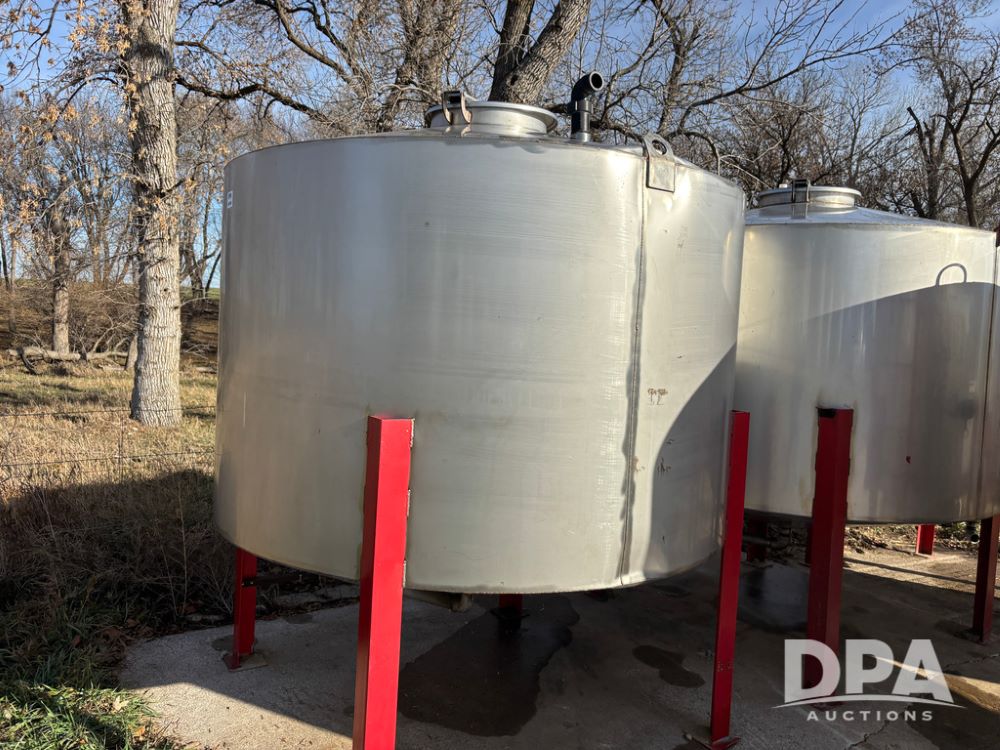 Belgrade Stainless Tank (DR12762 Unit 707), 1,097 gallon stainless steel dish bottom liquid tank, 2'' outlet.