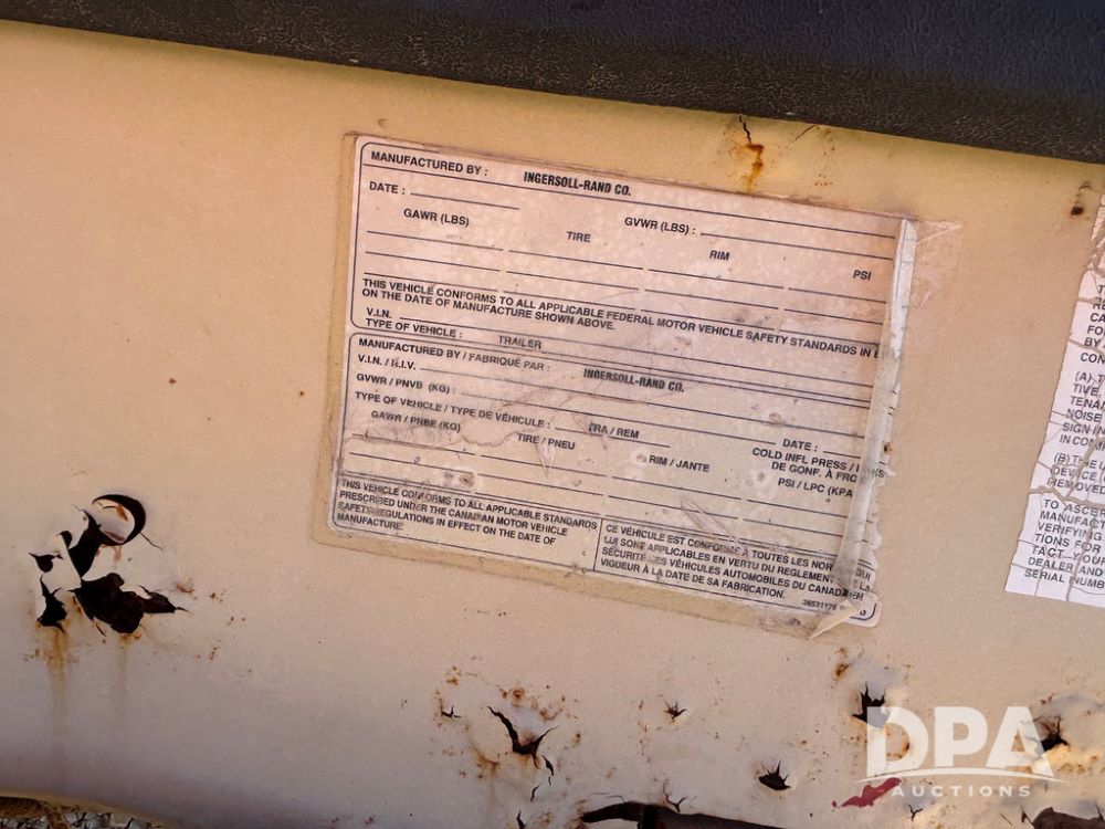 Ingersol Rand Portable Compressor (DR12882 Unit 21472) model 185, NON RUNNER, Ingersol portable air compressor, diesel engine, single axle transport gear.