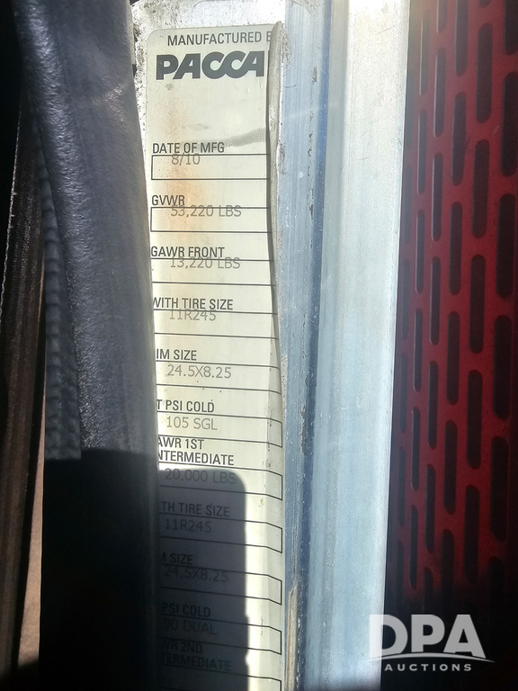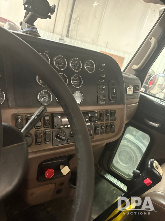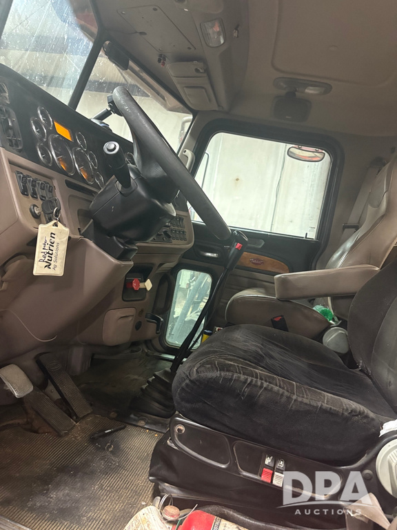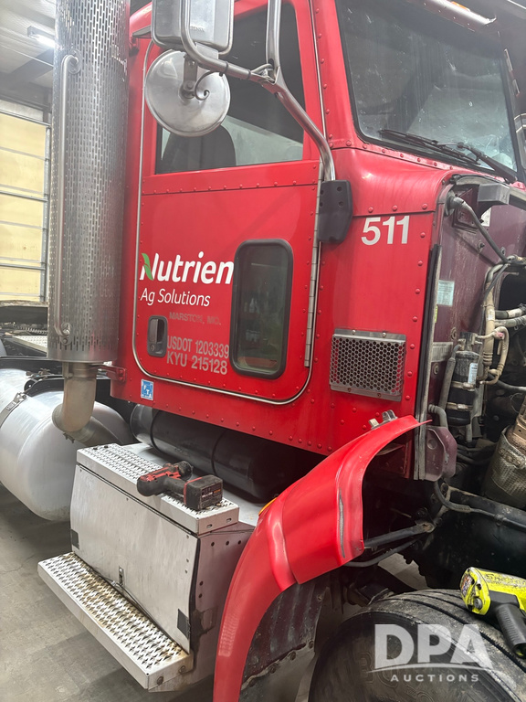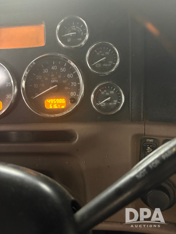 2011 Peterbilt 386 Day Cab Truck (PZ14291, Unit 01966), Cat diesel engine, Eaton Fuller 13 speed transmission, air conditioning, heat, Am/Fm radio, cruise control, engine brake, tandem axle, full screw, air ride suspension, 5th wheel, shows 495,986 miles.