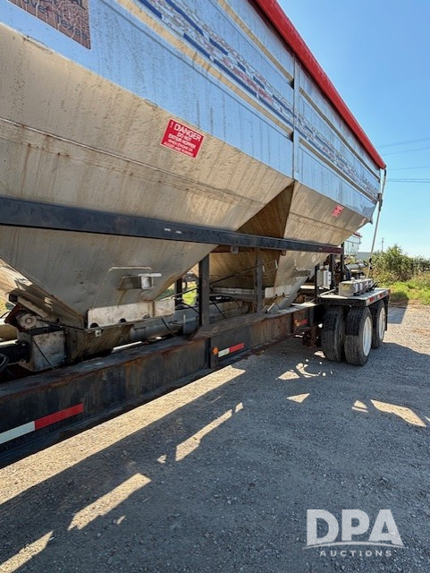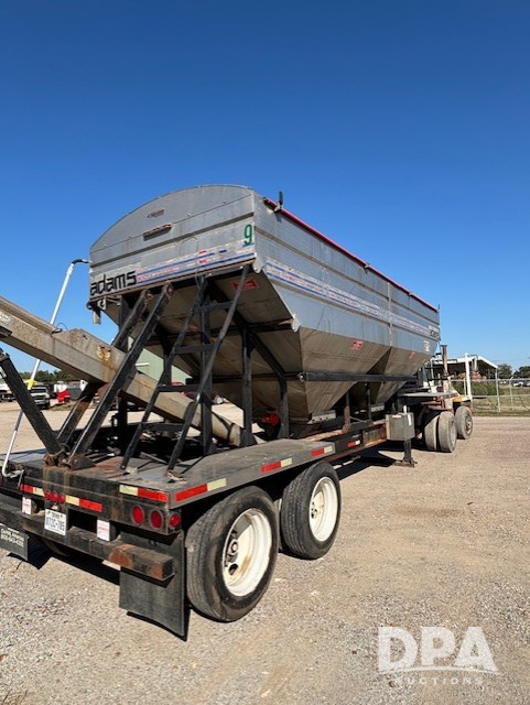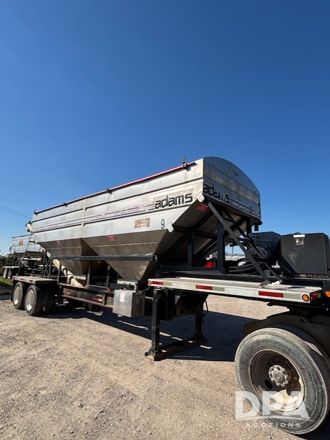2018 Adams Dry Tender Trailer (PD5440), 32 foot Magnolia drop deck trailer, two compartment, Deutz air cooled diesel engine, stainless steel discharge auger, new four hydraulic cylinders, new steel belly augers, bearings , shafts, new hydraulic motors for belly and discharge augers, new hydraulic vibrator, new tarp system, new battery, very good running condition.