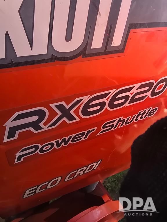 2016 Kyoti RX6620 Tractor With Loader (PD5435), CRDI with loader, 66 hp, power shuttle transmission, ECO, 4WD, only used for light tilling and mowing around berry farm, excellent air conditioner, very clean, barn kept, shows 607 hours.
