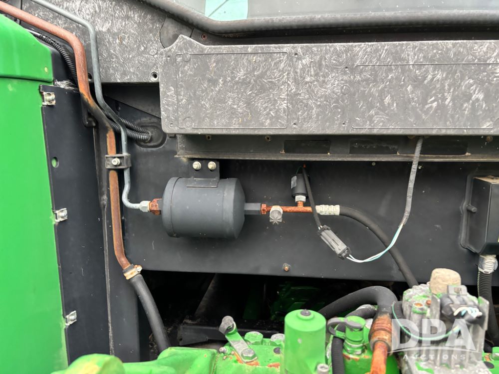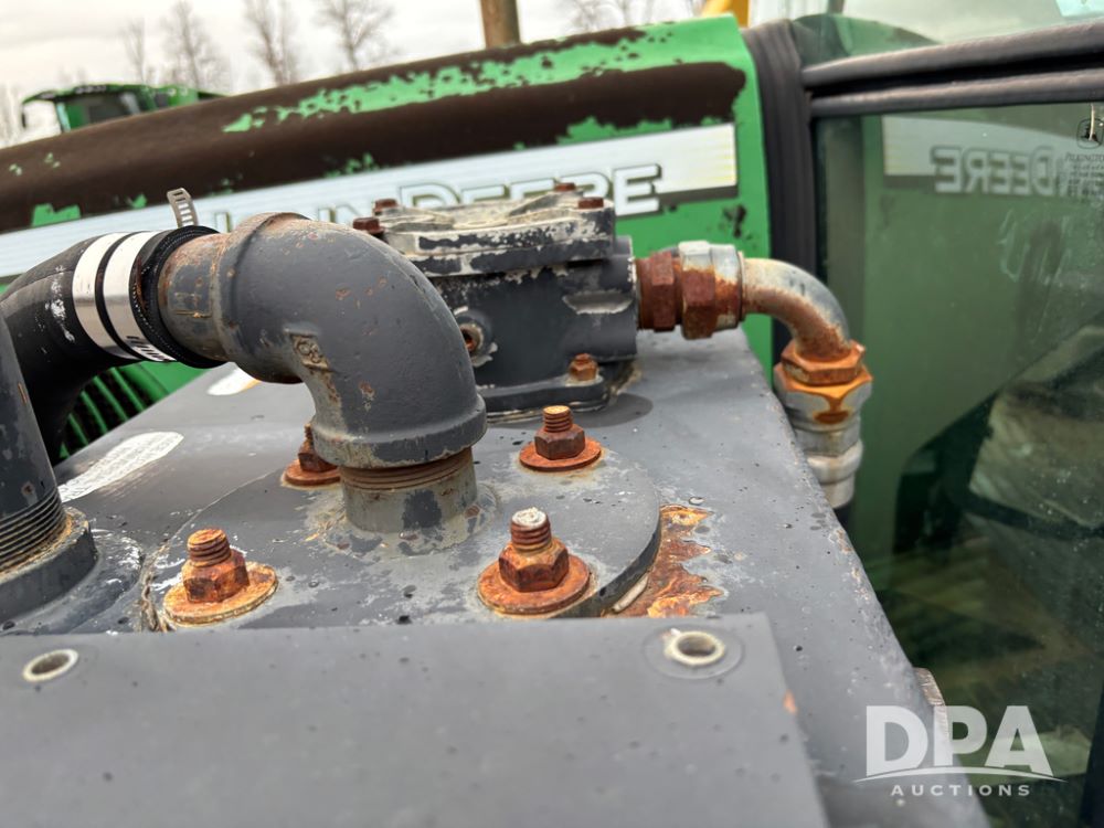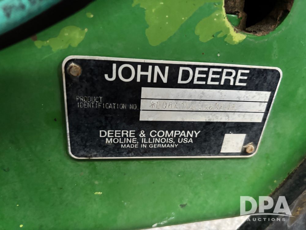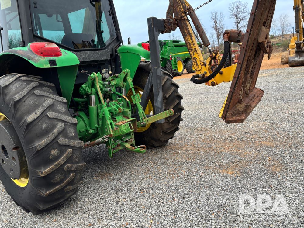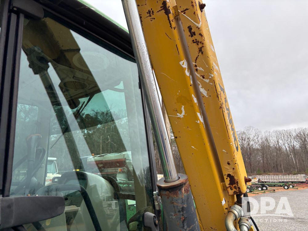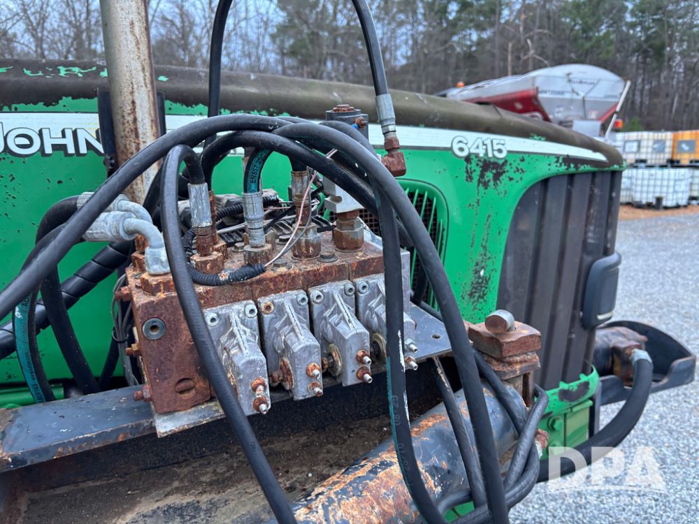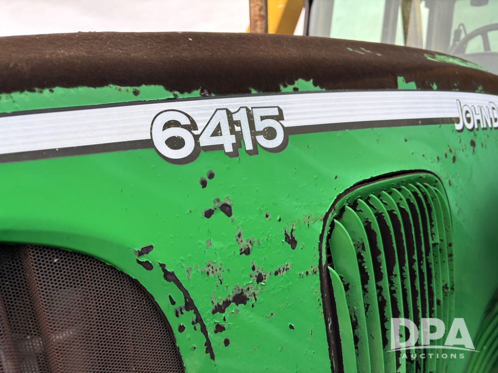 John Deere 6415 Tractor (JY1017), 104hp John Deere diesel engine, 16 speed quad range transmission, Alamo VRSA side arm hydraulic mower, 8' boom, 72'' stick, 66'' mowing deck, joystick cab control, 1,400lb rear weight, single hydraulic remote, 540 PTO, 3 point hitch, dual entry cab, air conditioning, tilt column, 10.00-16 front tires, 18.4-30 rear tires are near new, shows 165.3 hours, not actual. Mower not tested.