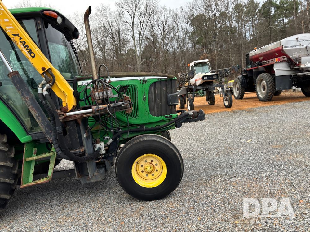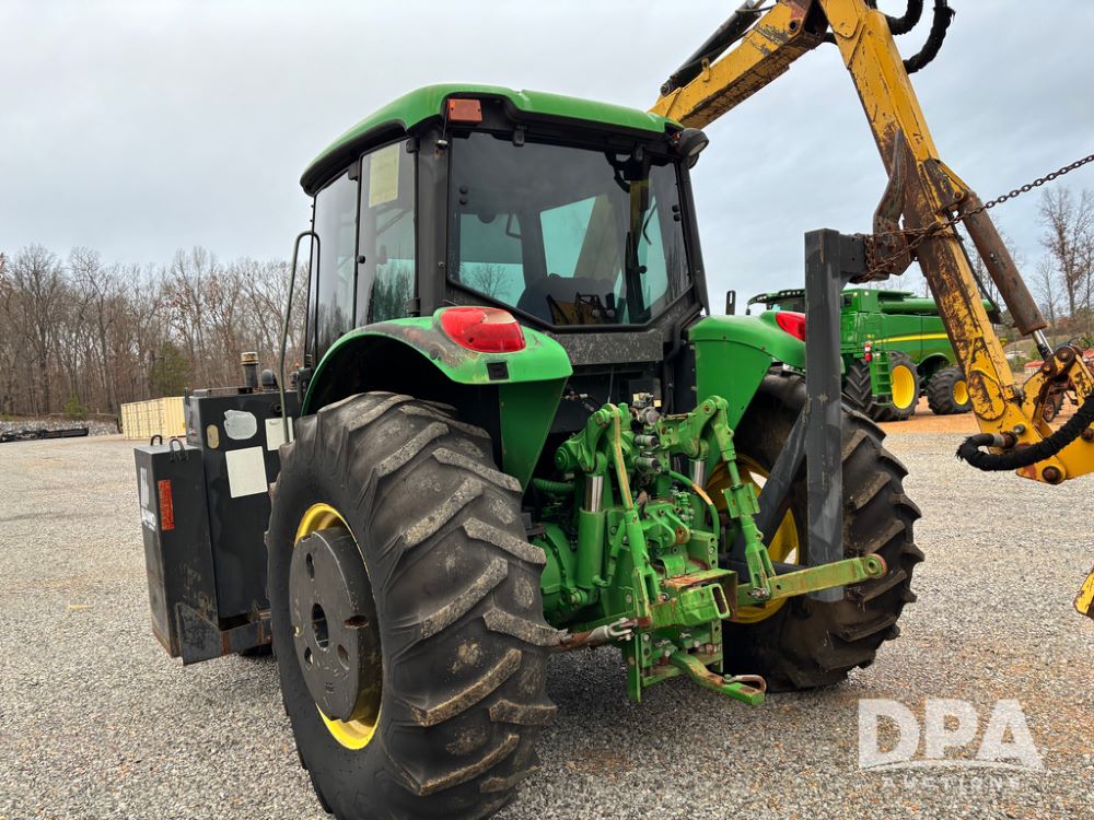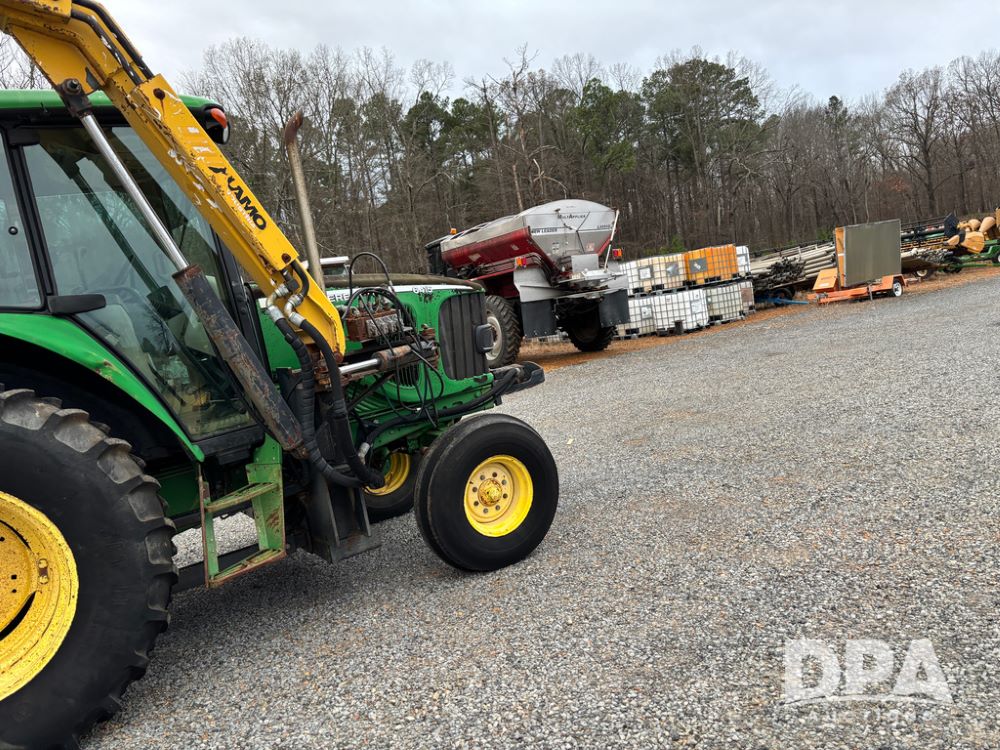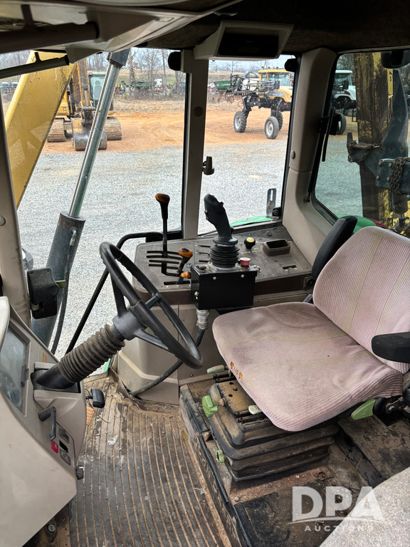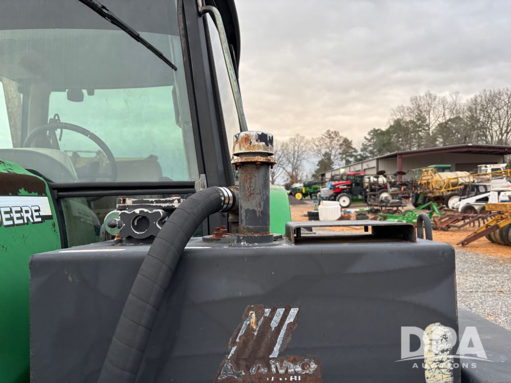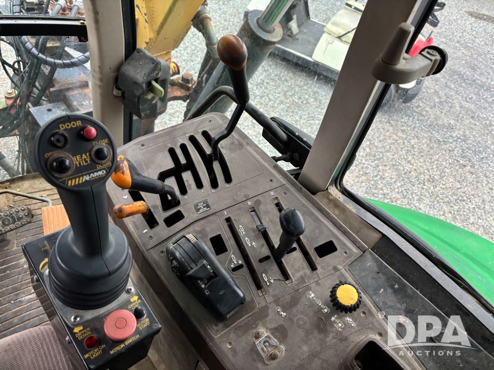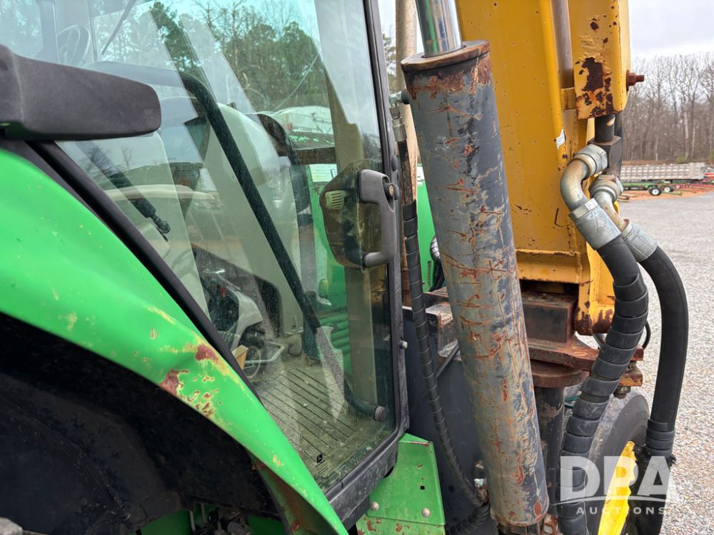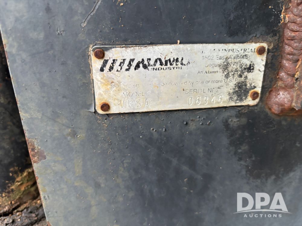 John Deere 6415 Tractor (JY1017), 104hp John Deere diesel engine, 16 speed quad range transmission, Alamo VRSA side arm hydraulic mower, 8' boom, 72'' stick, 66'' mowing deck, joystick cab control, 1,400lb rear weight, single hydraulic remote, 540 PTO, 3 point hitch, dual entry cab, air conditioning, tilt column, 10.00-16 front tires, 18.4-30 rear tires are near new, shows 165.3 hours, not actual. Mower not tested.