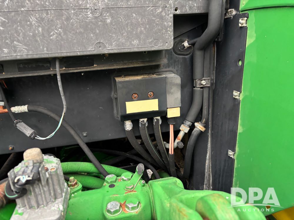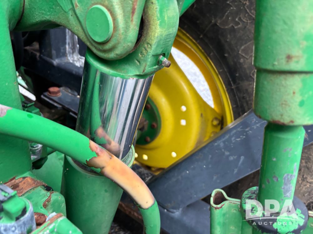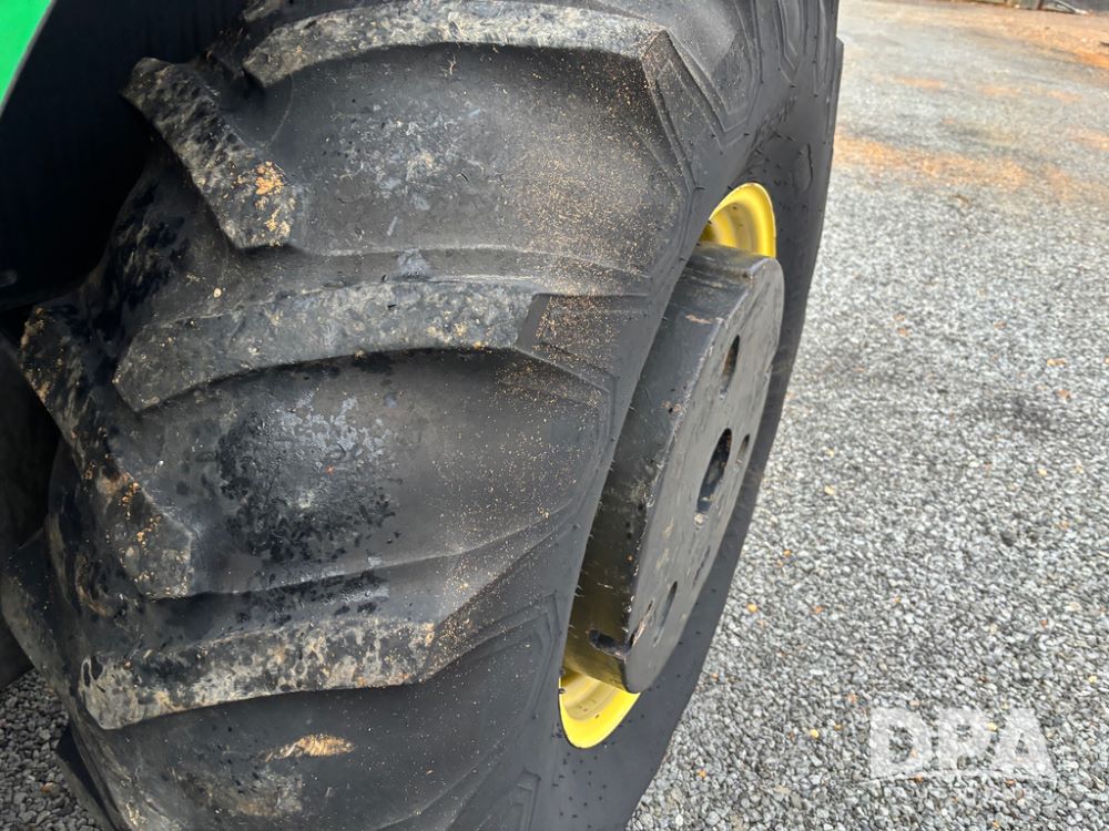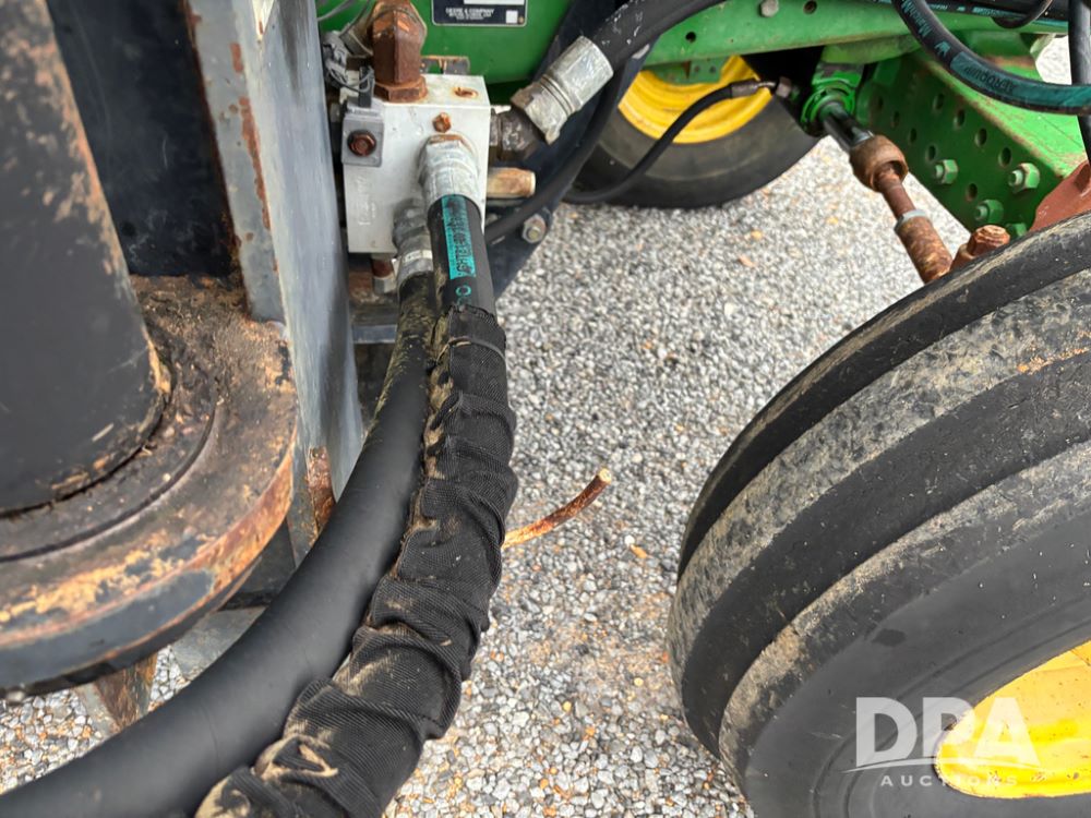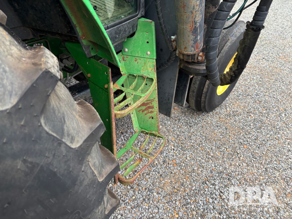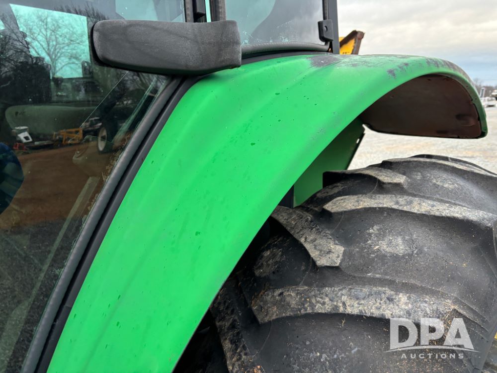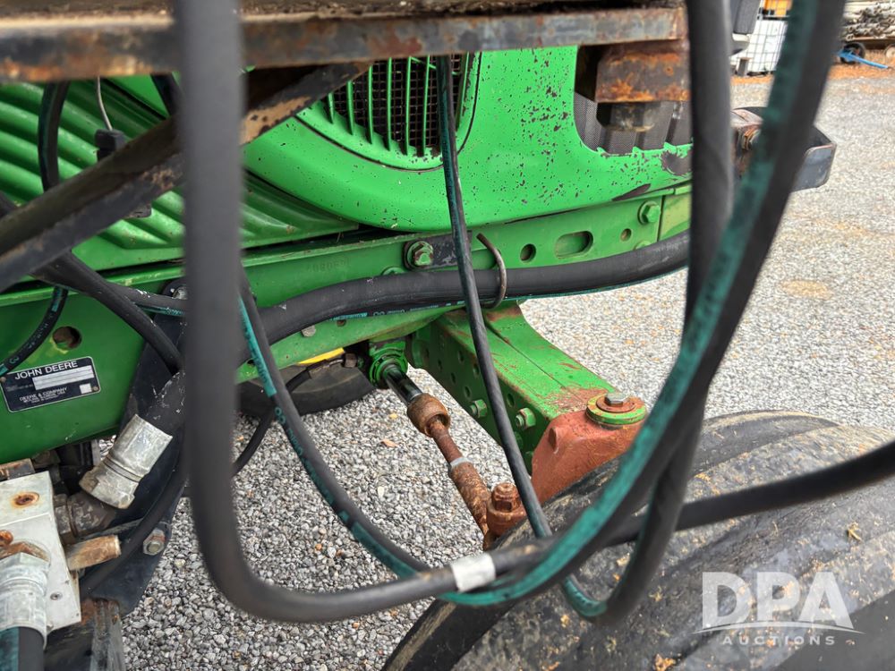 John Deere 6415 Tractor (JY1017), 104hp John Deere diesel engine, 16 speed quad range transmission, Alamo VRSA side arm hydraulic mower, 8' boom, 72'' stick, 66'' mowing deck, joystick cab control, 1,400lb rear weight, single hydraulic remote, 540 PTO, 3 point hitch, dual entry cab, air conditioning, tilt column, 10.00-16 front tires, 18.4-30 rear tires are near new, shows 165.3 hours, not actual. Mower not tested.