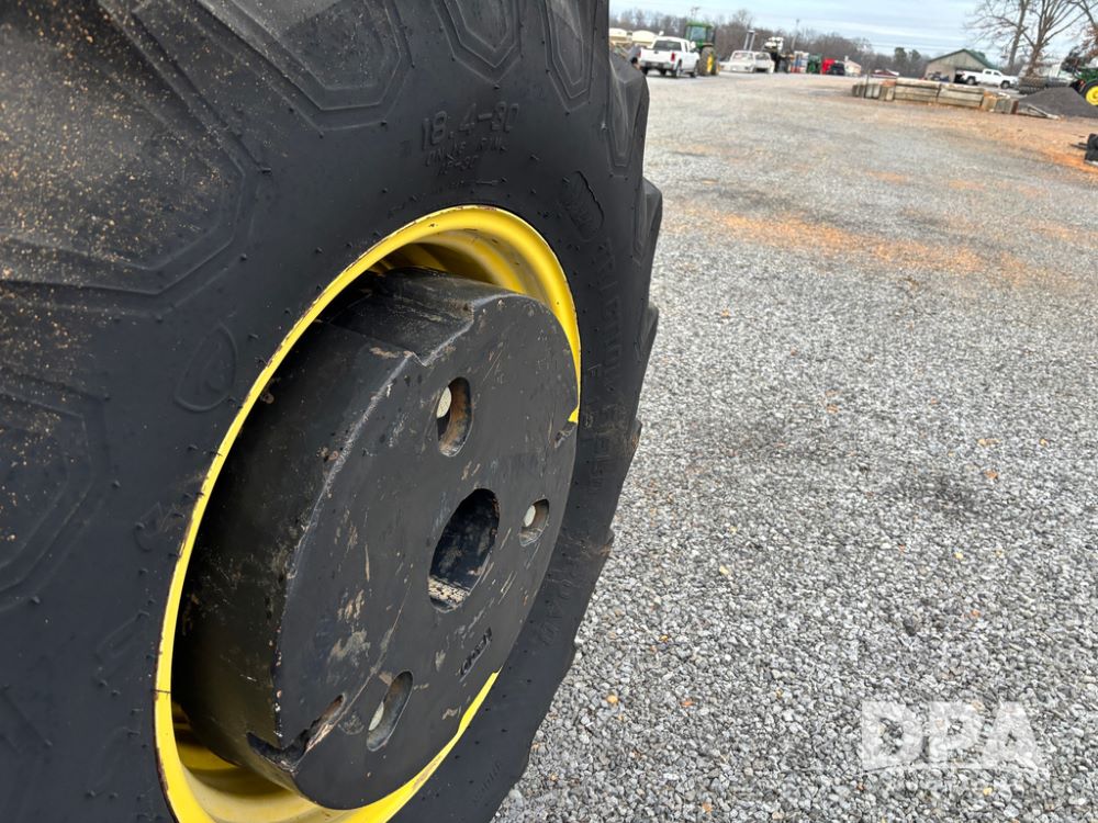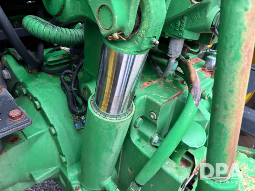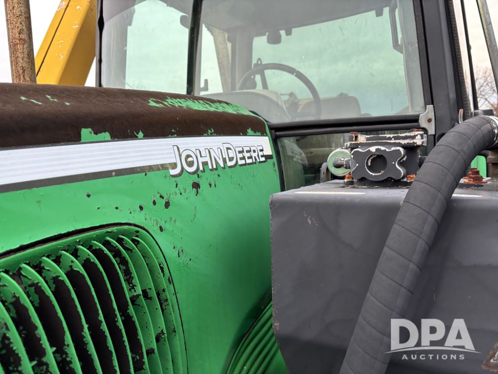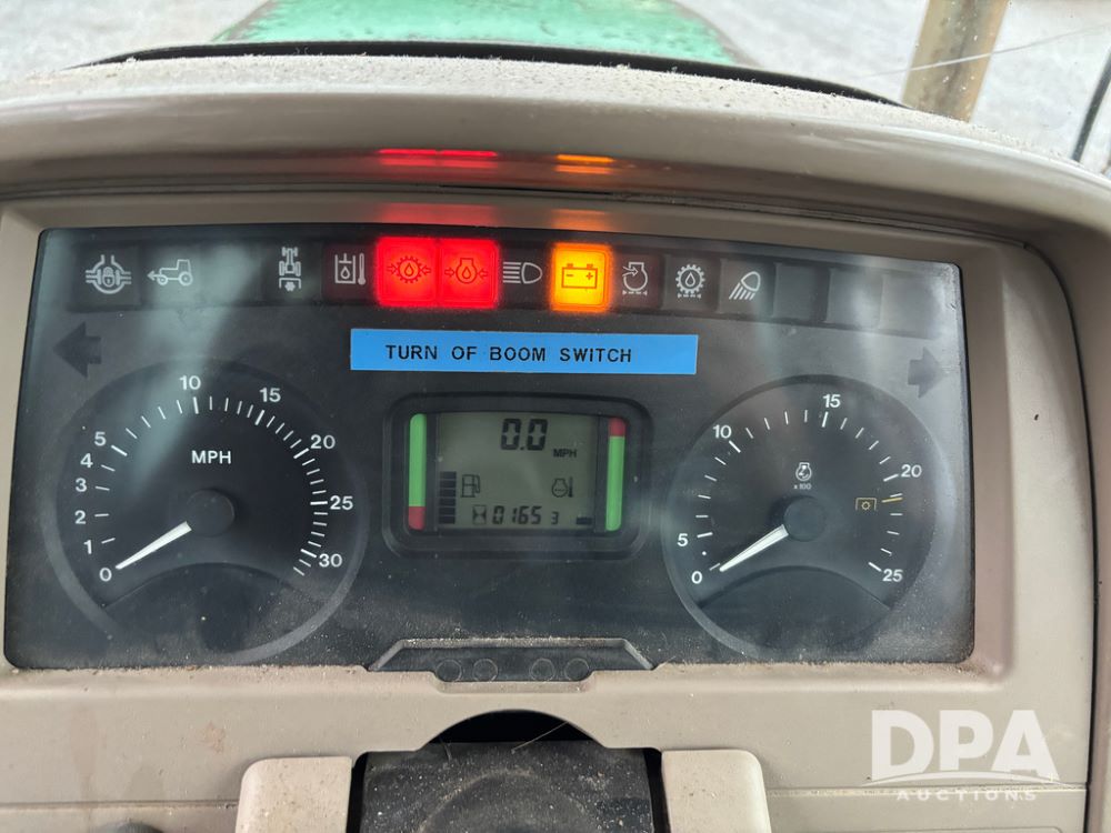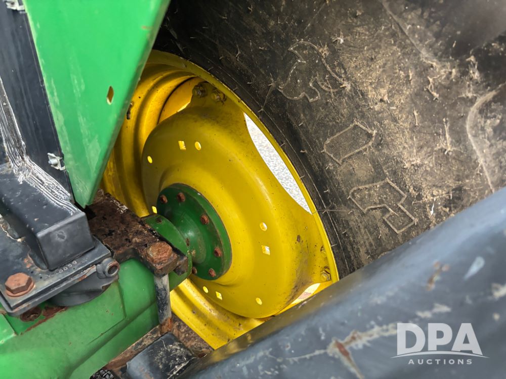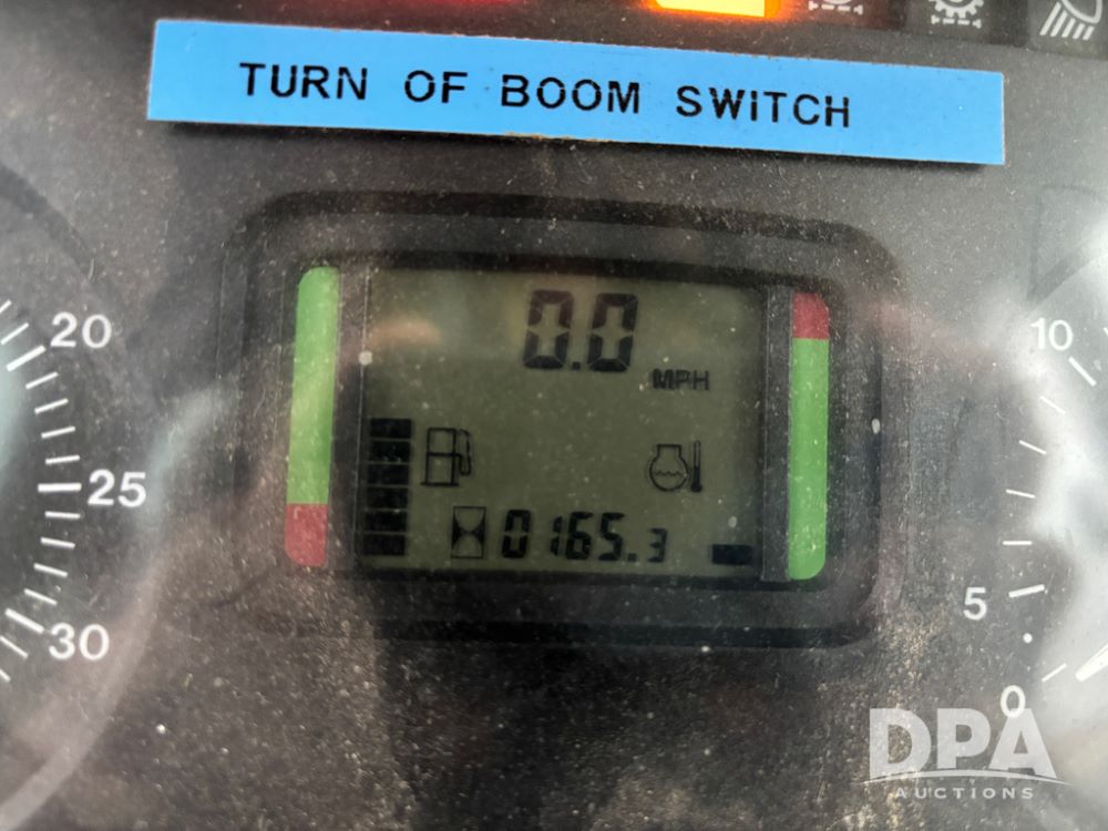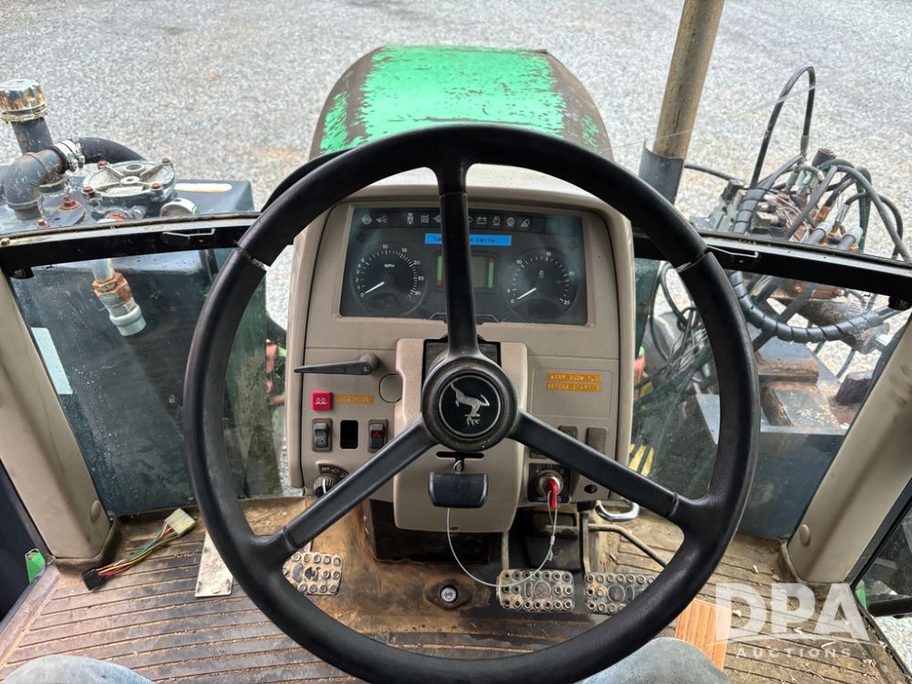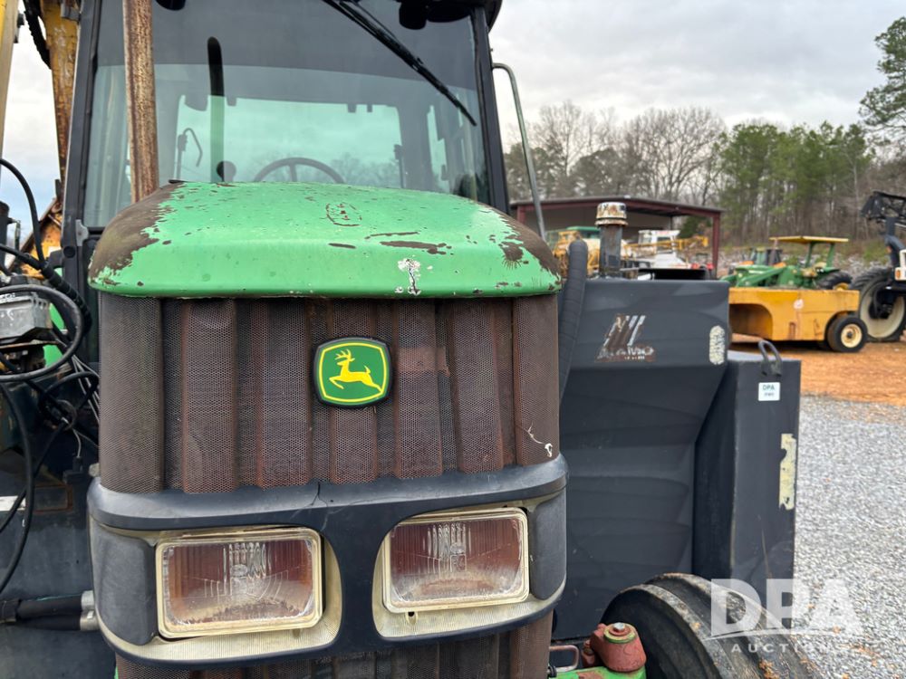 John Deere 6415 Tractor (JY1017), 104hp John Deere diesel engine, 16 speed quad range transmission, Alamo VRSA side arm hydraulic mower, 8' boom, 72'' stick, 66'' mowing deck, joystick cab control, 1,400lb rear weight, single hydraulic remote, 540 PTO, 3 point hitch, dual entry cab, air conditioning, tilt column, 10.00-16 front tires, 18.4-30 rear tires are near new, shows 165.3 hours, not actual. Mower not tested.