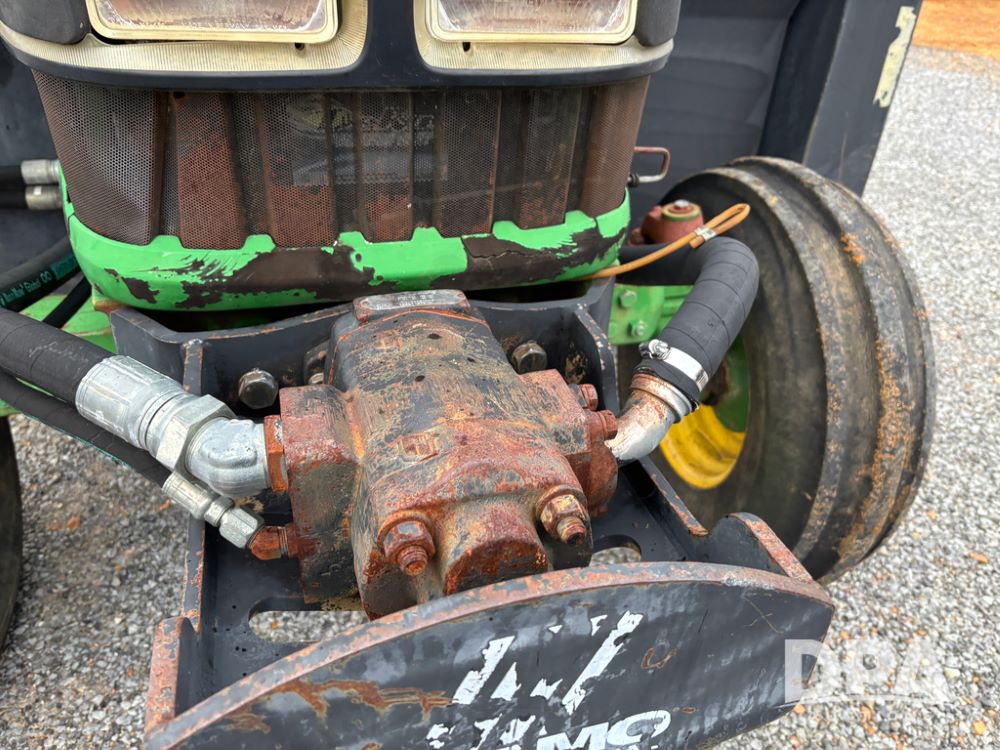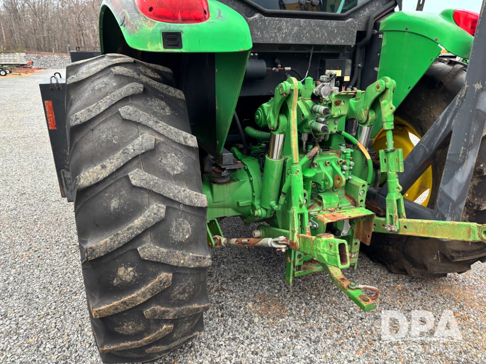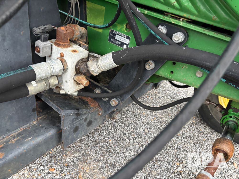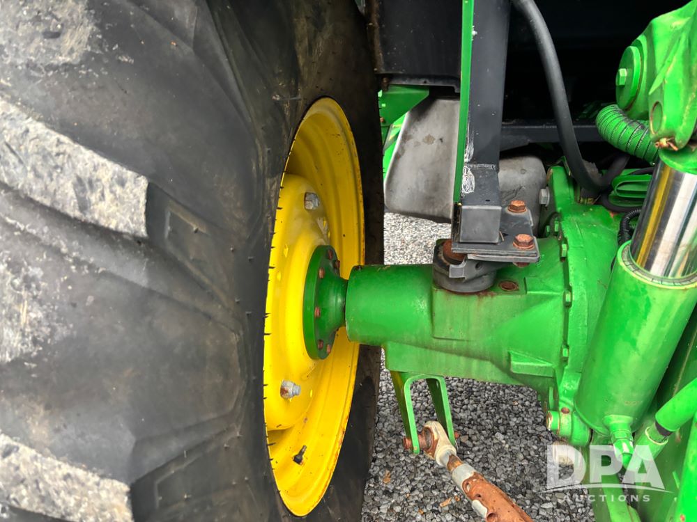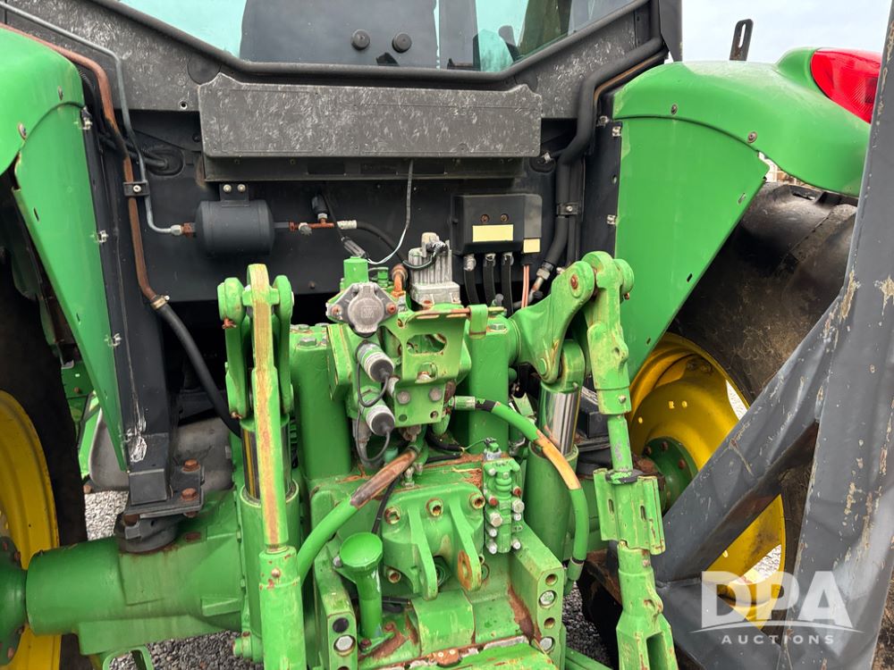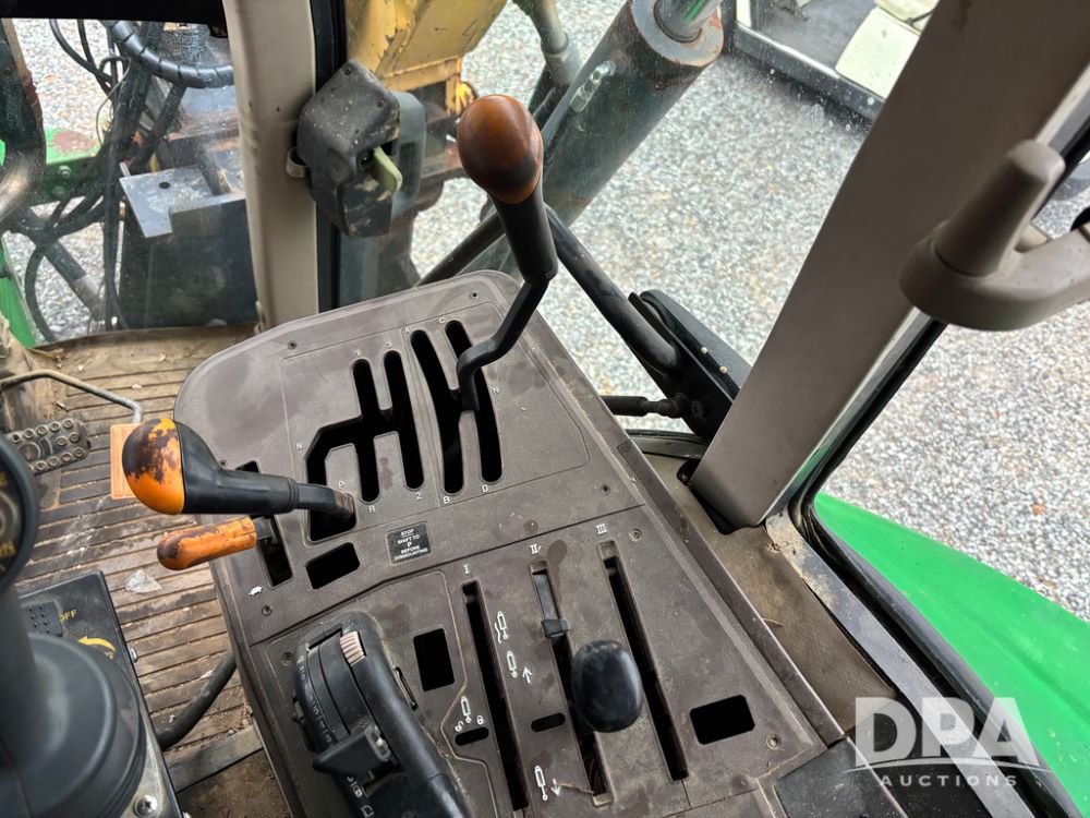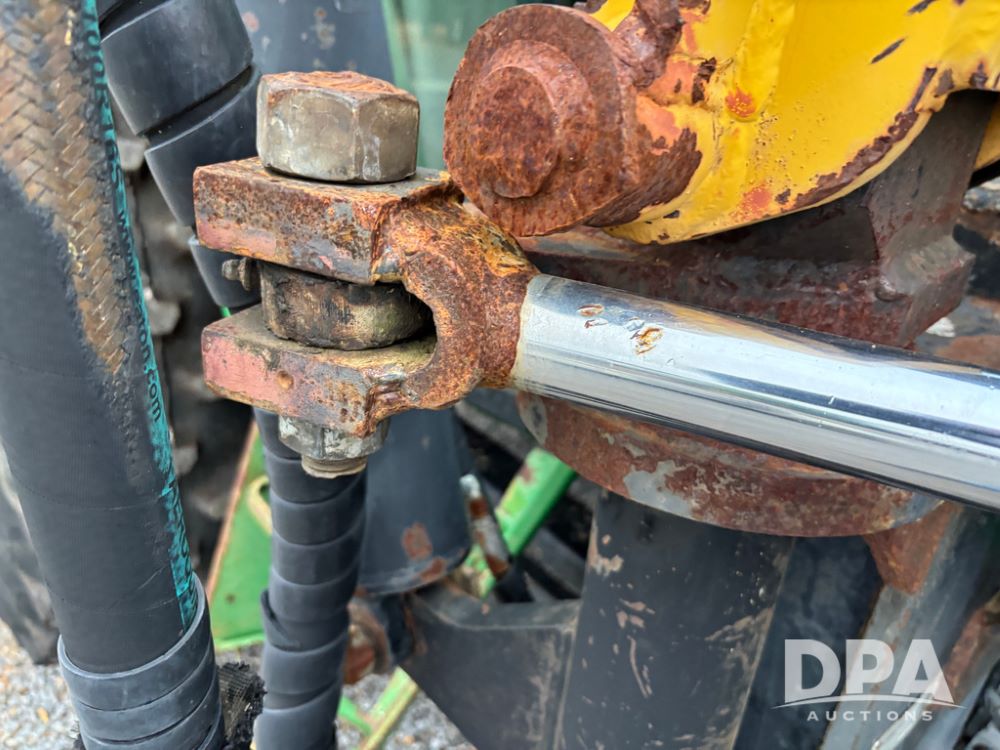 John Deere 6415 Tractor (JY1017), 104hp John Deere diesel engine, 16 speed quad range transmission, Alamo VRSA side arm hydraulic mower, 8' boom, 72'' stick, 66'' mowing deck, joystick cab control, 1,400lb rear weight, single hydraulic remote, 540 PTO, 3 point hitch, dual entry cab, air conditioning, tilt column, 10.00-16 front tires, 18.4-30 rear tires are near new, shows 165.3 hours, not actual. Mower not tested.