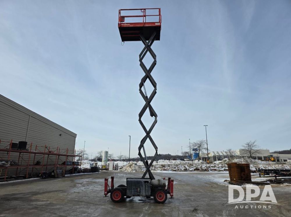 Skyjack 3268RT Scissor Lift (LLD1582), all terrain scissor lift, 38 foot working height, machine length is 8 foot, 1,000 pound capacity, shows 1982 hours.