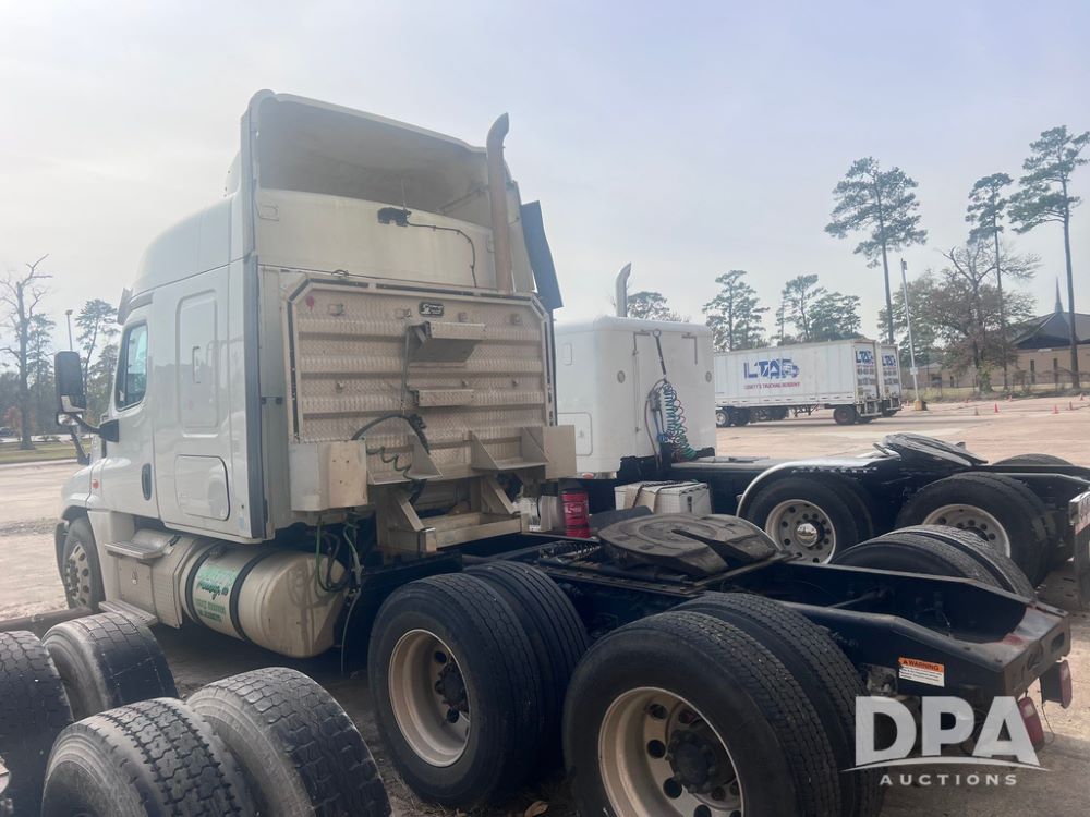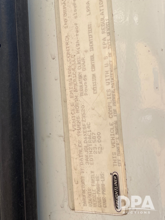 2014 Freightliner Cascadia (LS0526), sleeper cab, 14.8L Inline Detroit diesel 15 engine, automatic transmission, tandem axle, headache rack, air compressor, air conditioning system, coolant reservoir have been replaced, tires 80%, 654986 miles.