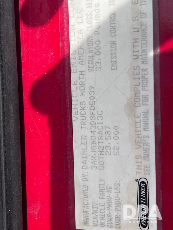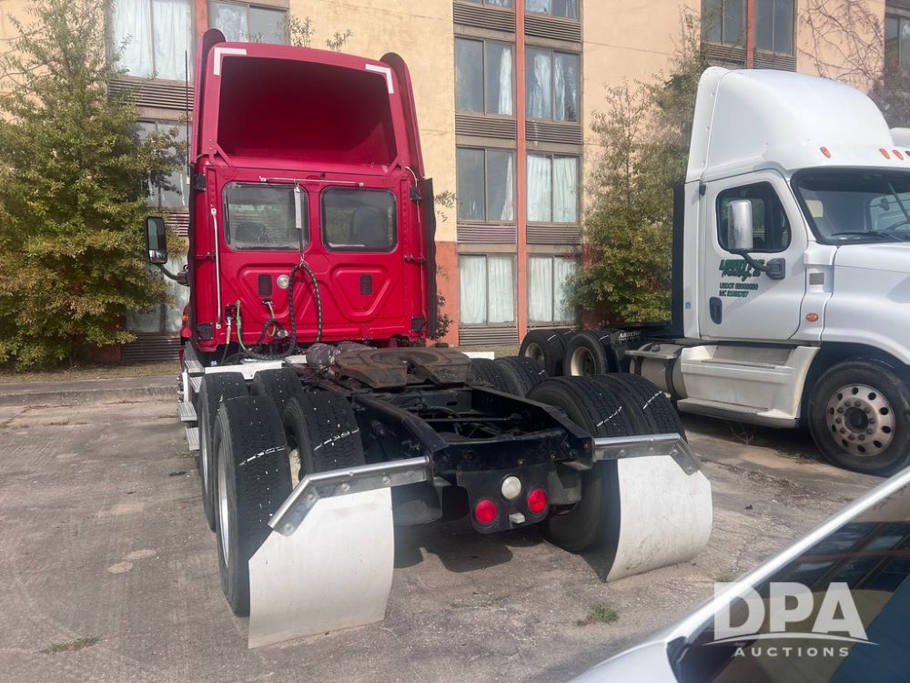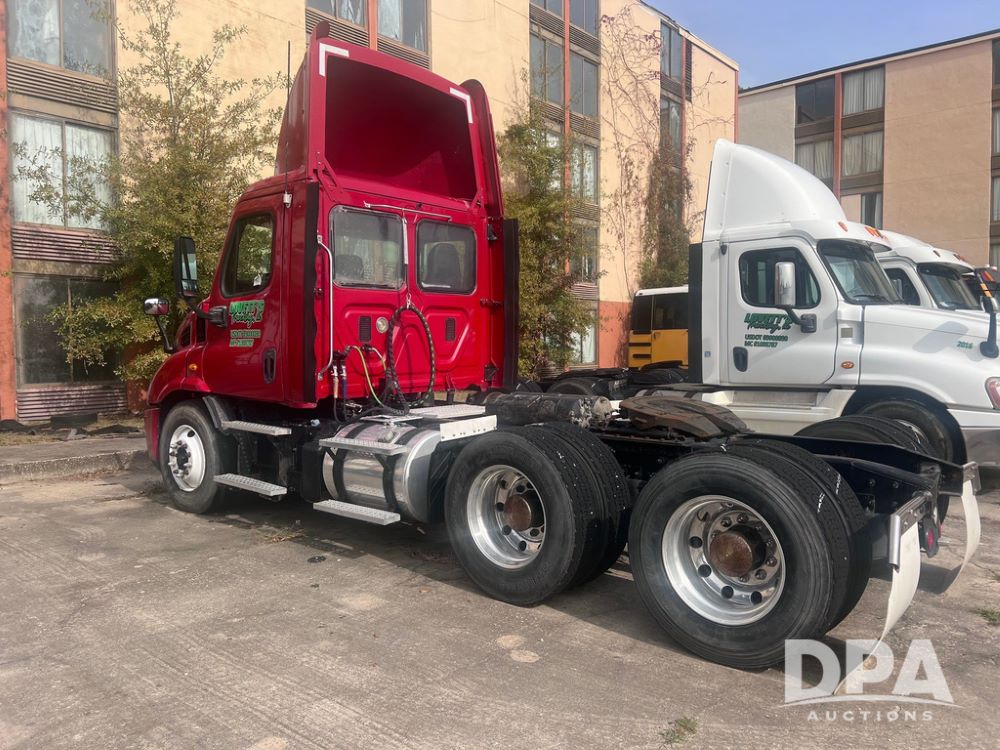 2013 Freightliner Cascadia 113 (LS0527), day cab, Cummins ISX diesel engine, automatic transmission, tandem axle, air conditioning system, coolant and coolant reservoir have been replaced, xyz shifter sensor needs replacing to drive, and there is a hole in one air tank, 80% tire tread, 687,243 miles.