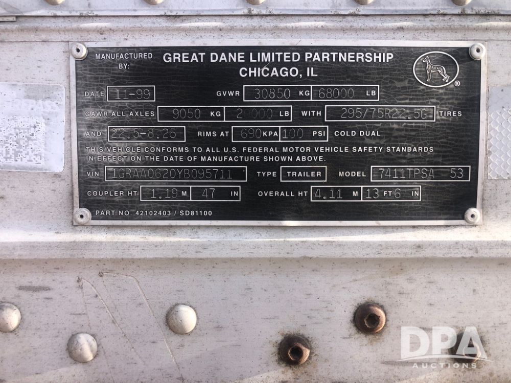 2000 Great Dane Dry Van Trailer (NP6385), 2000 Great Dane 53' dry van trailer, Model 7411TPSA 53, tandem axle, rear cargo doors, overall height 13 feet 6 inches, GVWR 68,000 pounds.