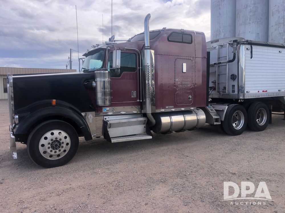 1999 Kenworth W900 Truck (NP6384), Cat E Model diesel engine (tuned to 600HP), 18 speed transmission, heat, Am/Fm radio, sleeper, tandem axle, air ride suspension, 5th wheel plate, 3.53 rear ends, aluminum wheels, dual fuel tanks, dual exhaust, shows 290,058 miles (miles will increase as truck is being used).