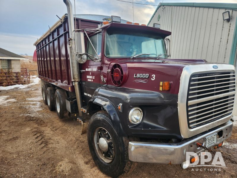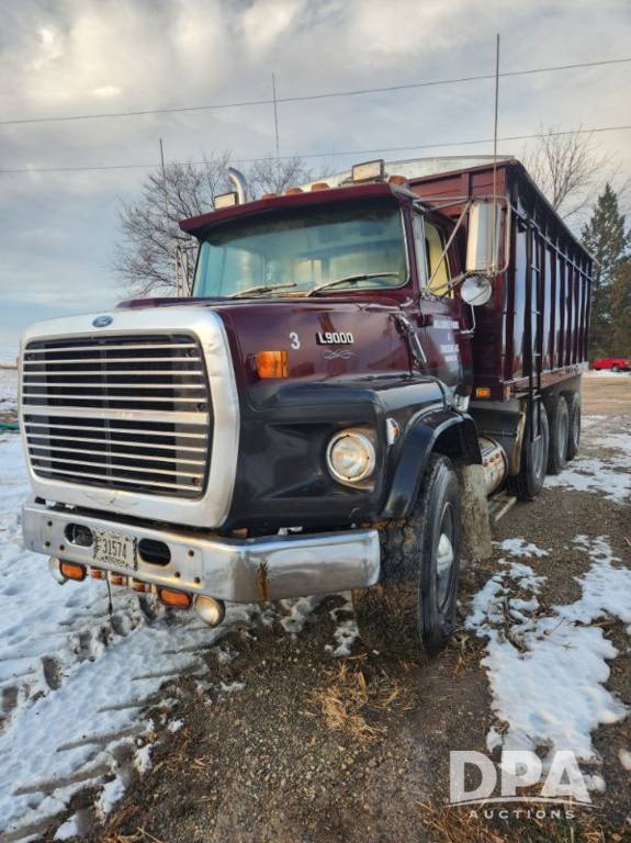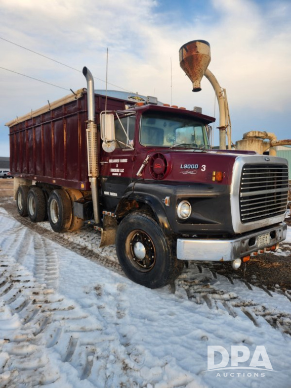1987 Ford L9000 (LT1505), Big Cam Cummins, 13 speed transmission, spring ride suspension, 650 bushel, shows 418,567 miles.
