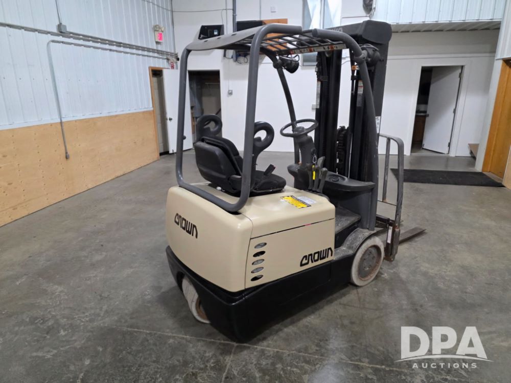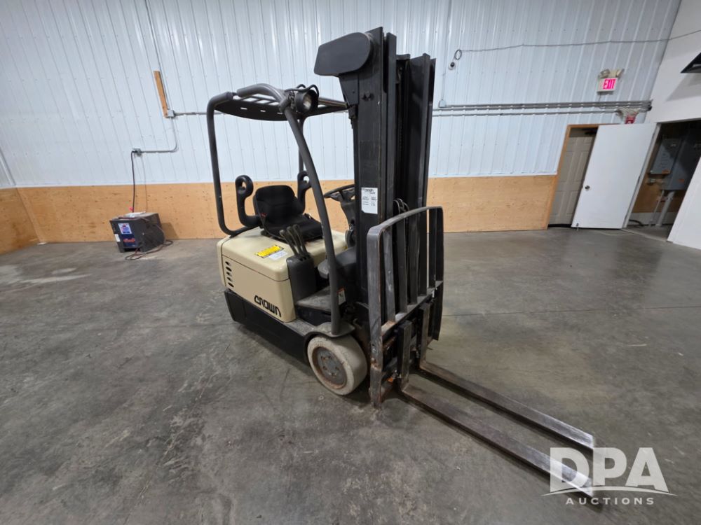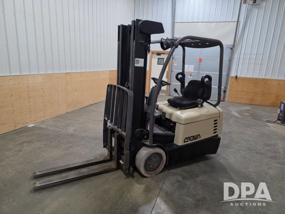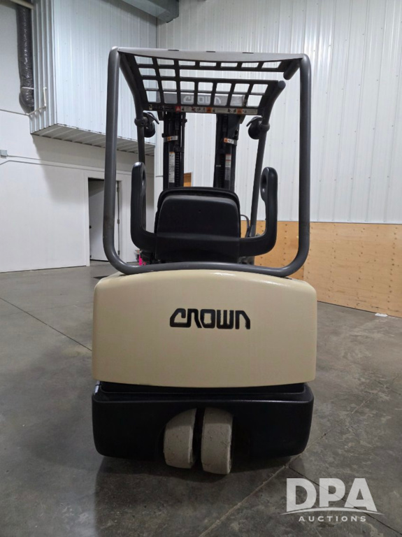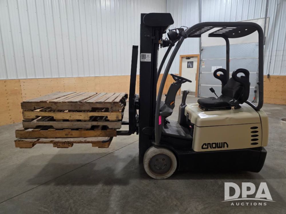 Crown SC4020-30 Forklift (JM729), 36V electric forklift, 3,000-3,500lb. capacity, 4.85ft. turning radius, 15.8ft. max height lift, shows 3,868 hours.