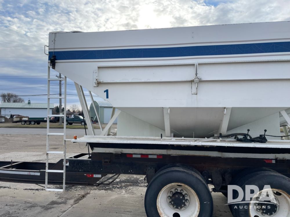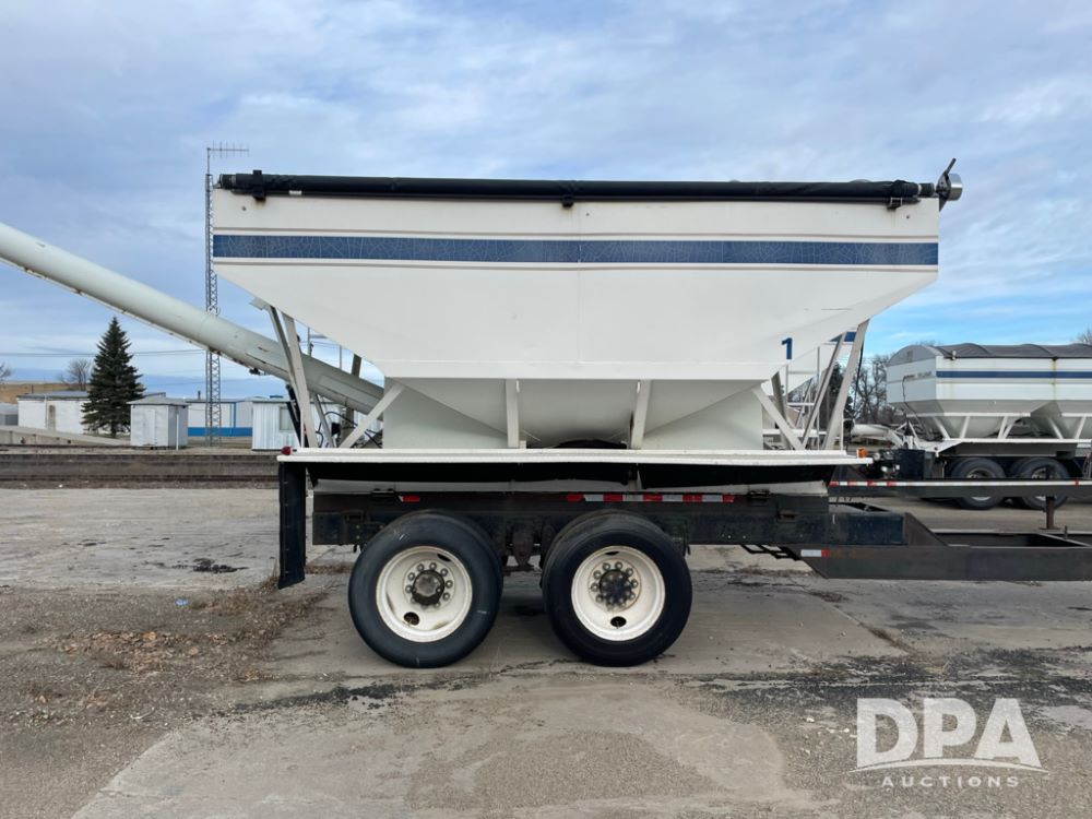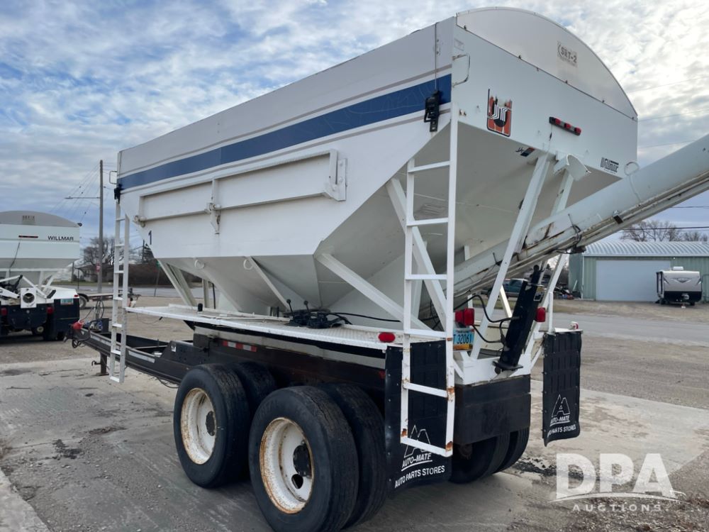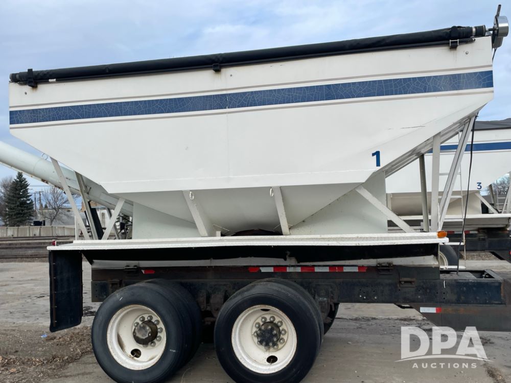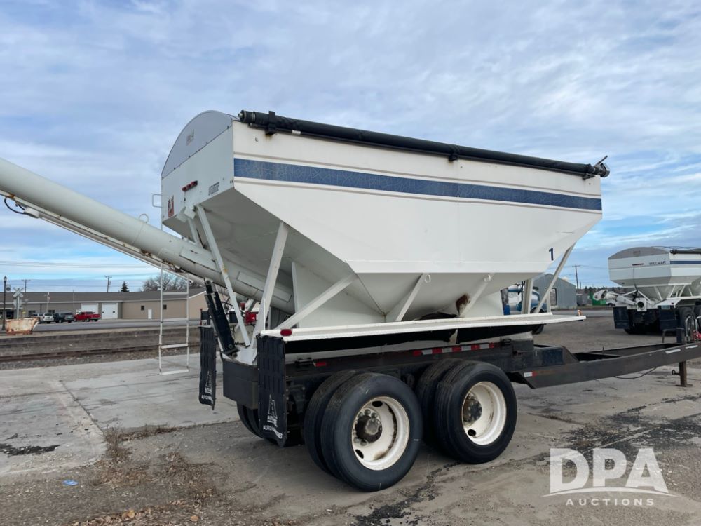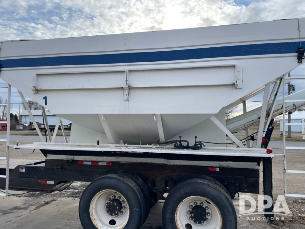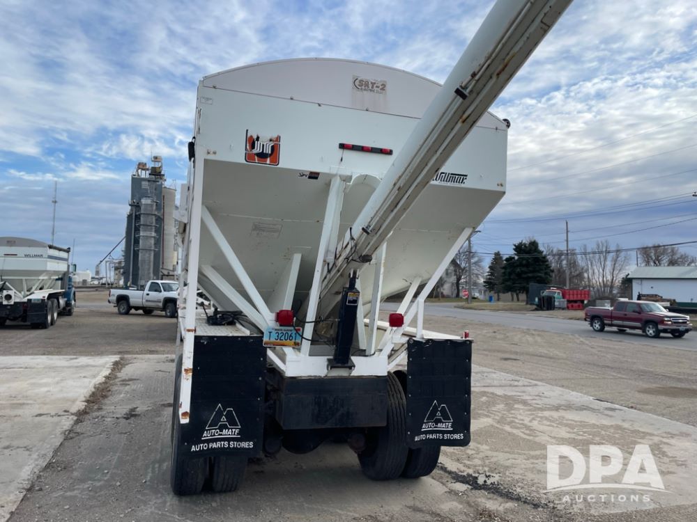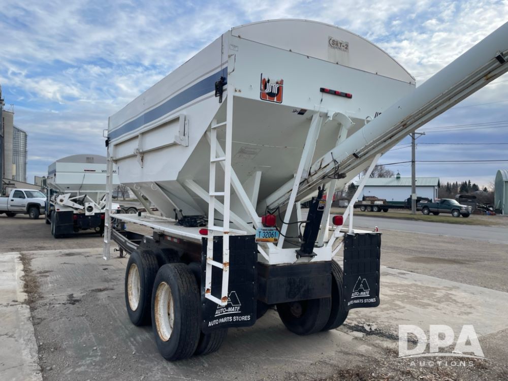 2000 Pup Grain Trailer (LLD1593, Unit 1), Willmar 16 ton tender box, electric roll tarp, rear auger, air brakes, truck powered hydraulic system, 11R24.5 tires, steel rims.