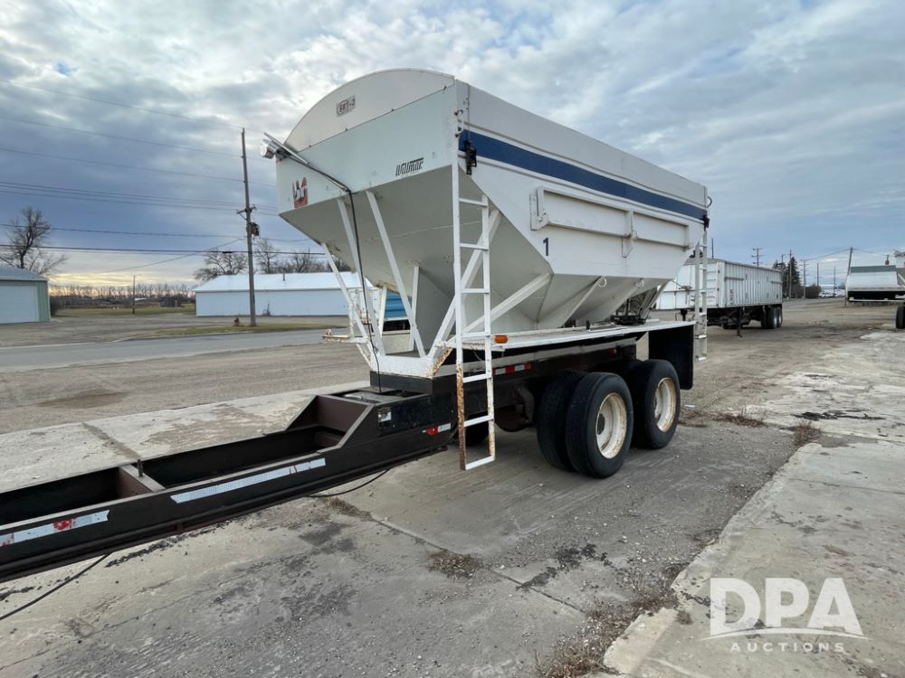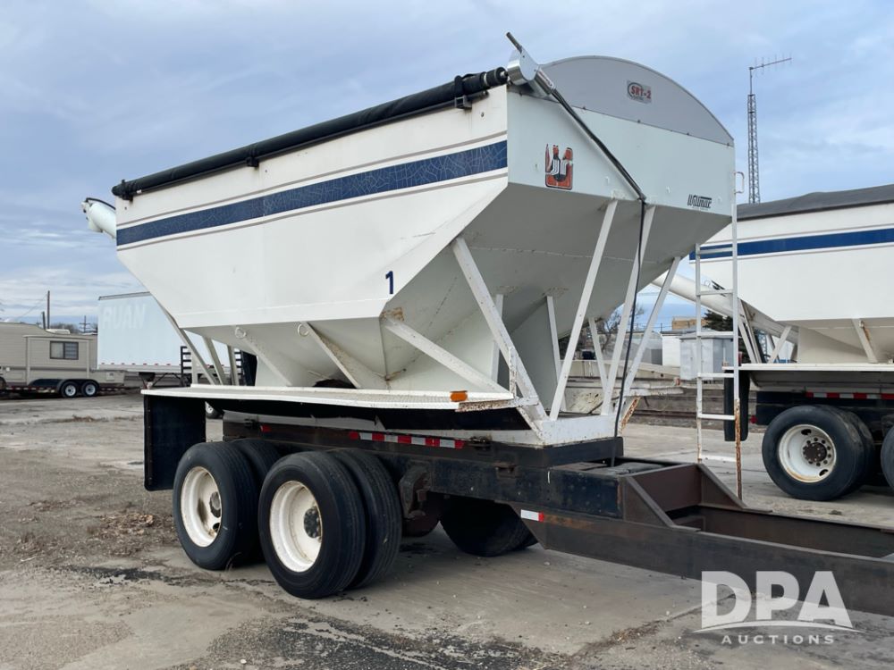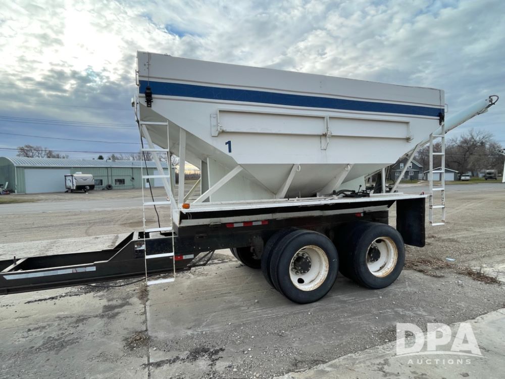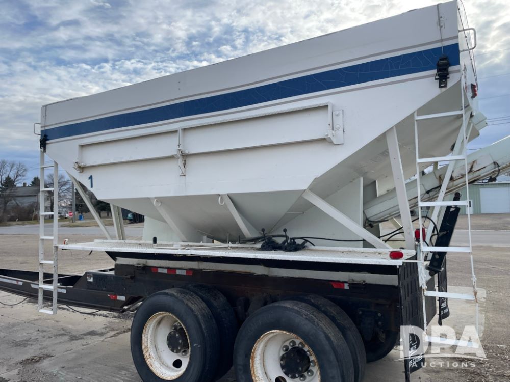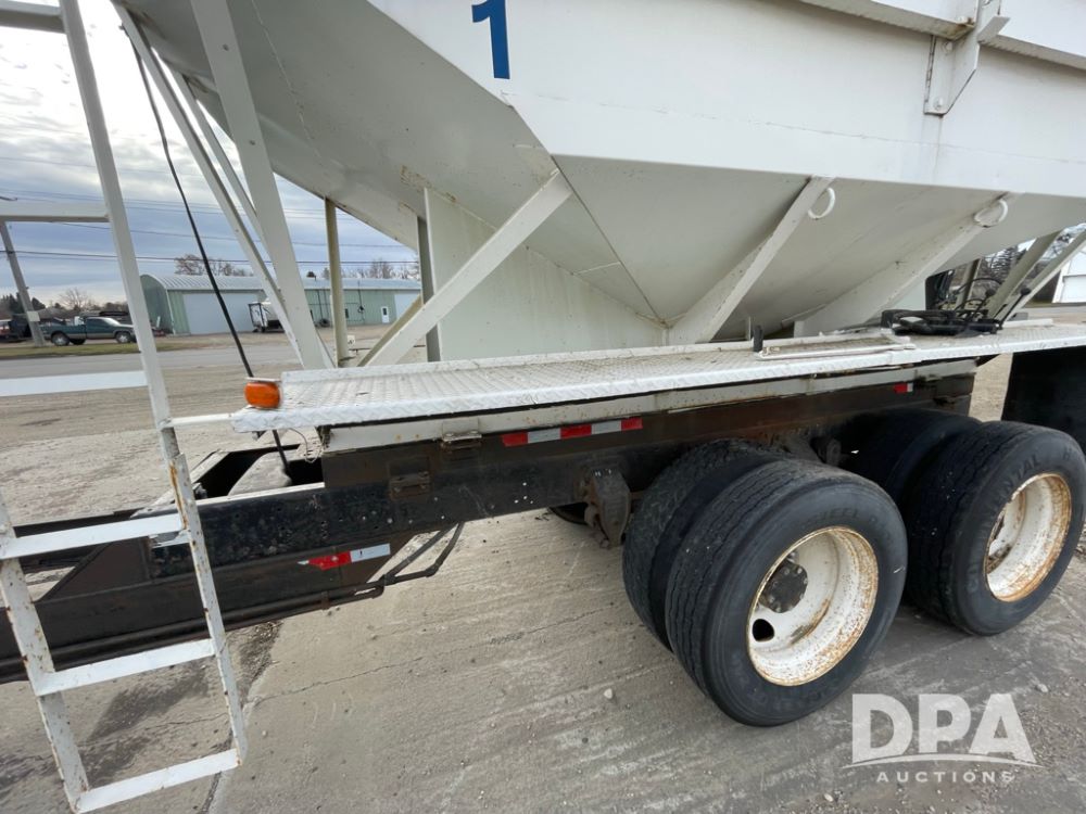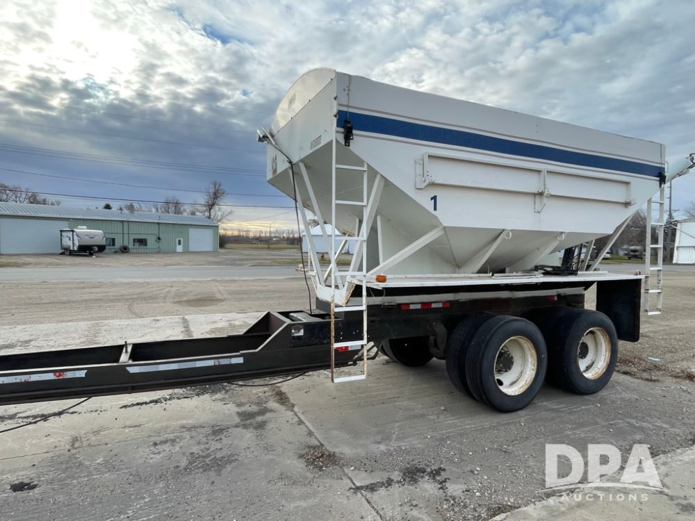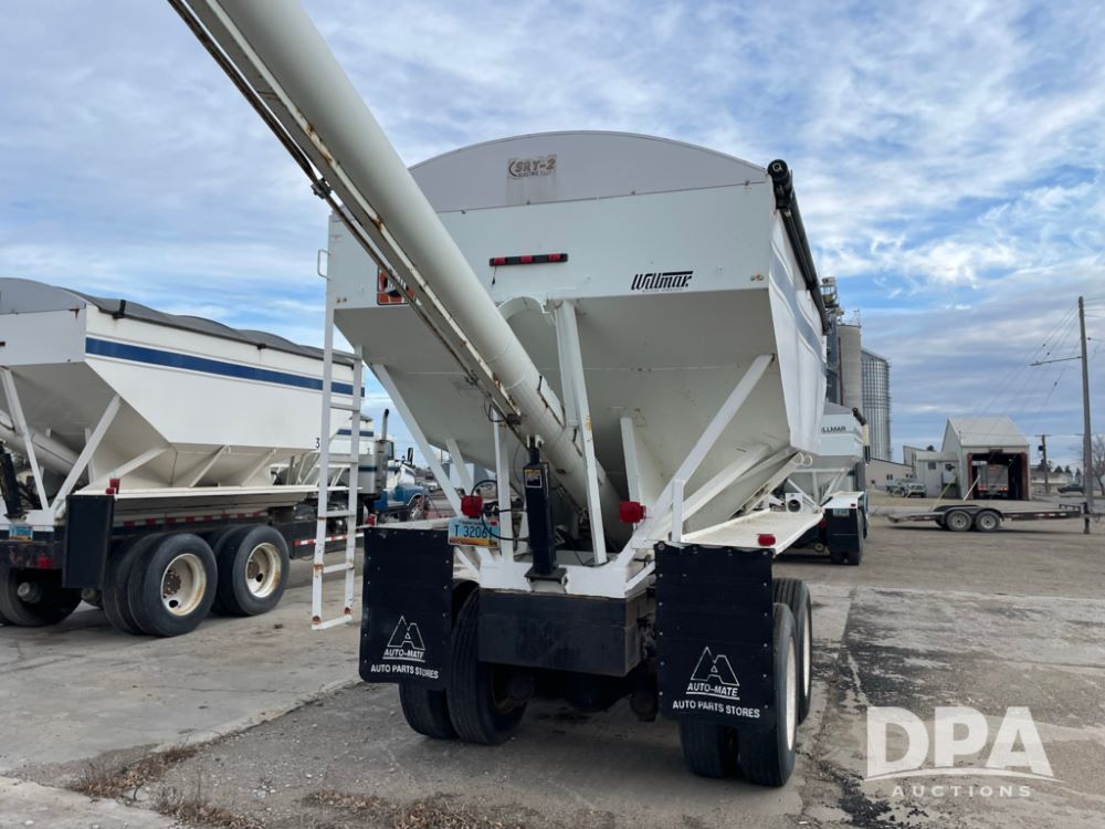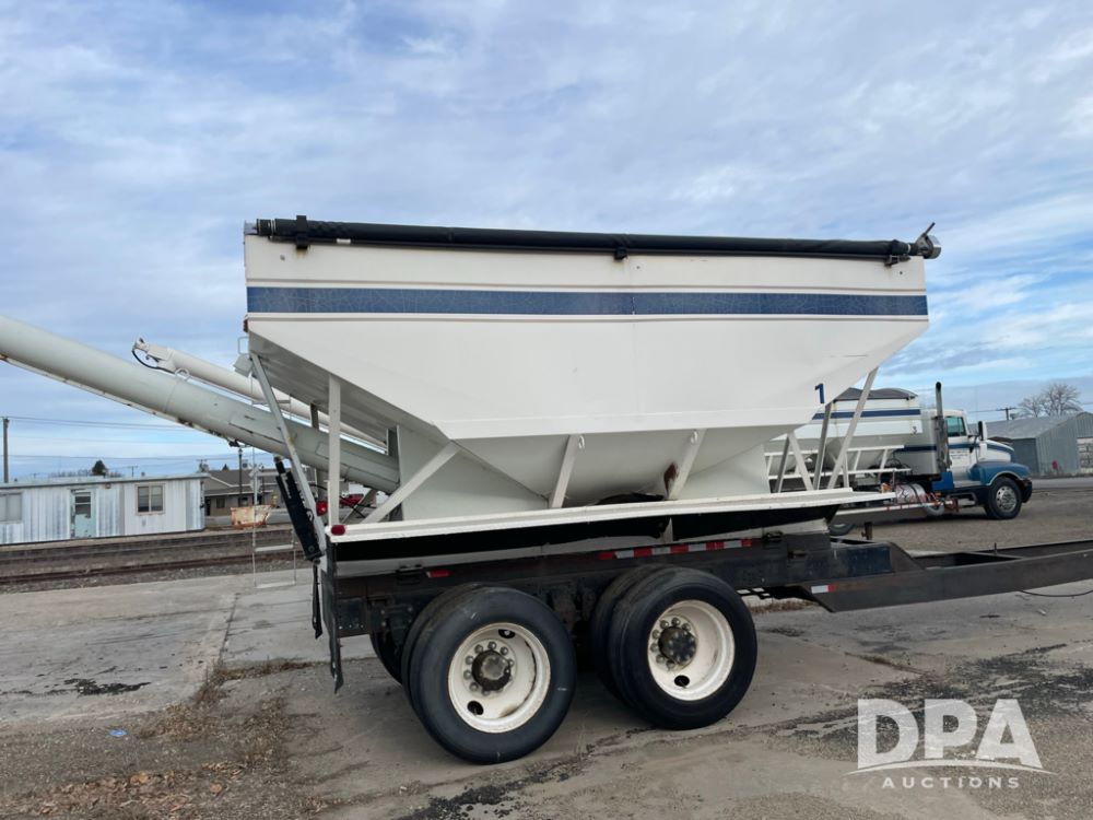 2000 Pup Grain Trailer (LLD1593, Unit 1), Willmar 16 ton tender box, electric roll tarp, rear auger, air brakes, truck powered hydraulic system, 11R24.5 tires, steel rims.
