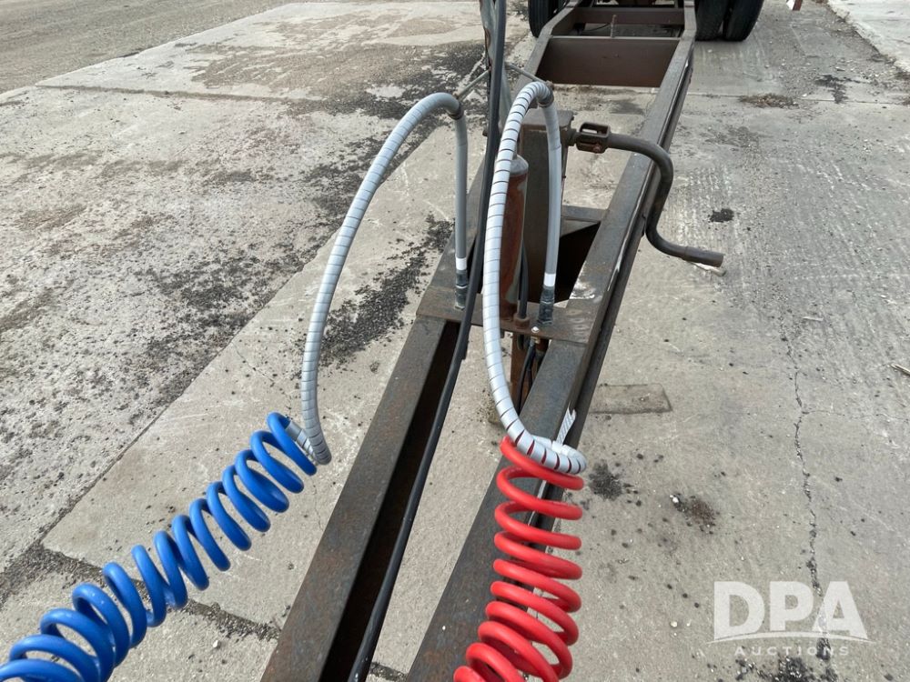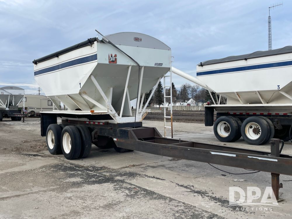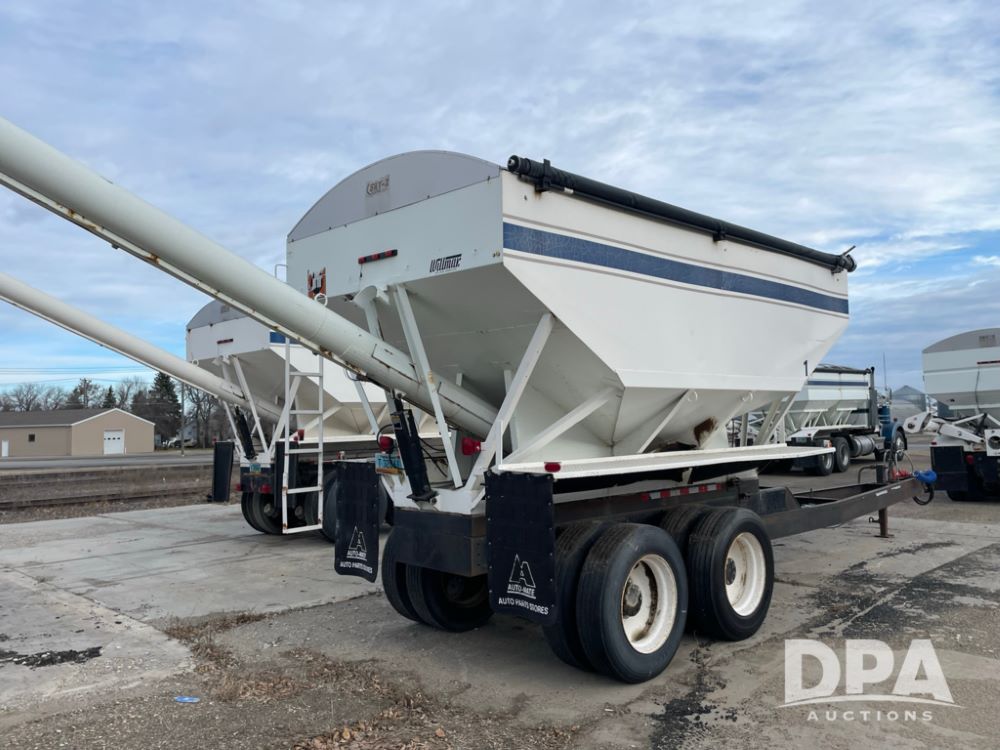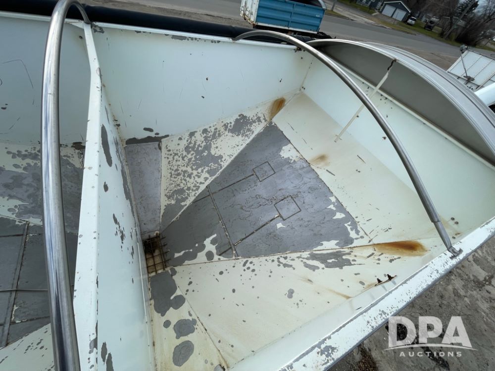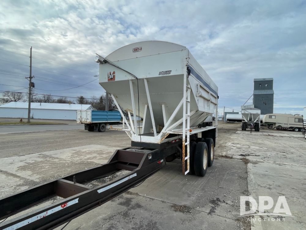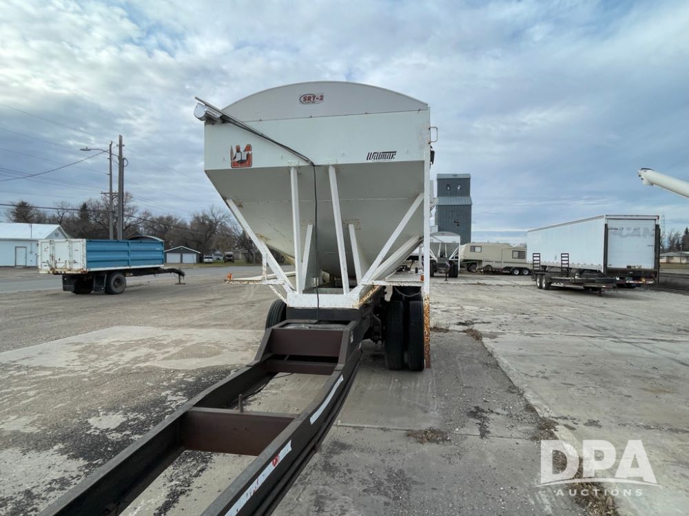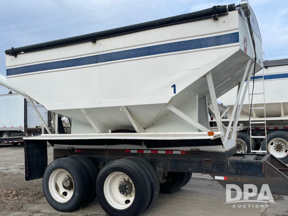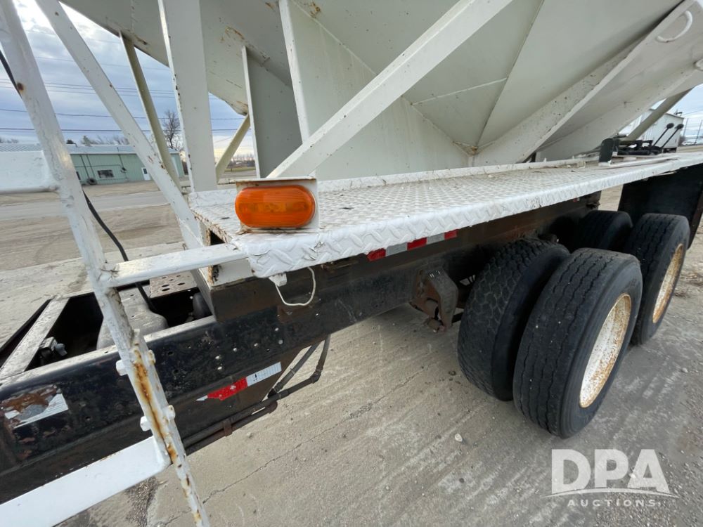 2000 Pup Grain Trailer (LLD1593, Unit 1), Willmar 16 ton tender box, electric roll tarp, rear auger, air brakes, truck powered hydraulic system, 11R24.5 tires, steel rims.