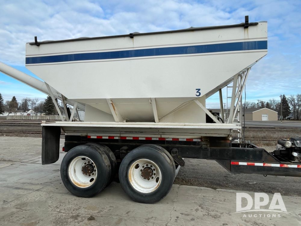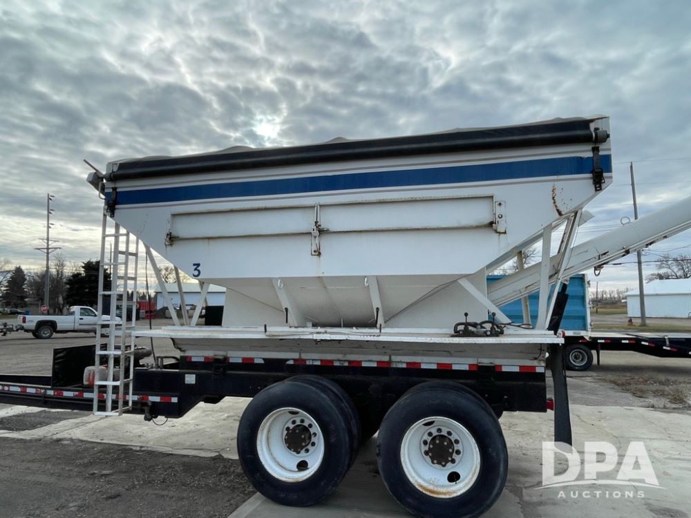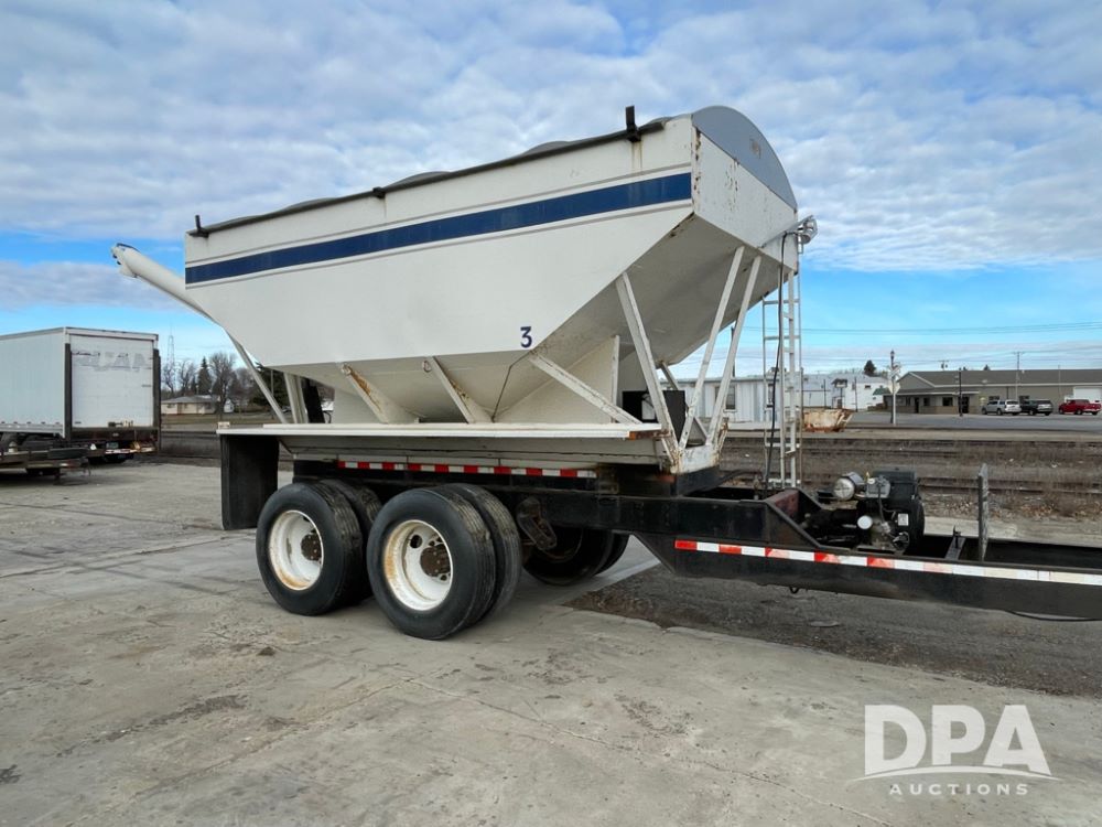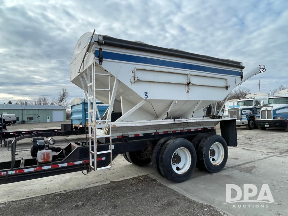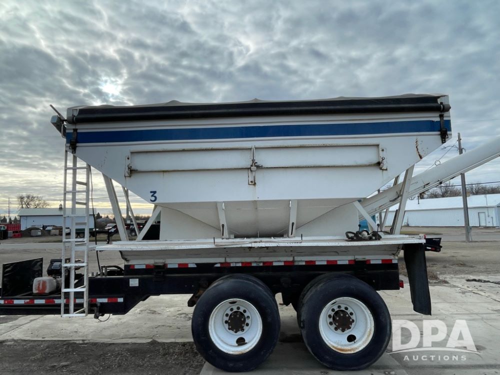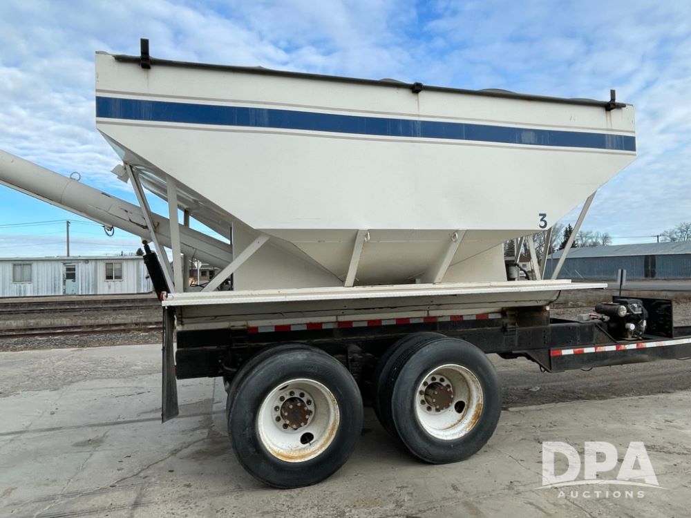 1998 Pup Grain Trailer (LLD1595, Unit 3), Willmar 16 ton tender box, electric roll tarp, rear auger, air brakes, Kohler powered hydraulic system, 11R24.5 tires, steel rims.