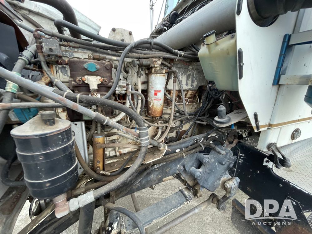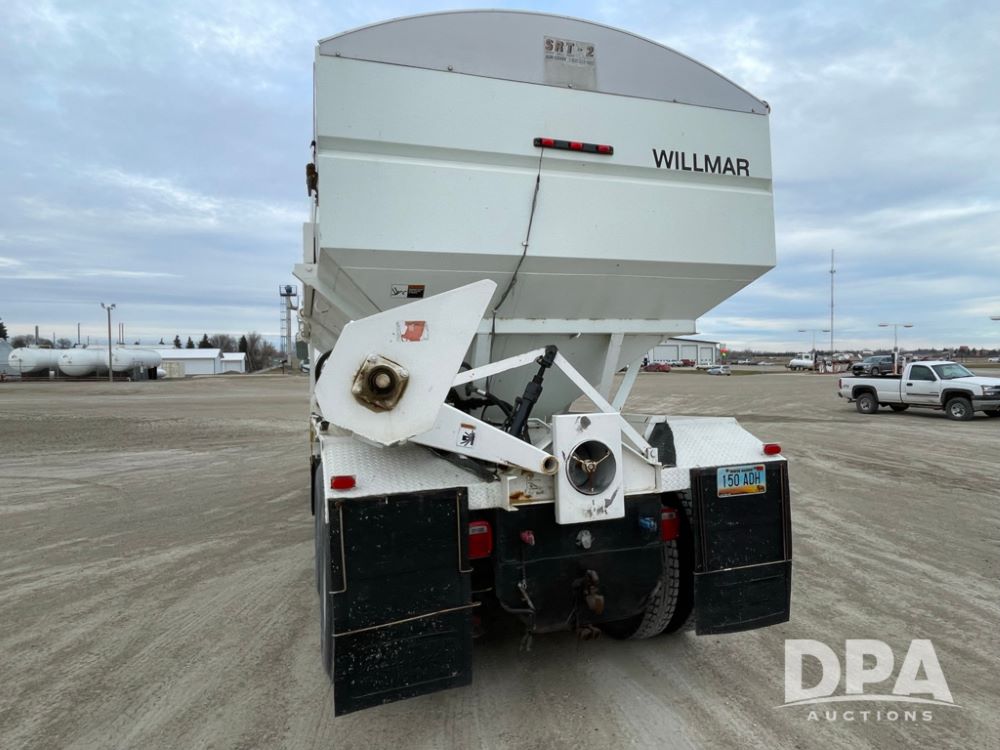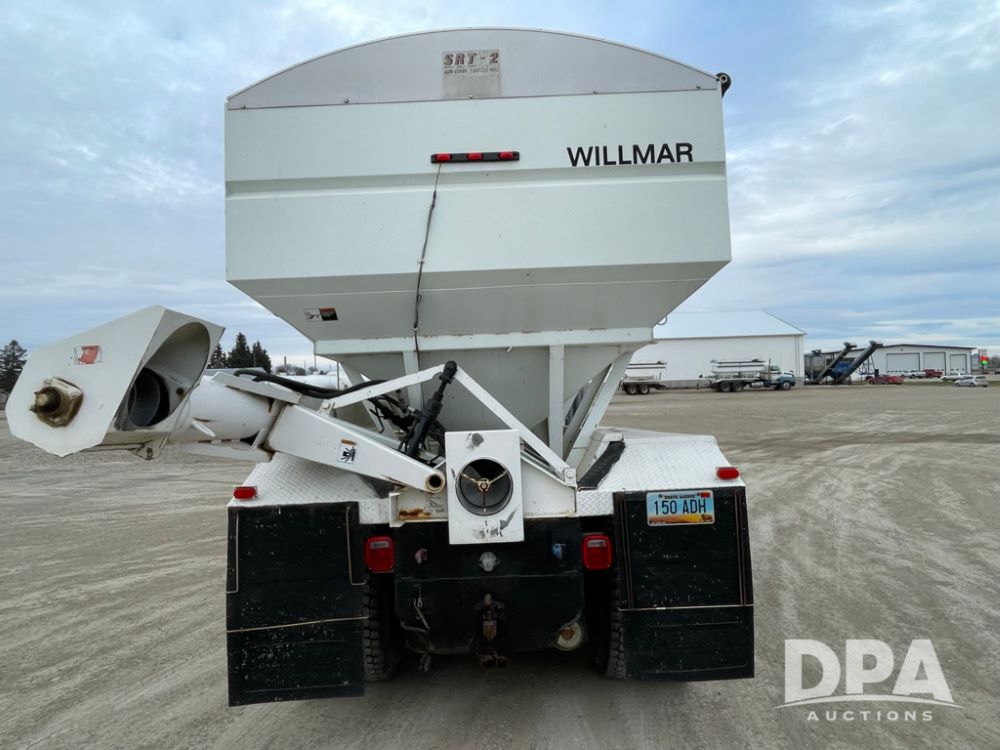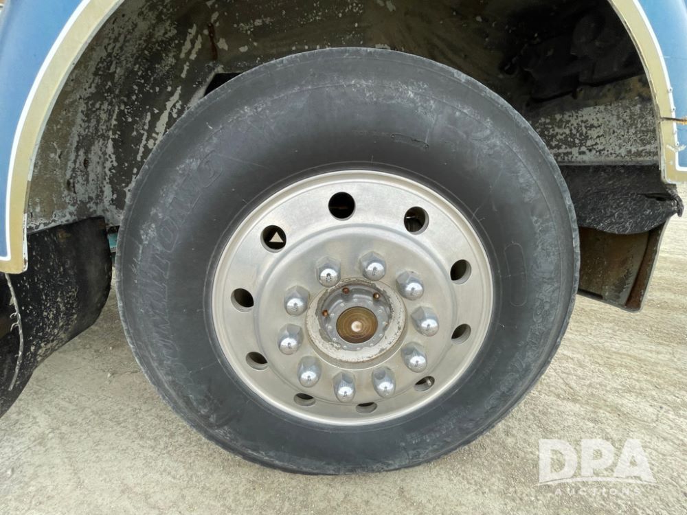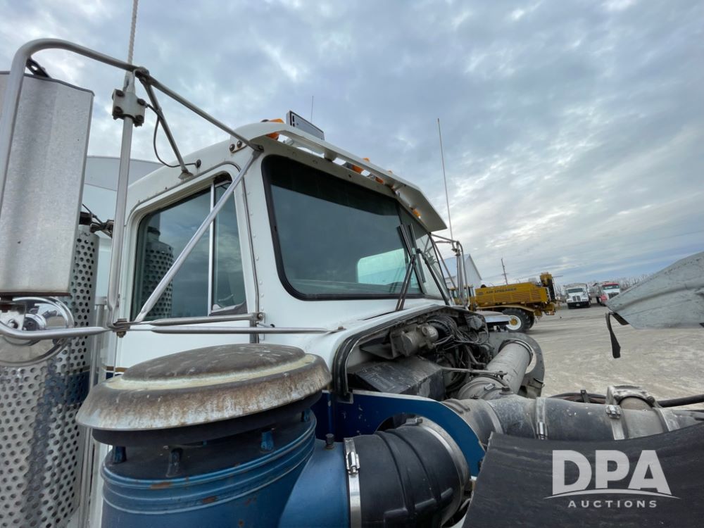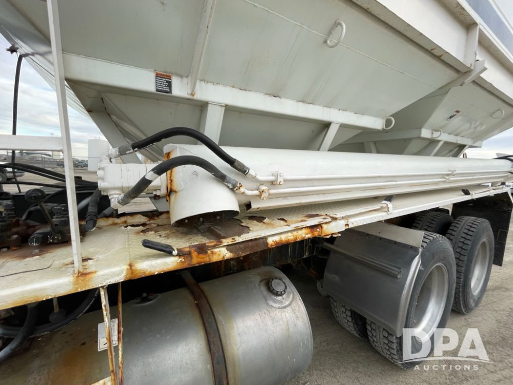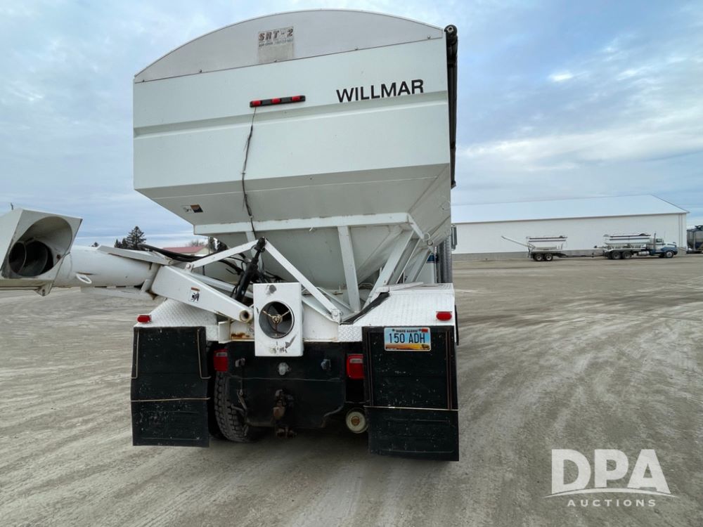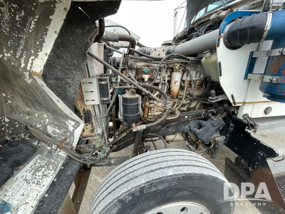 1985 Kenworth W900 Dry Tender Truck (LLD1597, Unit 1), Caterpillar diesel engine, Eaton Fuller 9 speed transmission, AM/FM radio, air ride suspension, tandem axle, dual fuel tanks, Willmar 16 ton stainless steel dry tender box, side discharge auger, all hydraulic, electric roll tarp, 11/24.5 tires, aluminum and steel rims, shows 4,759 miles (truck has turned over on mile meter).