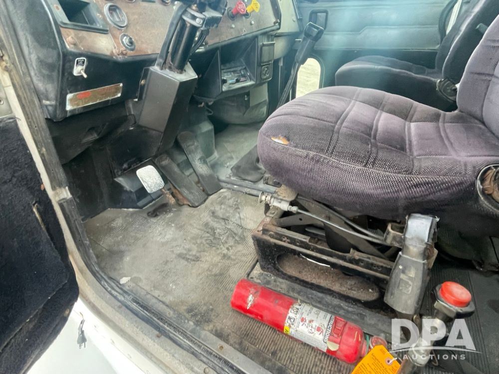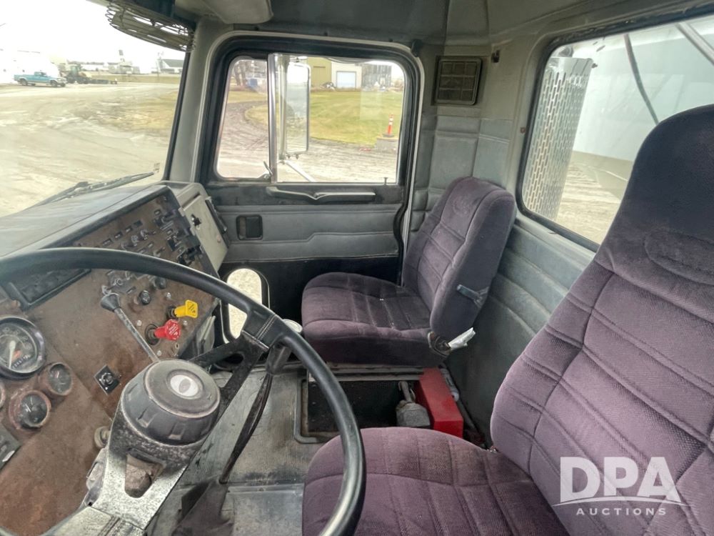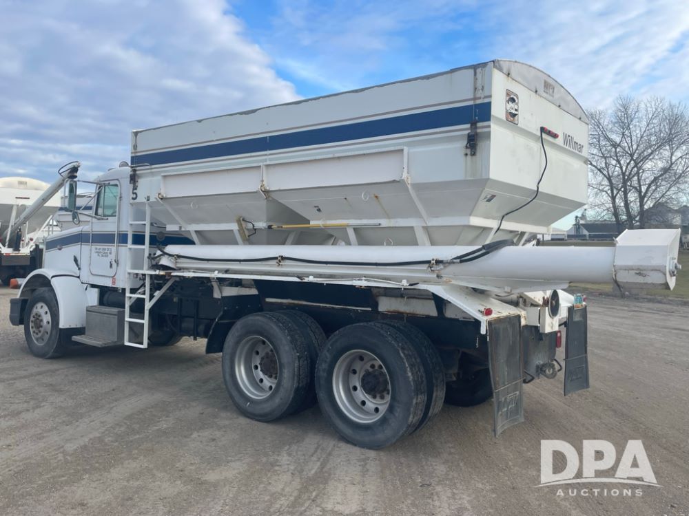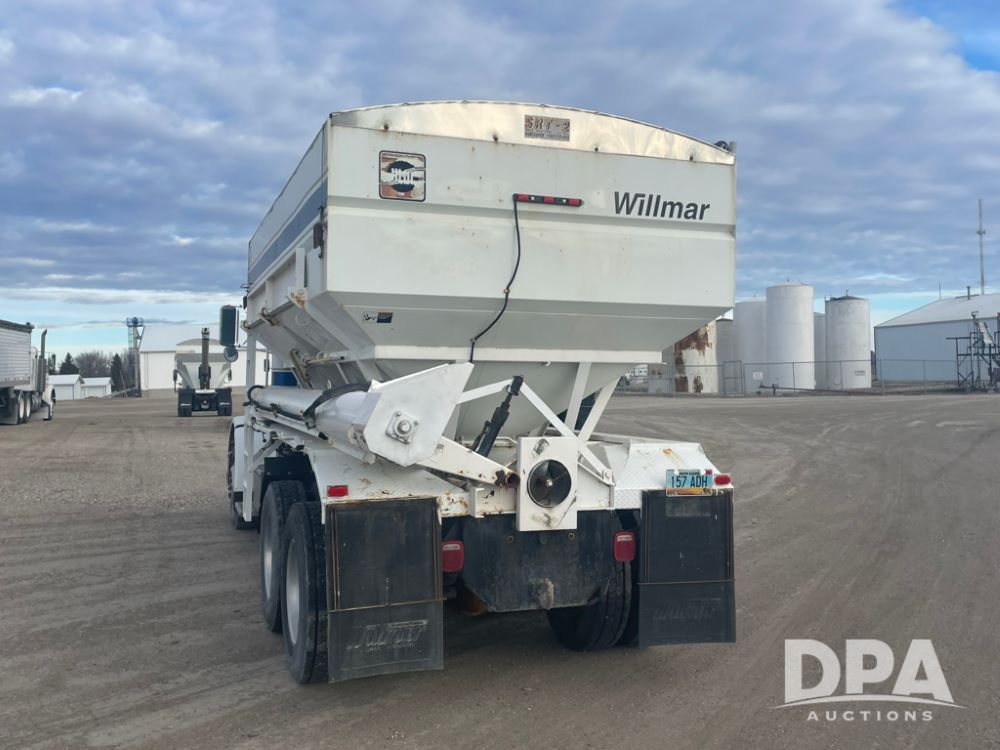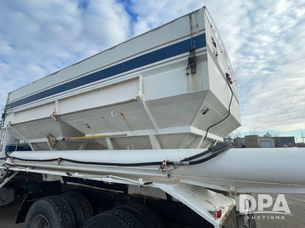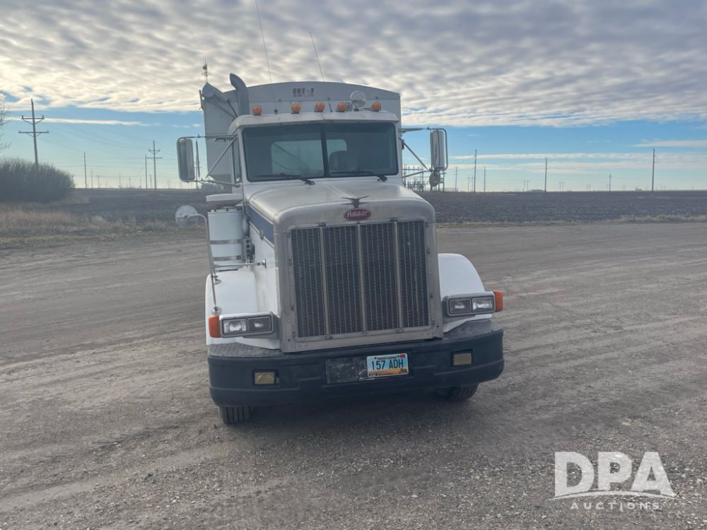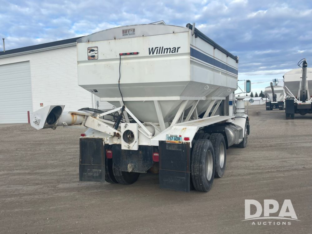 1988 Peterbilt 378 Dry Tender Truck (LLD1601, Unit 5), Cummins ISL diesel engine, Eaton fuller 9 speed transmission, AM/FM radio, heat, tandem axle, Willmar 16 ton stainless steel dry tender box, side discharge auger, all hydraulic, electric roll tarp, 11/24.5 tires with aluminum rims, shows 238,567 miles.