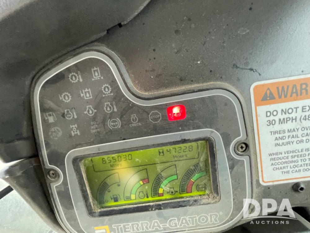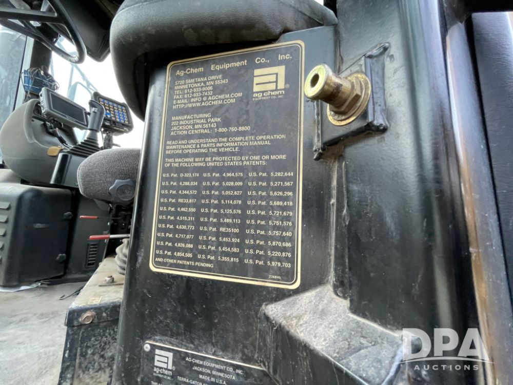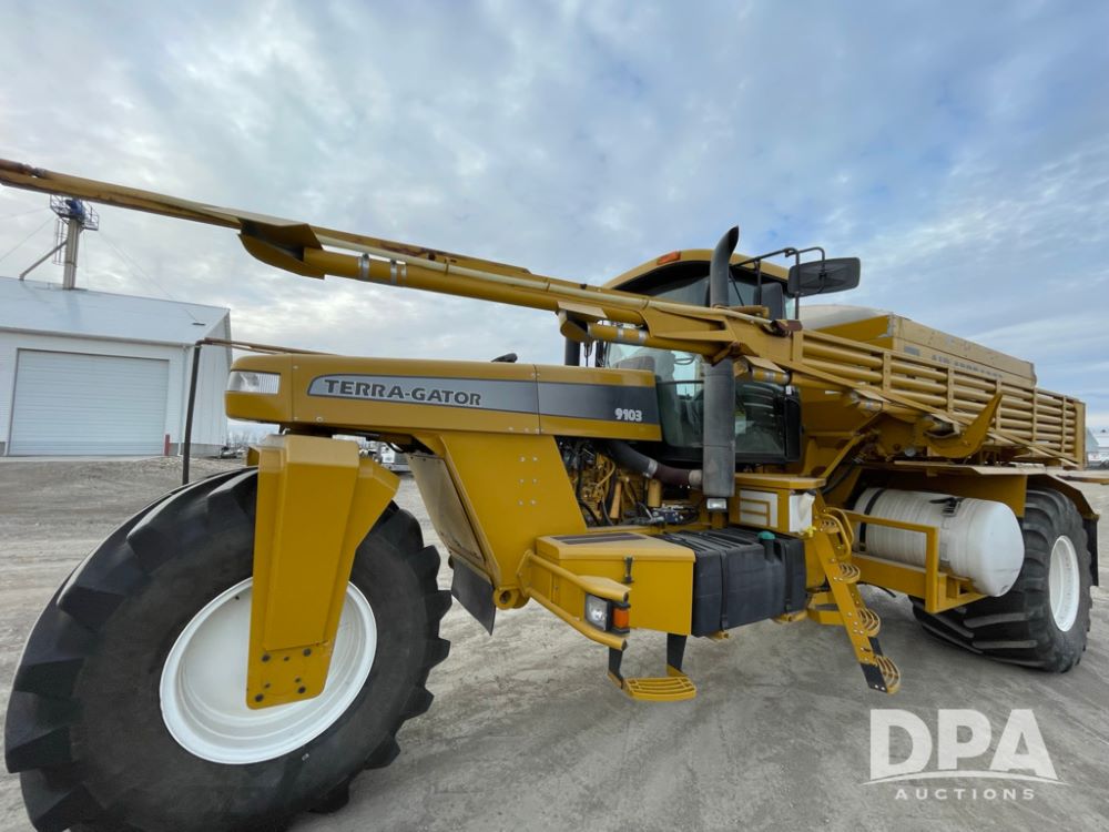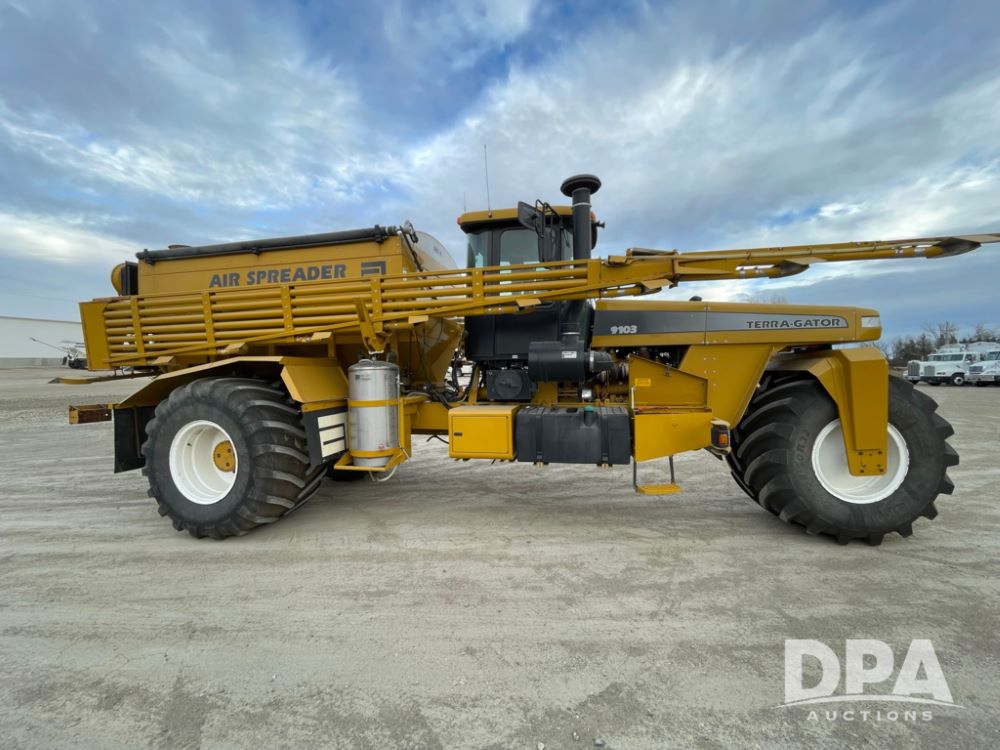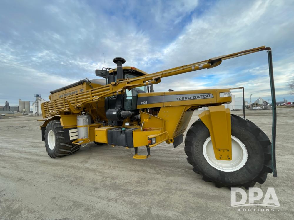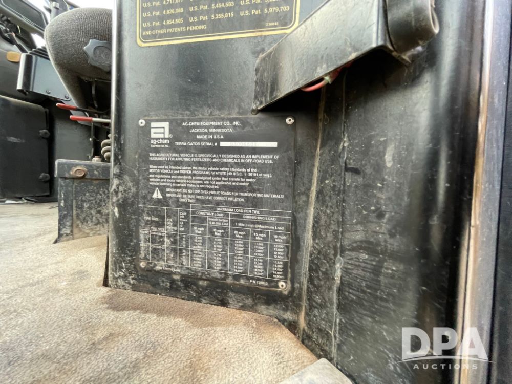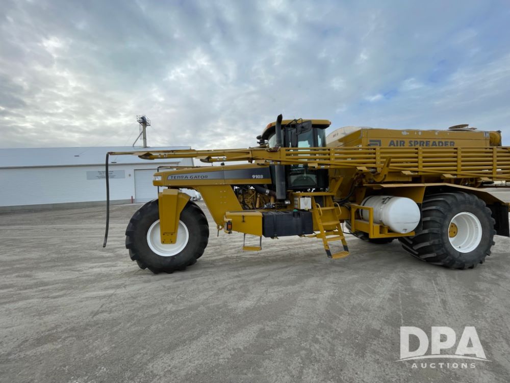 2001 AgChem 9103 Terragator (LLD1604), Caterpillar diesel engine, 9 speed Eaton Fuller transmission, 70 foot boom, air spreader, dry air flow system, Raven Envizio monitor system, 1050/50R32 tires, shows 65,503 miles and 4,722 hours.