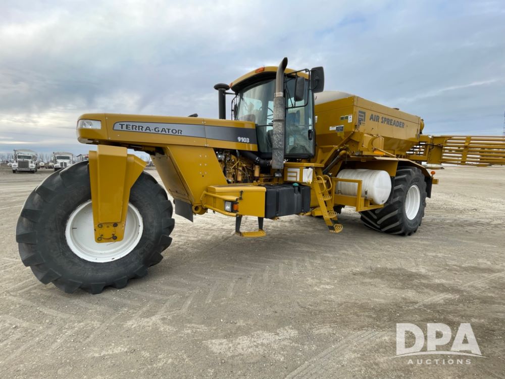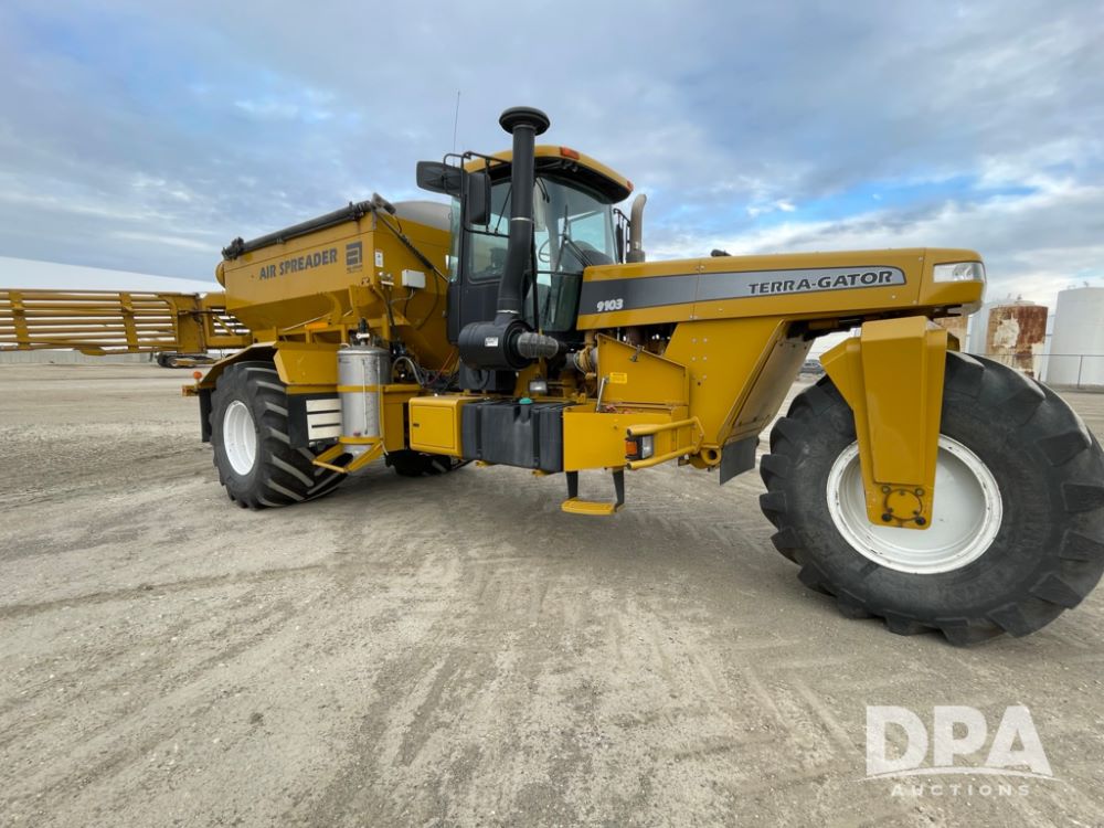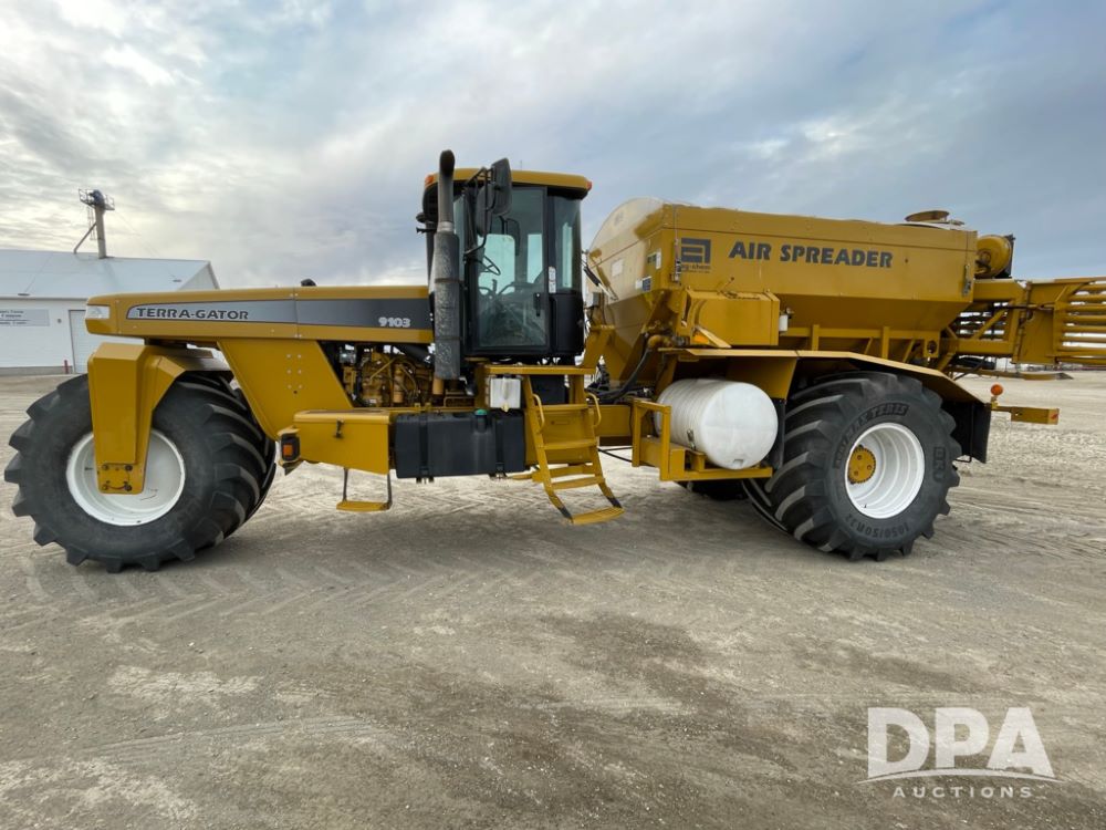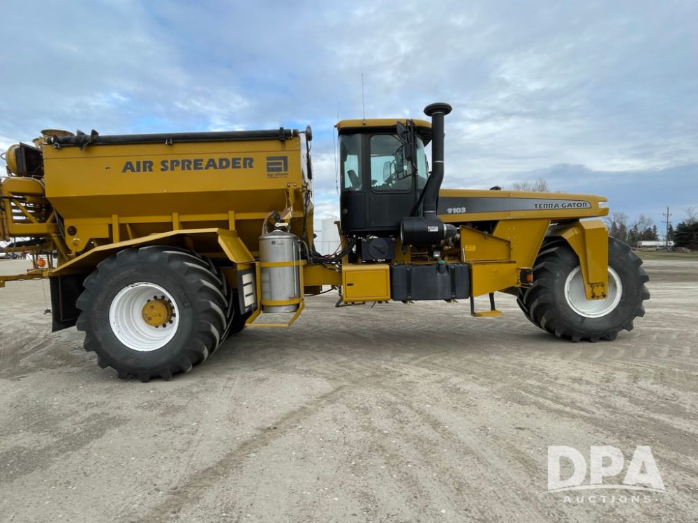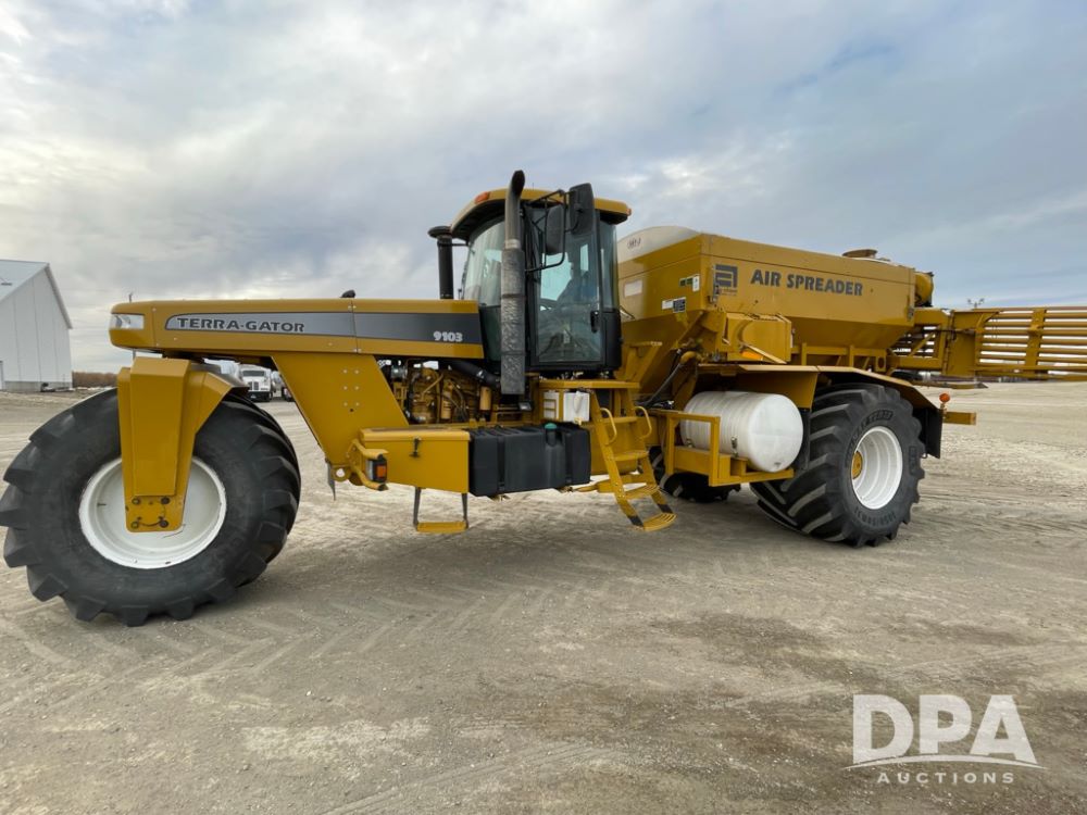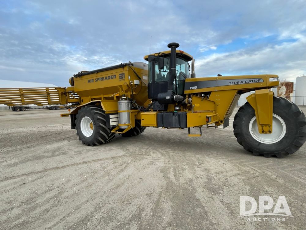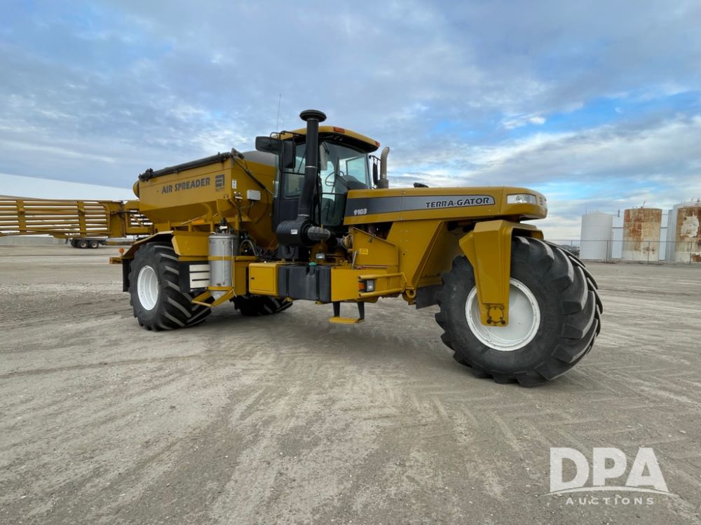 2002 AgChem 9103 Terragator (LLD1607), Caterpillar diesel engine, 9 speed Eaton Fuller transmission, 70 foot boom, Raven Viper 4 monitor system, 1050/50R32 tires, shows 95,956 miles and 4,912 hours.