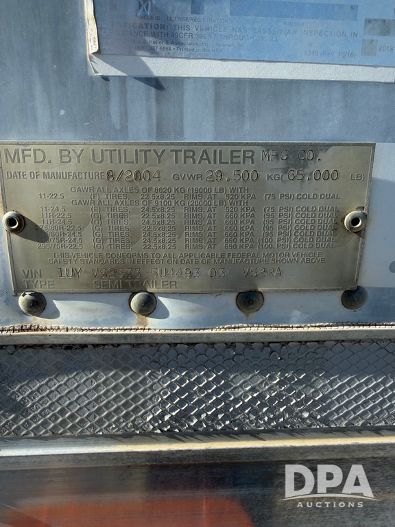 2005 Utility Reefer Trailer (NP6394), 2005 Utility Model VS2RA reefer trailer, tandem axle, rear cargo doors, GVWR 65,000 pounds.