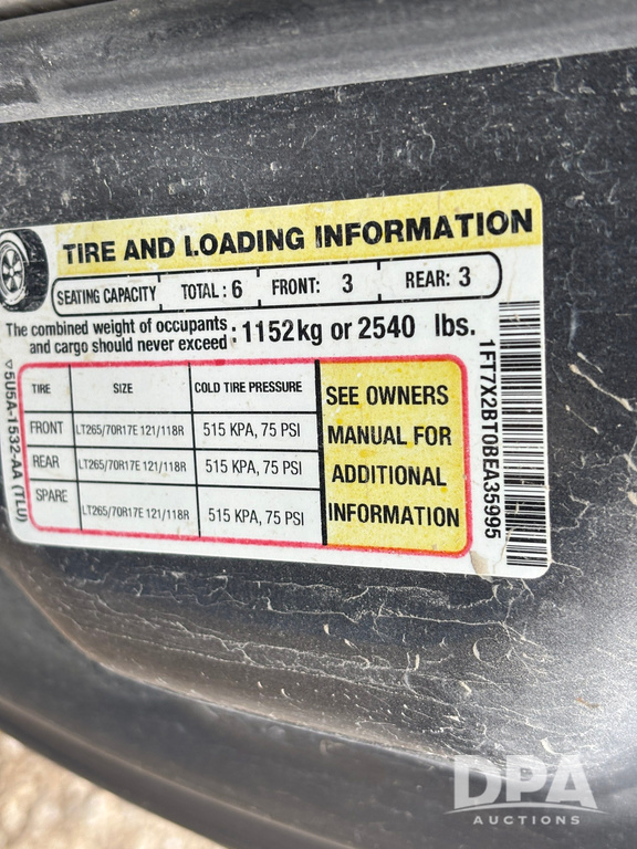 2011 Ford F250 XLT Super Duty Extended Cab Pickup (GP12446, Unit 11400), 4x4, 6.7L Power Stroke diesel engine, automatic transmission, air conditioning, heat, Am/Fm CD radio, cruise control, power windows & locks, power drivers seat, running boards, rear hitch, LT265/70R17 tires, shows 325,225 miles.