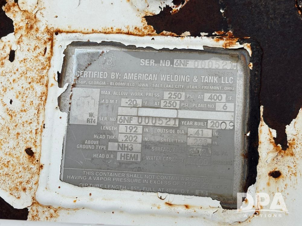 2009 American Welding & Tank NH3 Nurse Tank (GP12451), 2009 American Welding & Tank 1000 gallon NH3 nurse tank, top front fill.